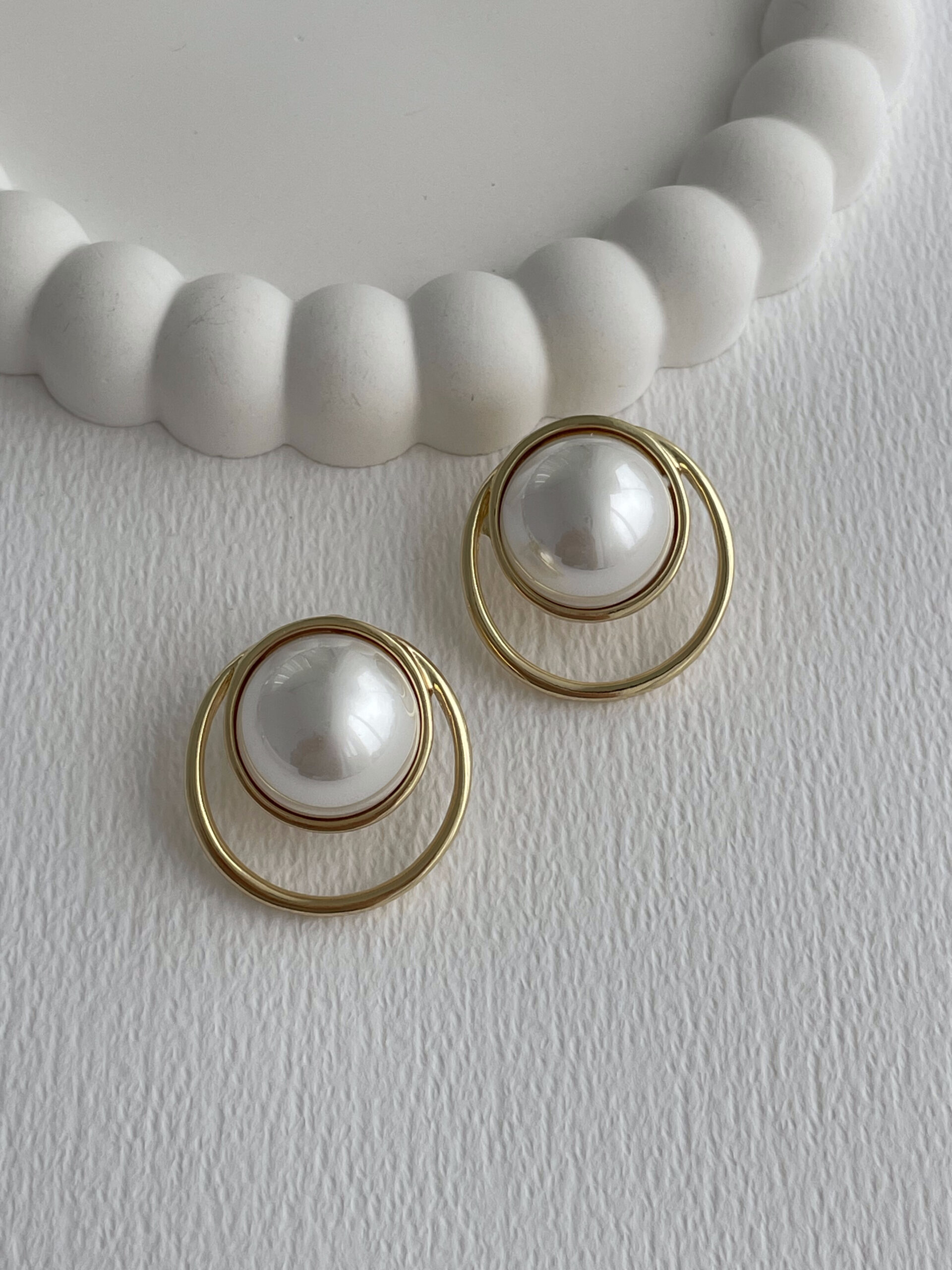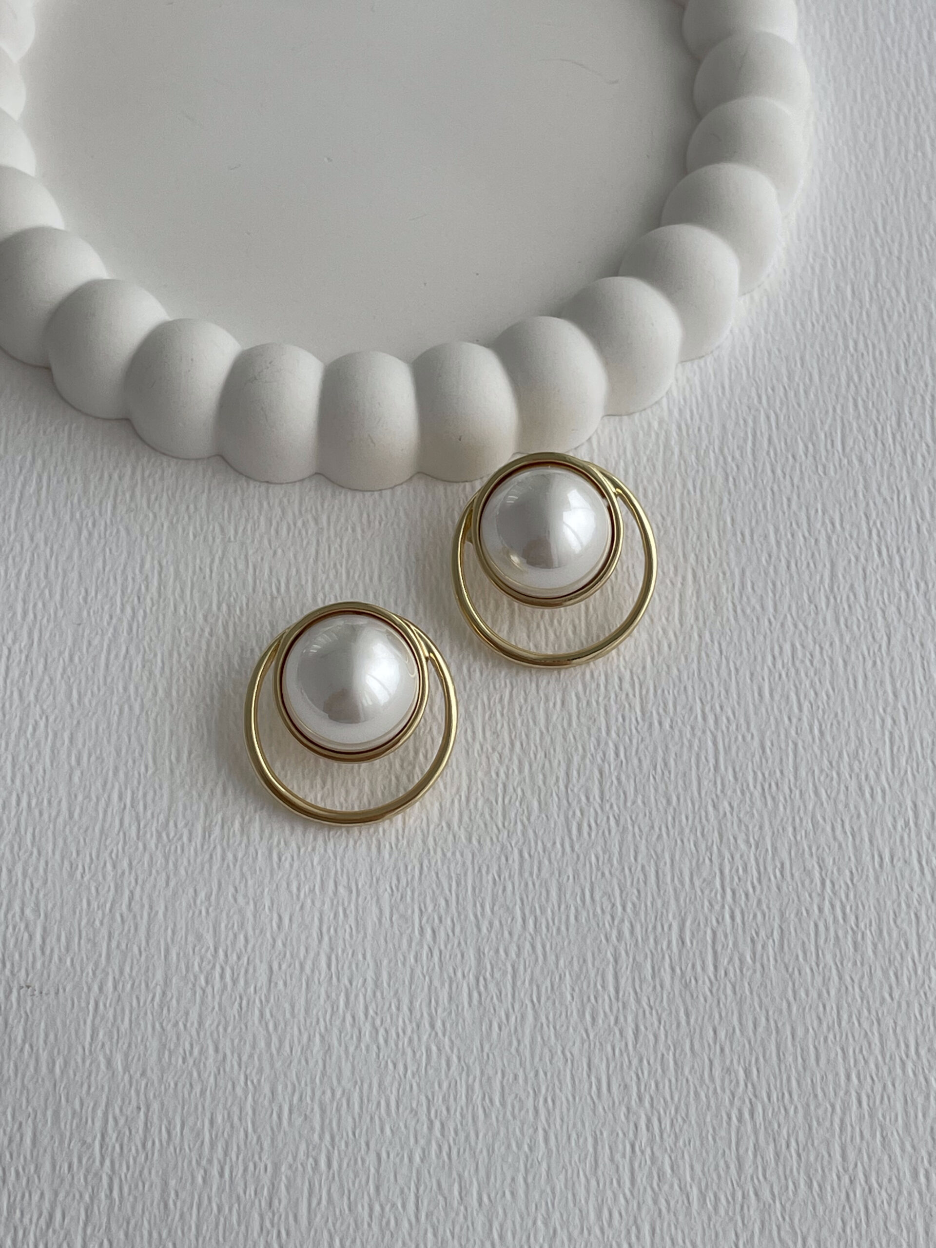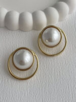Özel Seri İkili Halka Tasarım İnci Detay Gold Küpe