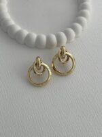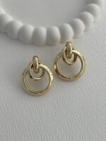 Özel Seri İkili İç İçe Halka Tasarım Gold Küpe