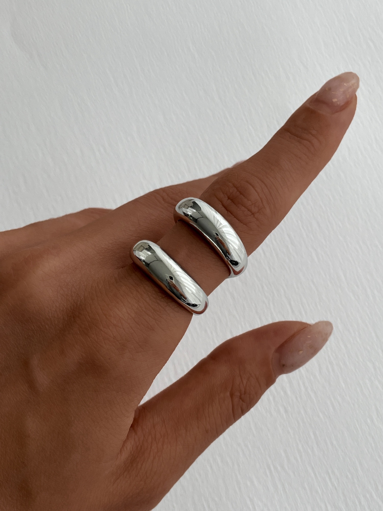 Özel Seri İkili Kalın Boru Gümüş Ayarlanabilir Yüzük