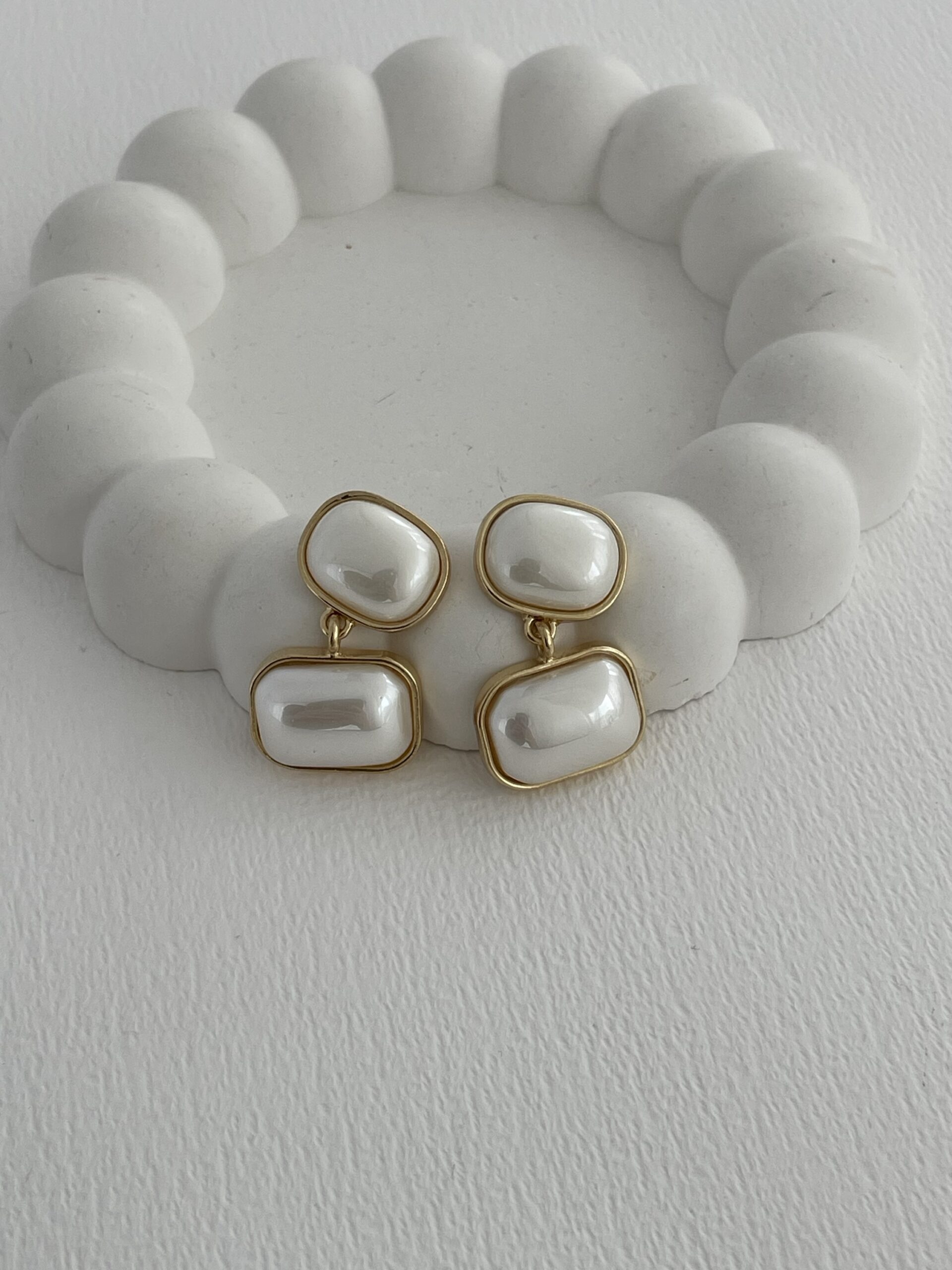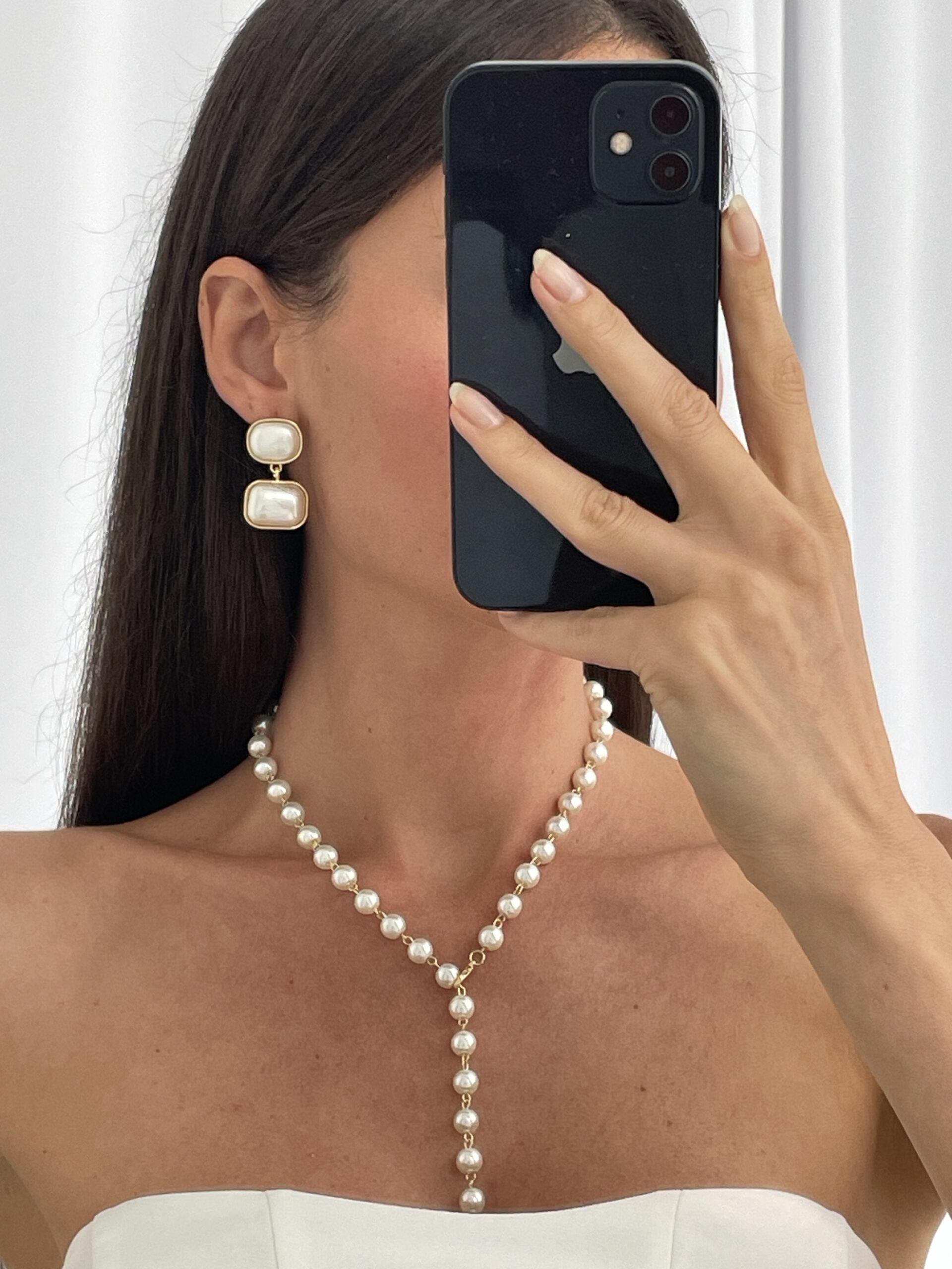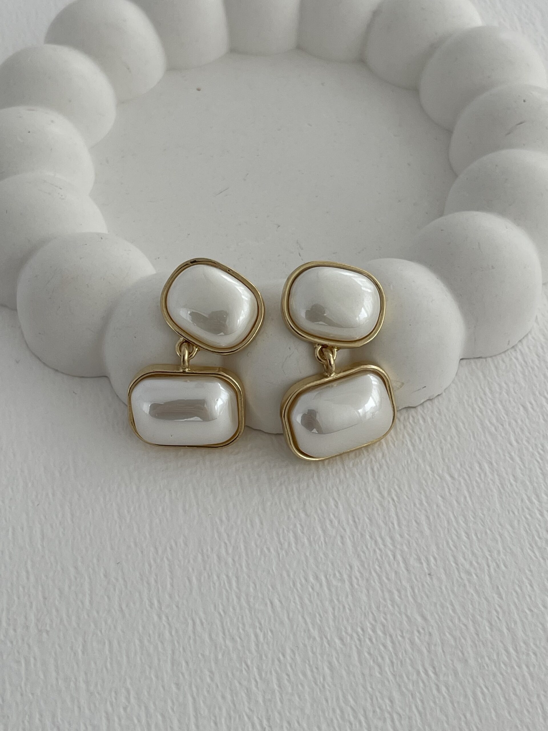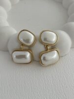 Özel Seri İkili Kare İnci Tasarım Gold Küpe