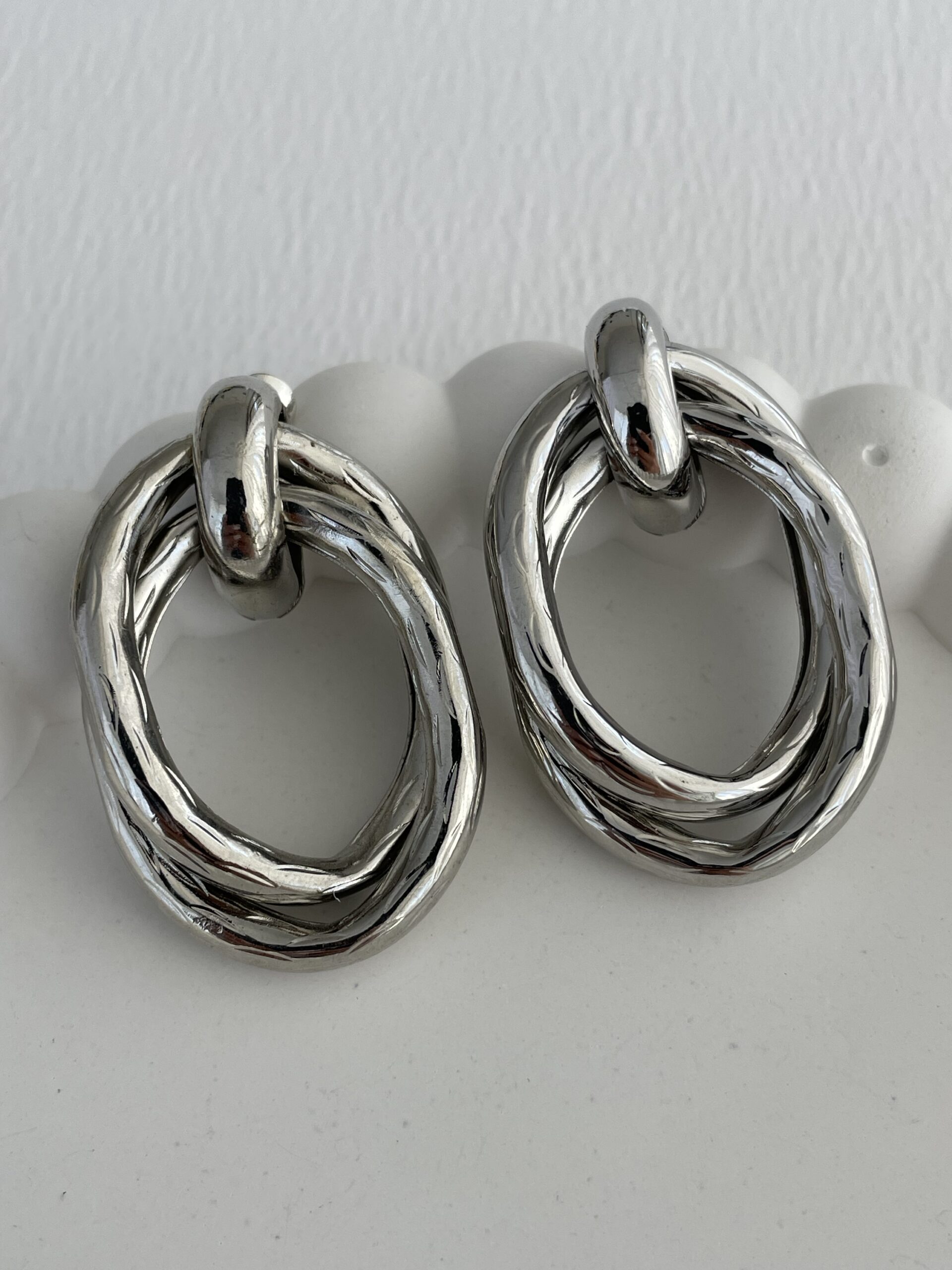 Özel Seri İkili Oval Tasarım Gümüş Halka Küpe