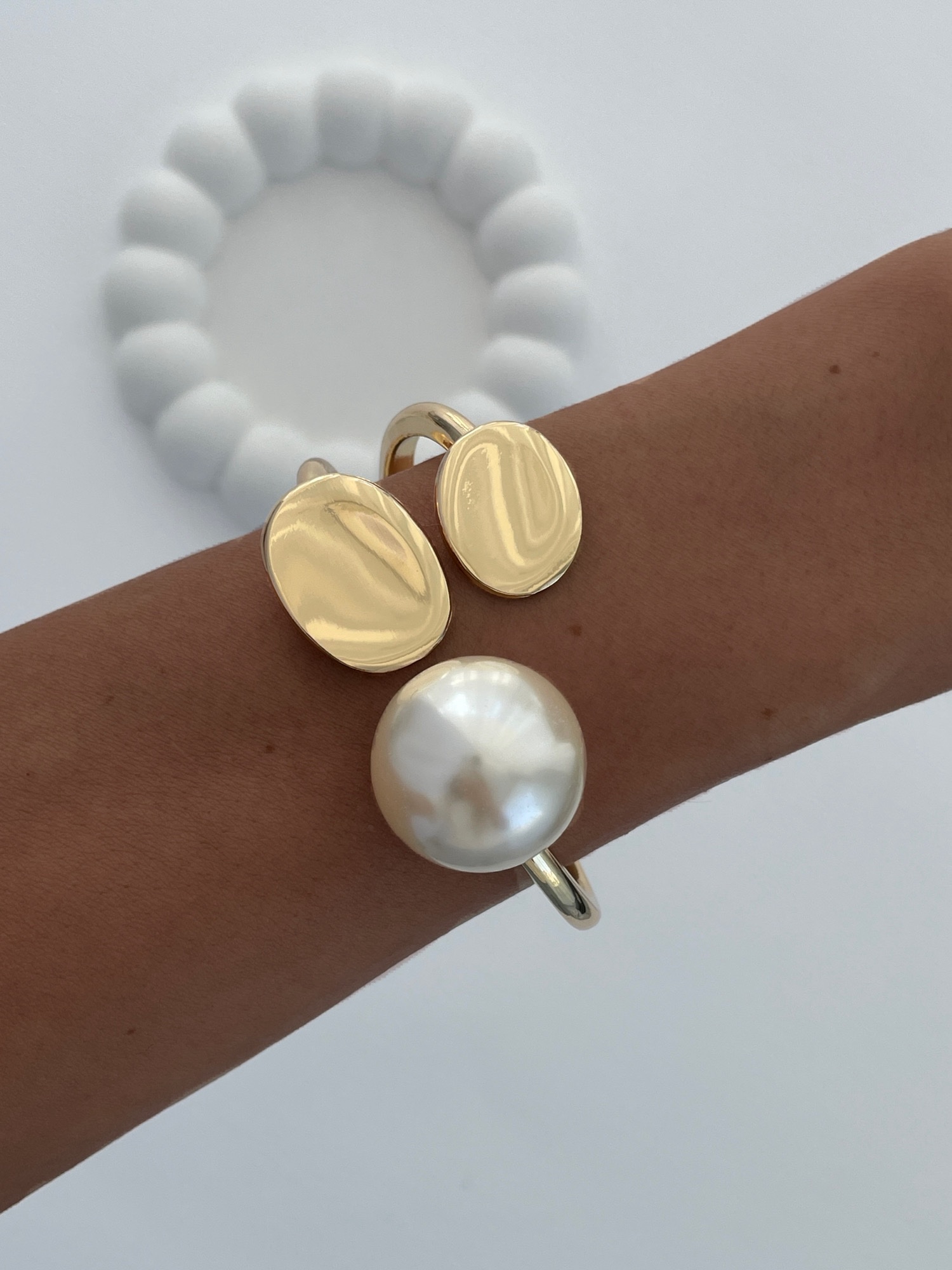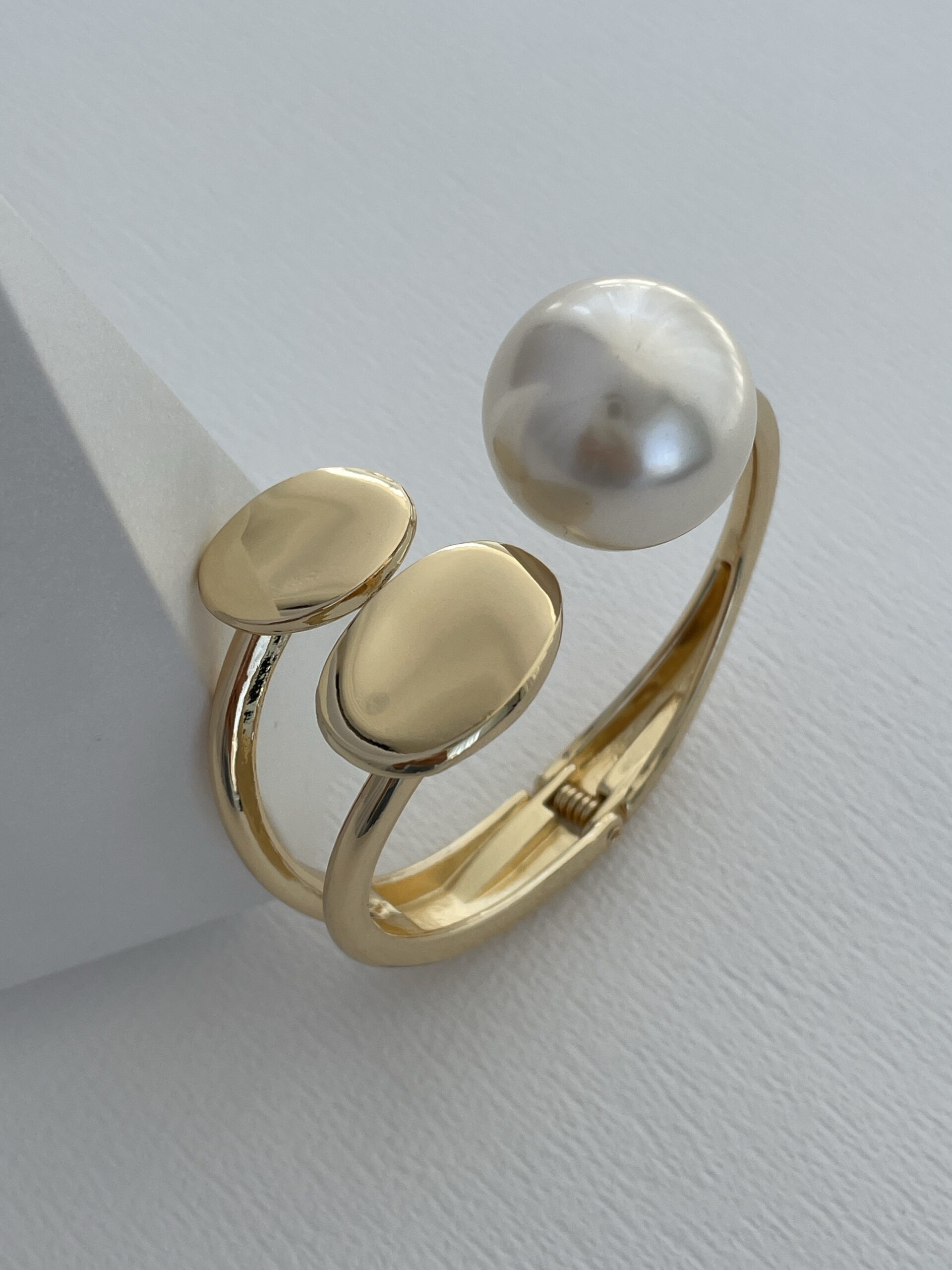 Özel Seri İkili Oval Tasarım İncili Gold Kelepçe Bileklik
