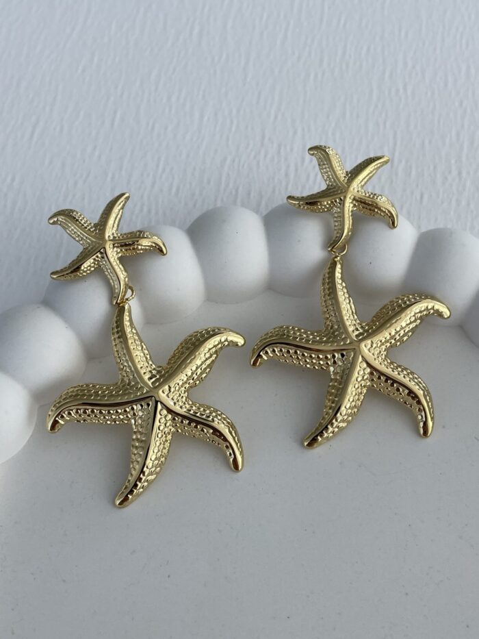 Özel Seri İkili Sallantılı Gold Deniz Yıldızı Küpe