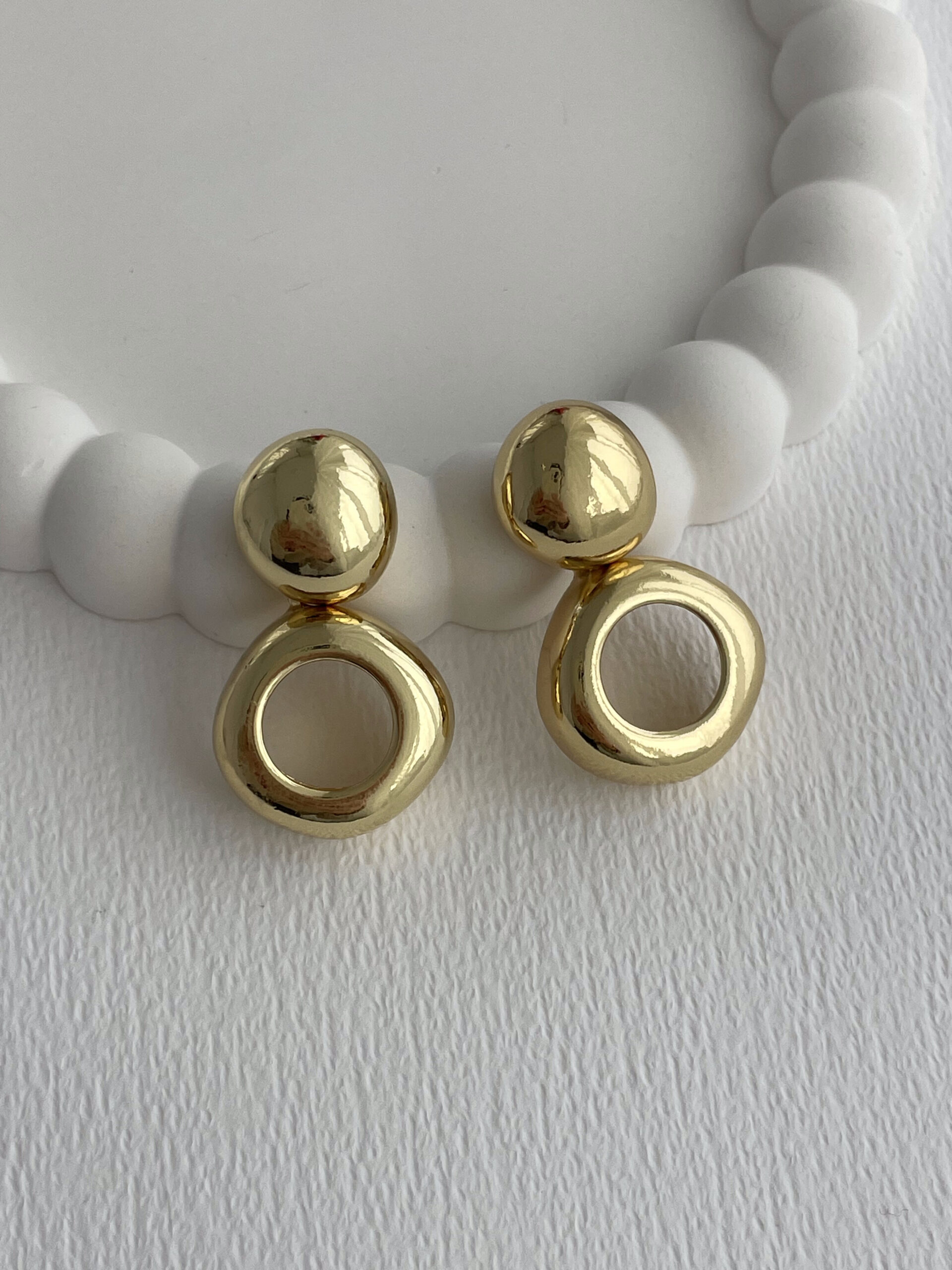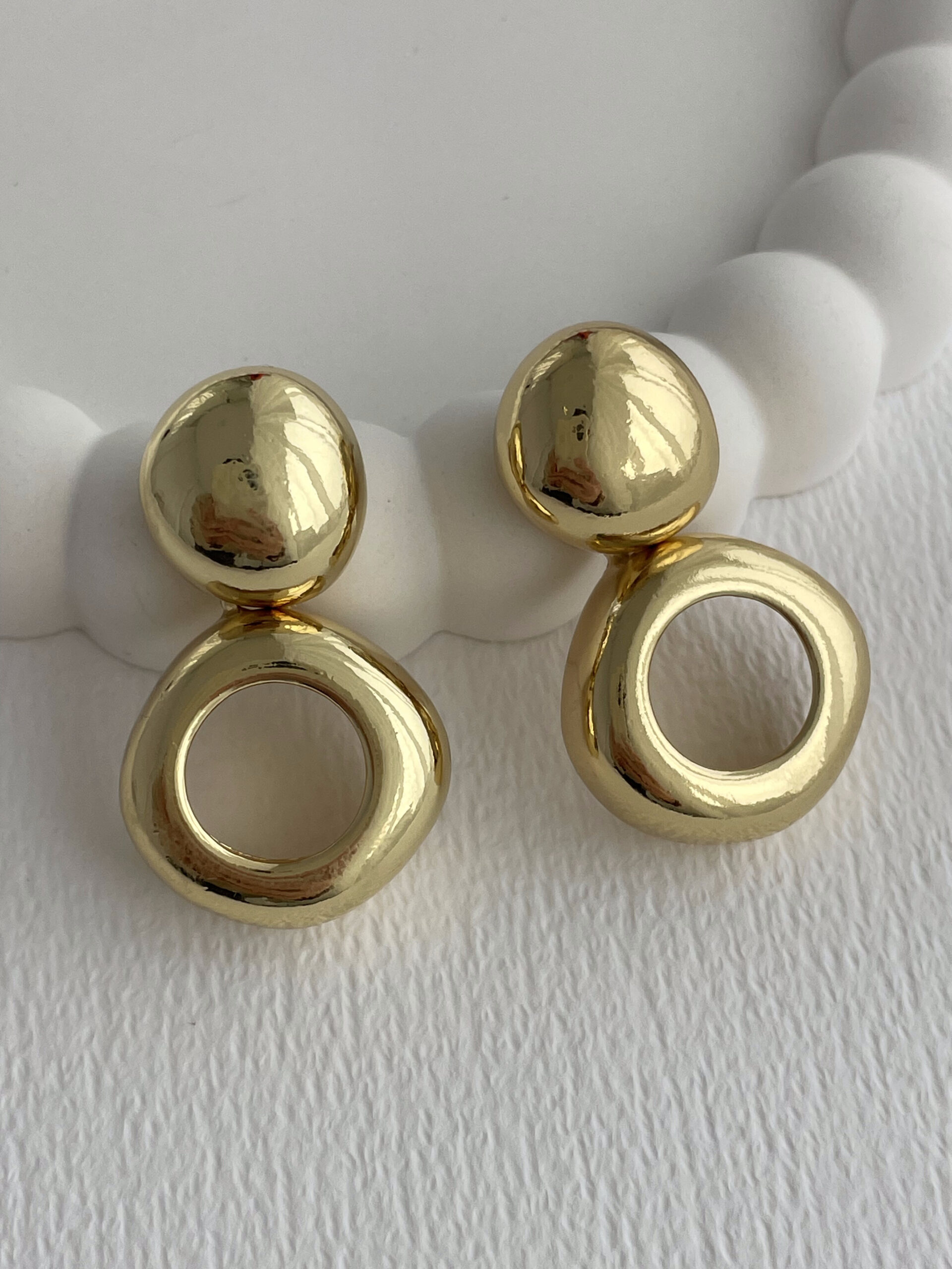 Özel Seri İkili Tasarım Ortası Boş Yuvarlak Gold Küpe