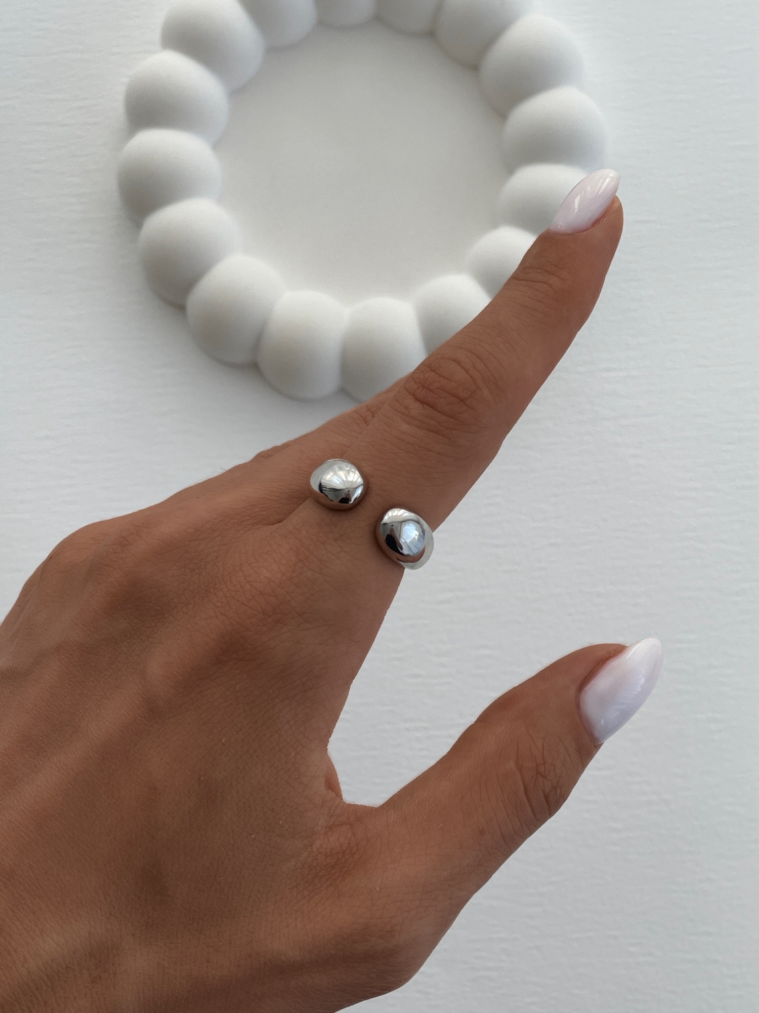 Özel Seri İkili Top Tasarım Ayarlanabilir Gümüş Yüzük