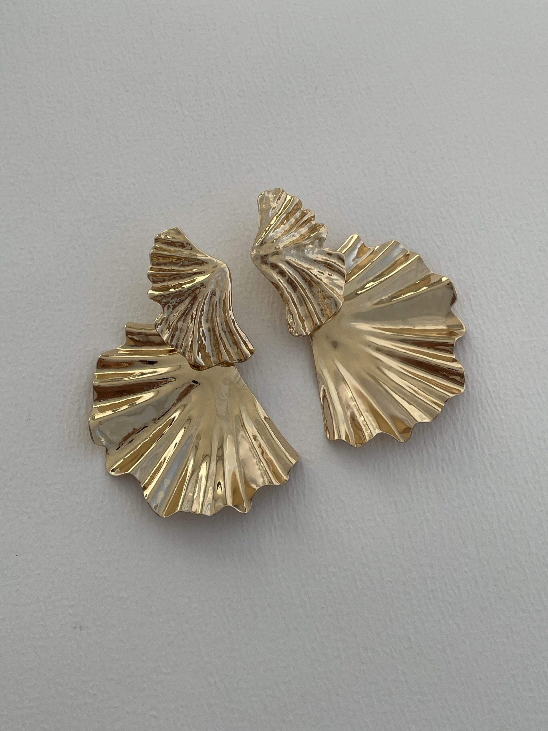 Özel Seri İkili Yaprak Tasarım Büyük Boy Gold Küpe 8cm