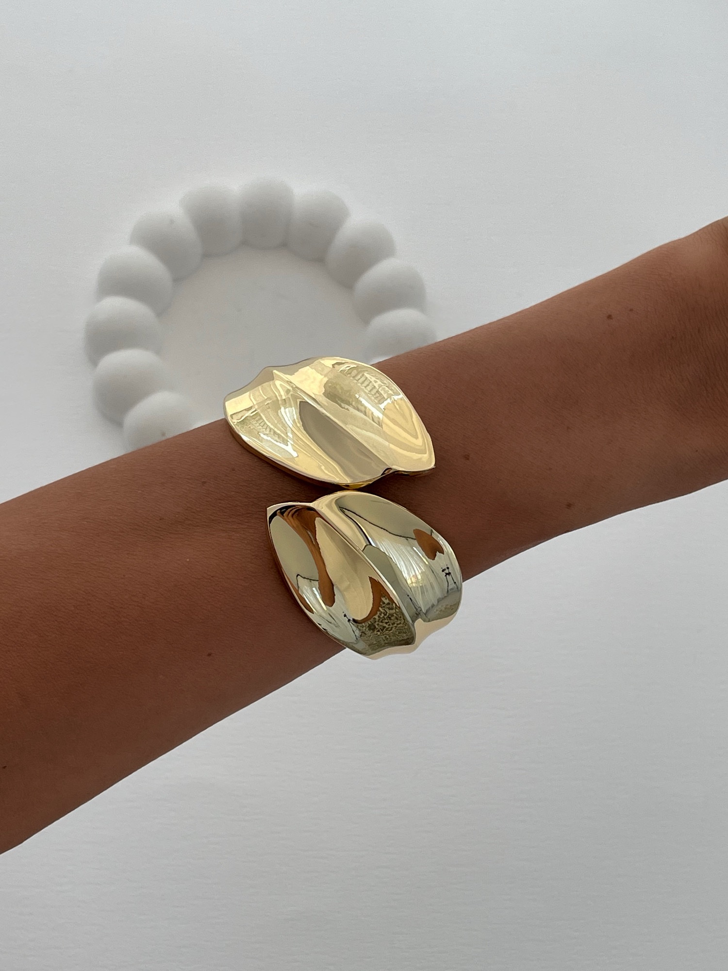 Özel Seri İkili Yaprak Tasarım Gold Kelepçe Bileklik