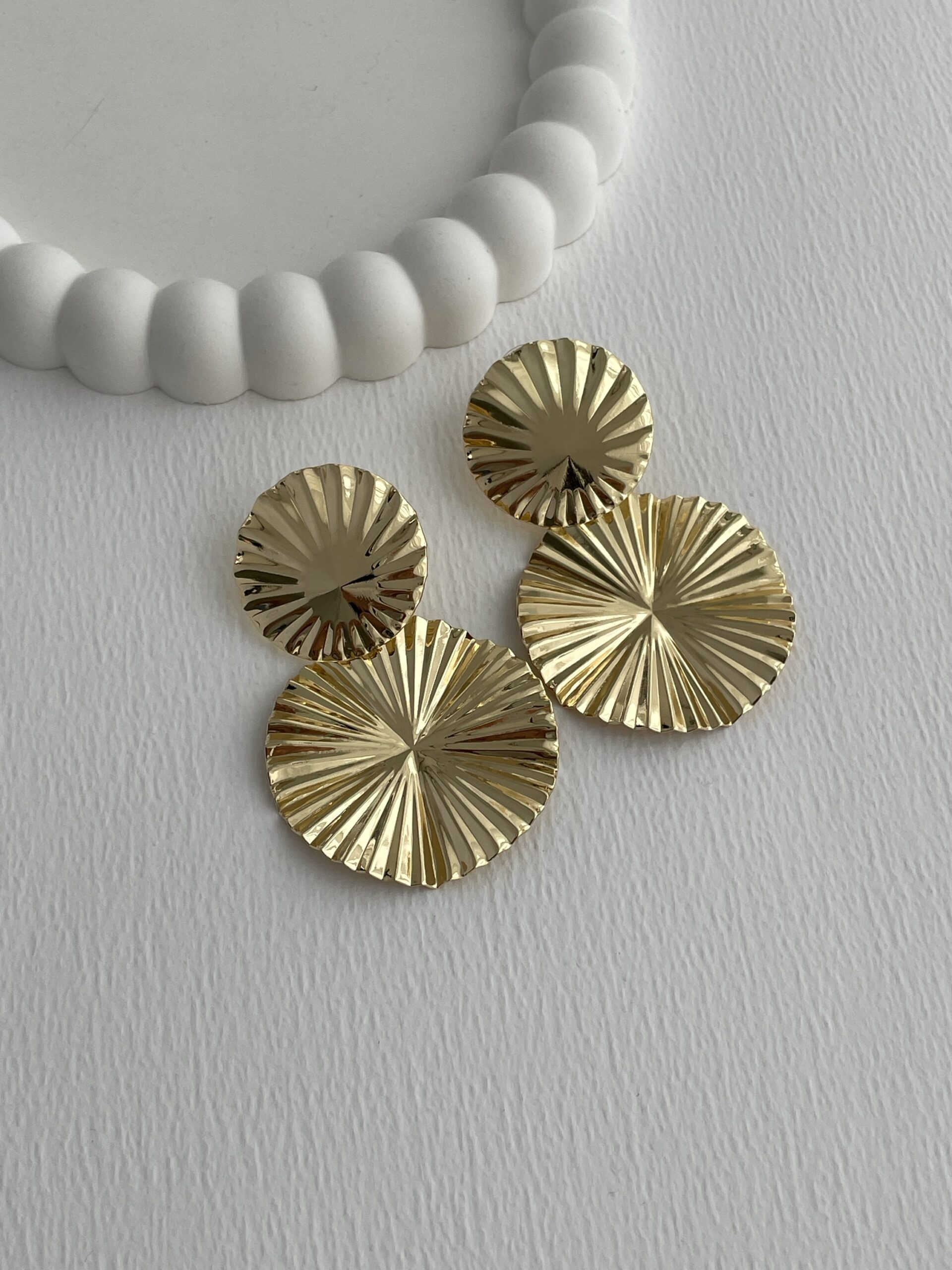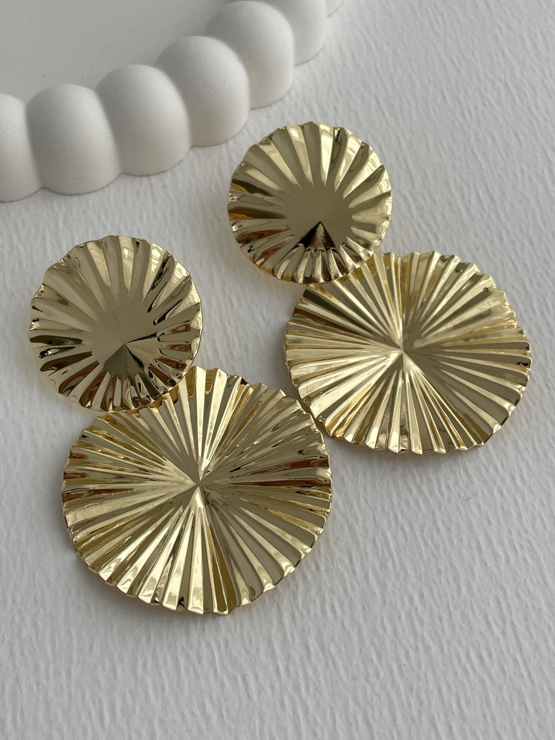 Özel Seri İkili Yuvarlak Tasarım Büyük Boy Gold Küpe