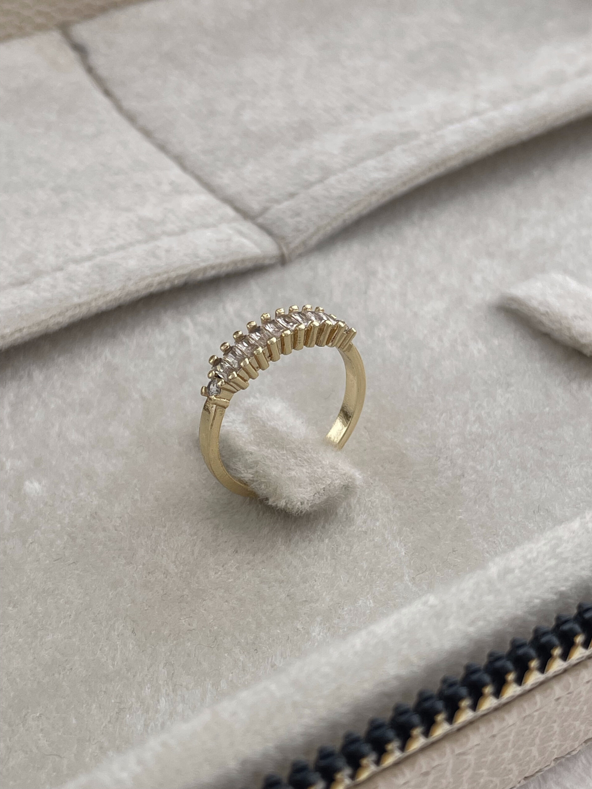 Özel Seri İnce Baget Taş Tasarım Ayarlanabilir Gold Yüzük