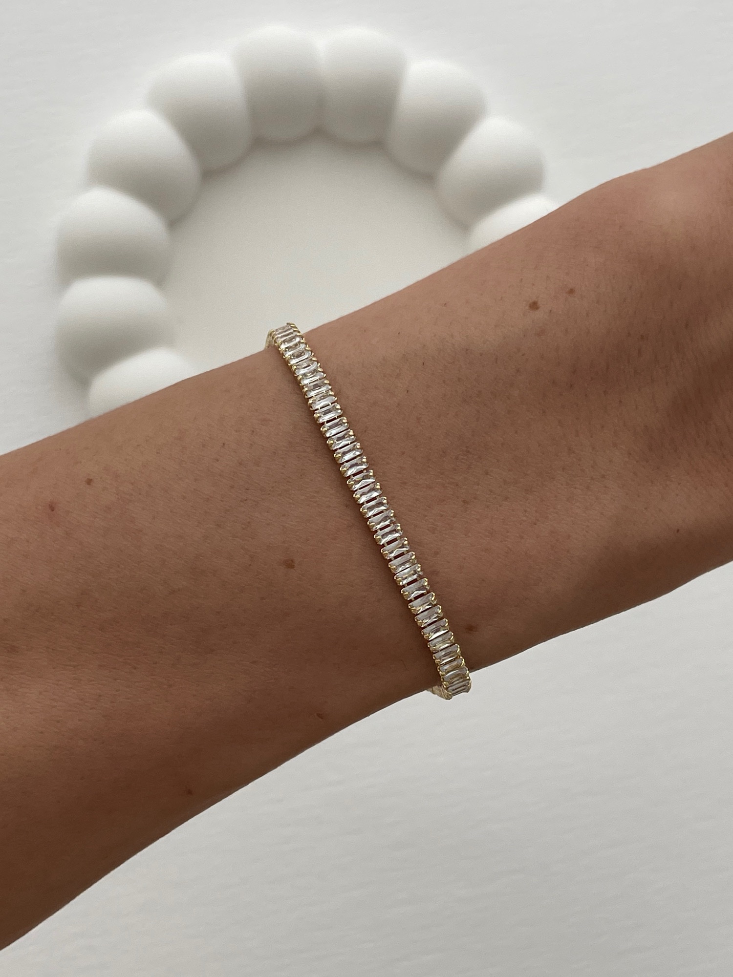 Özel Seri İnce Baget Taşlı Gold Bileklik 3mm
