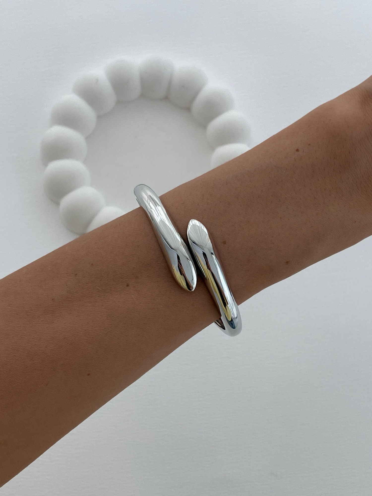 Özel Seri İnce Damla Tasarım Gümüş Kelepçe Bileklik
