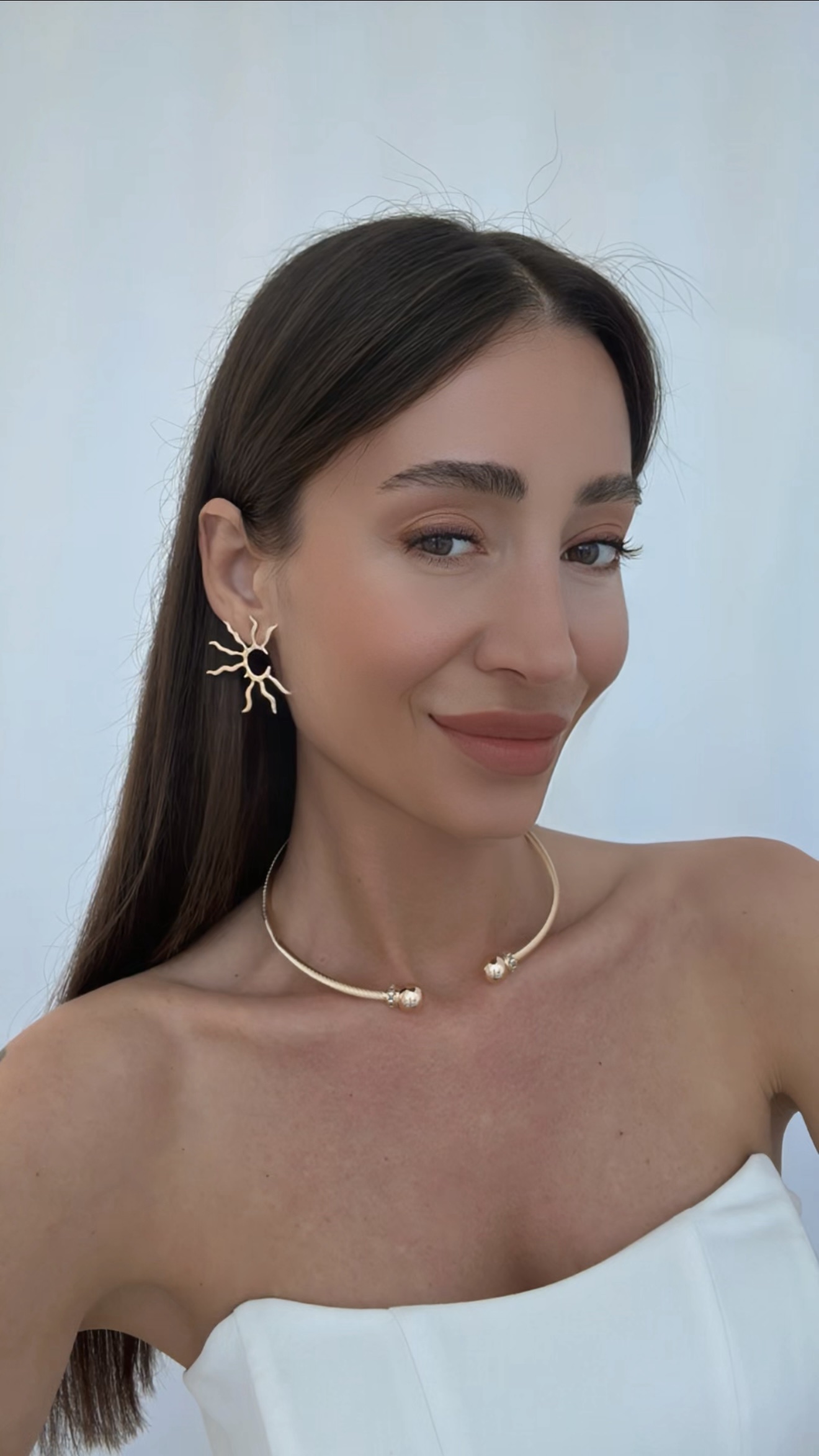 Özel Seri İnce Güneş Tasarım Gold Küpe