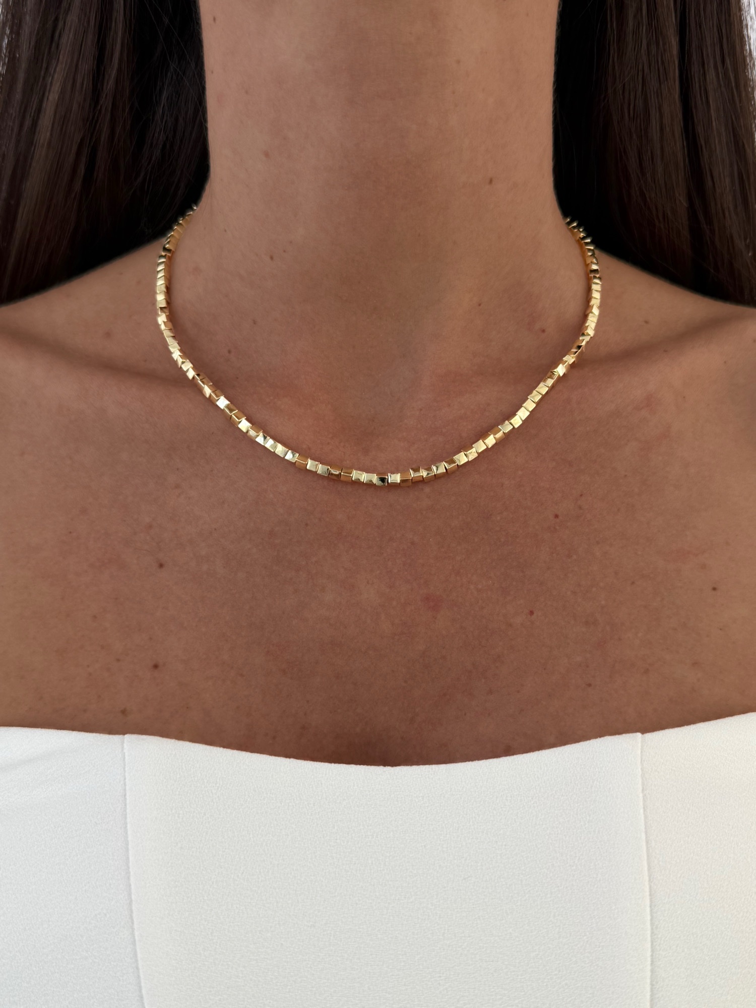 Özel Seri İnce Küp Tasarım Gold Kolye