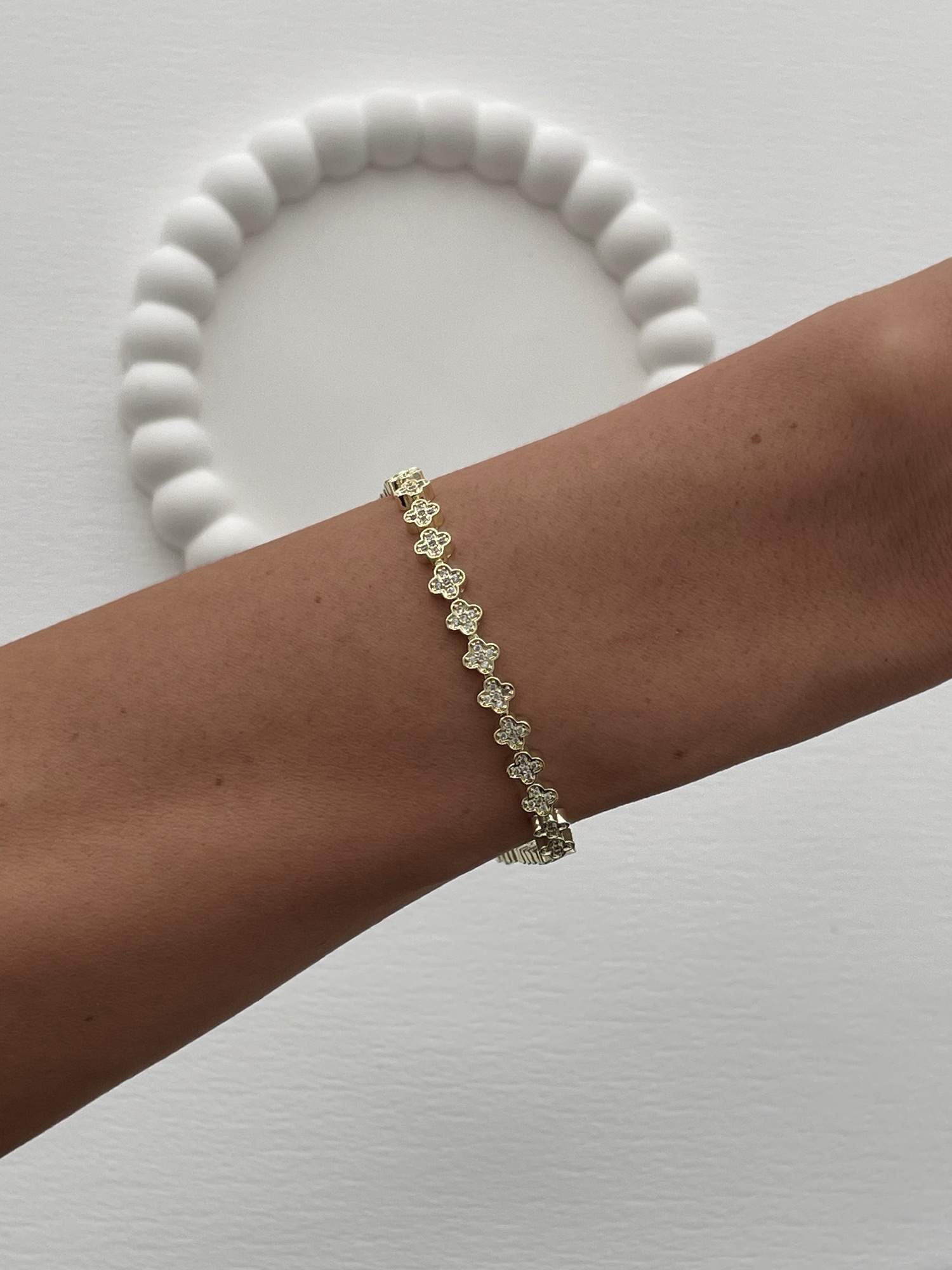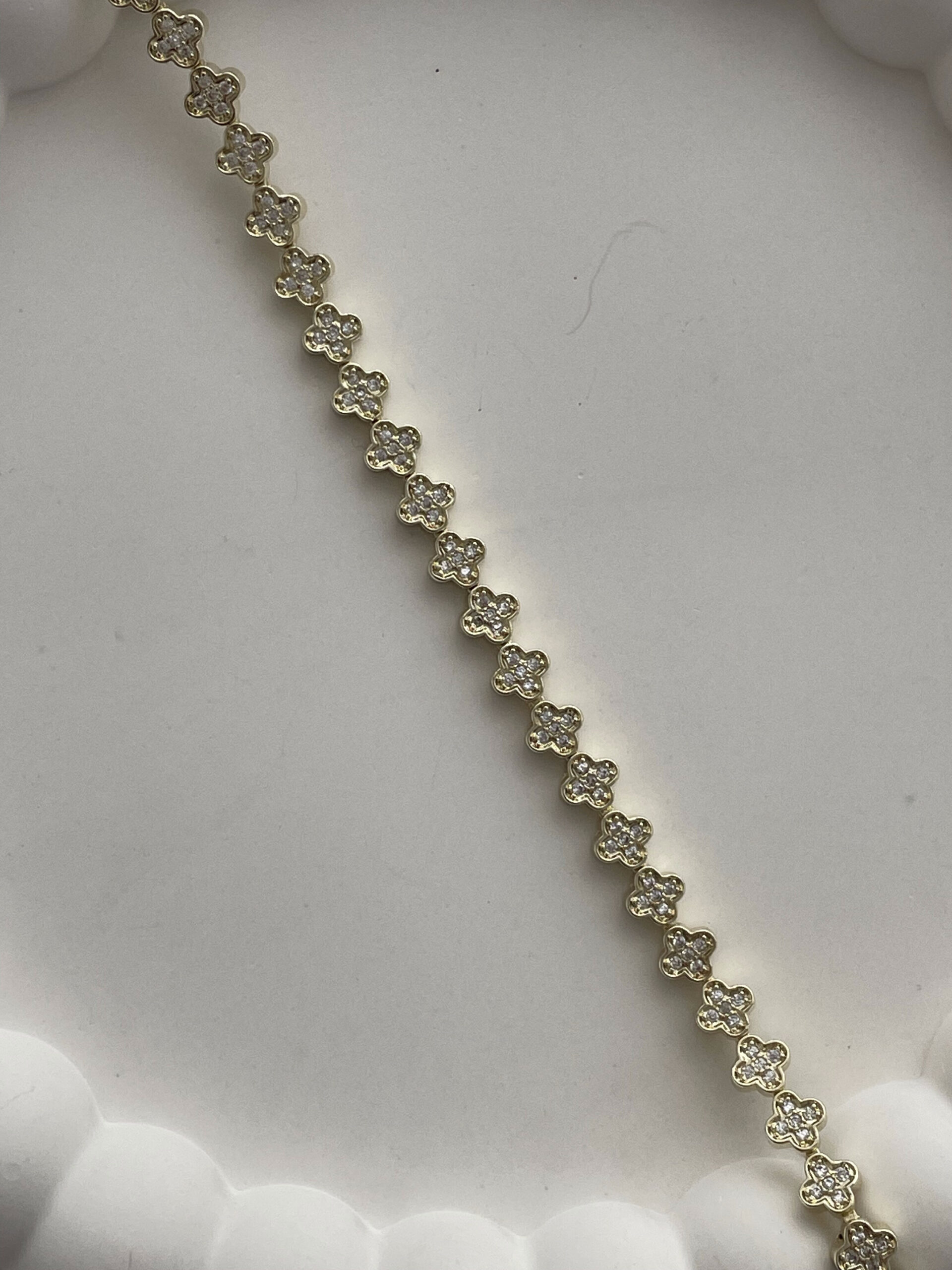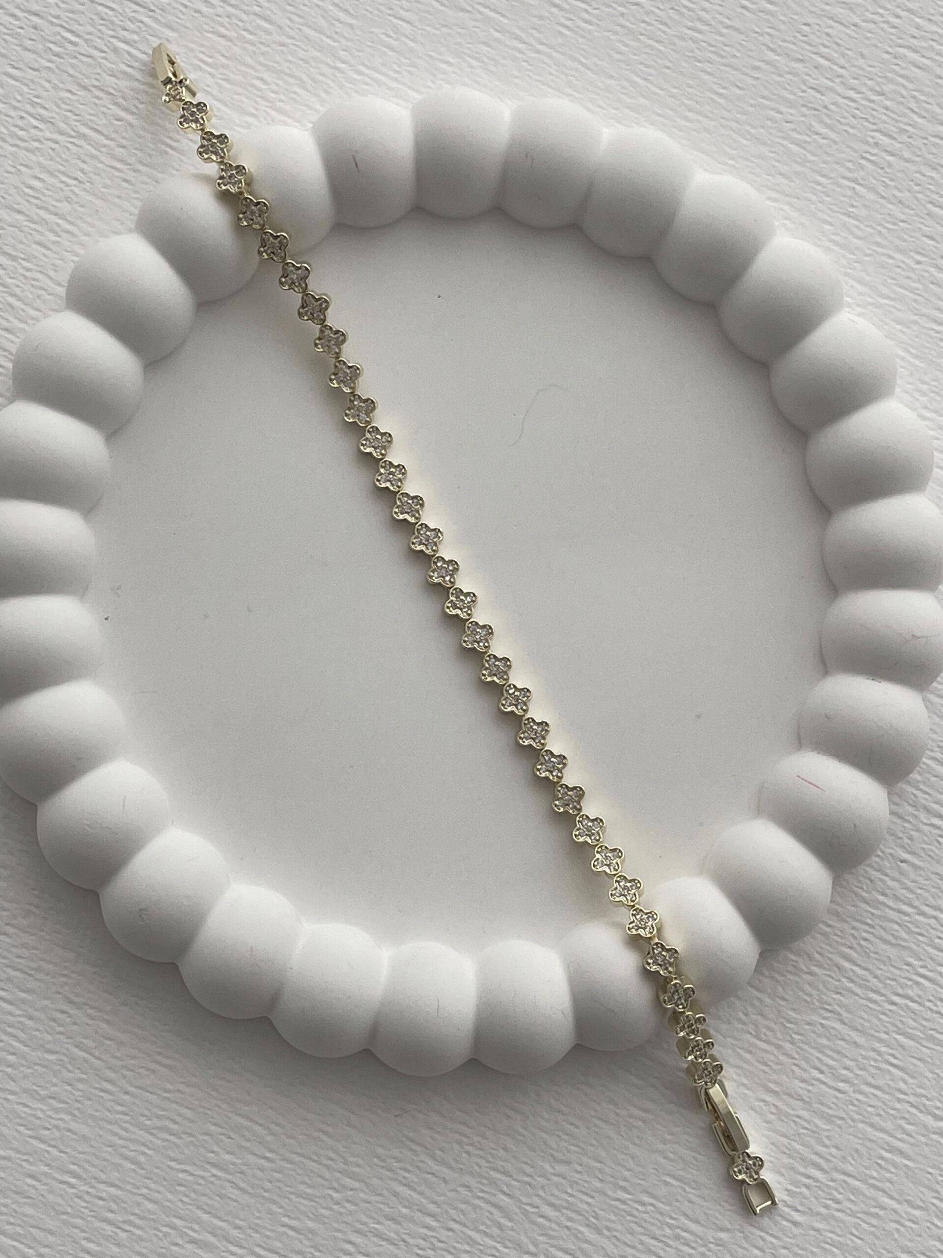 Özel Seri İnce Marka Model Yonca Tasarım Zirkon Taşlı Gold Bileklik (Küçük)