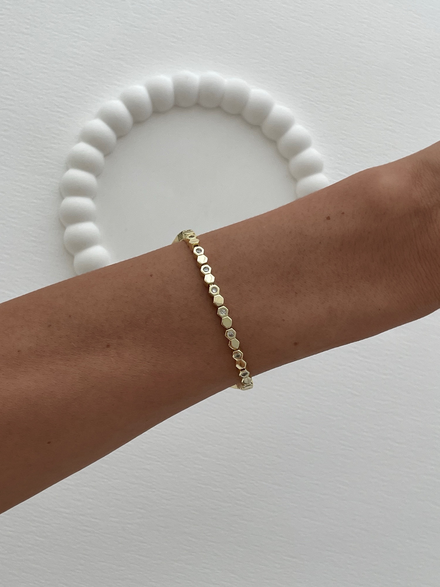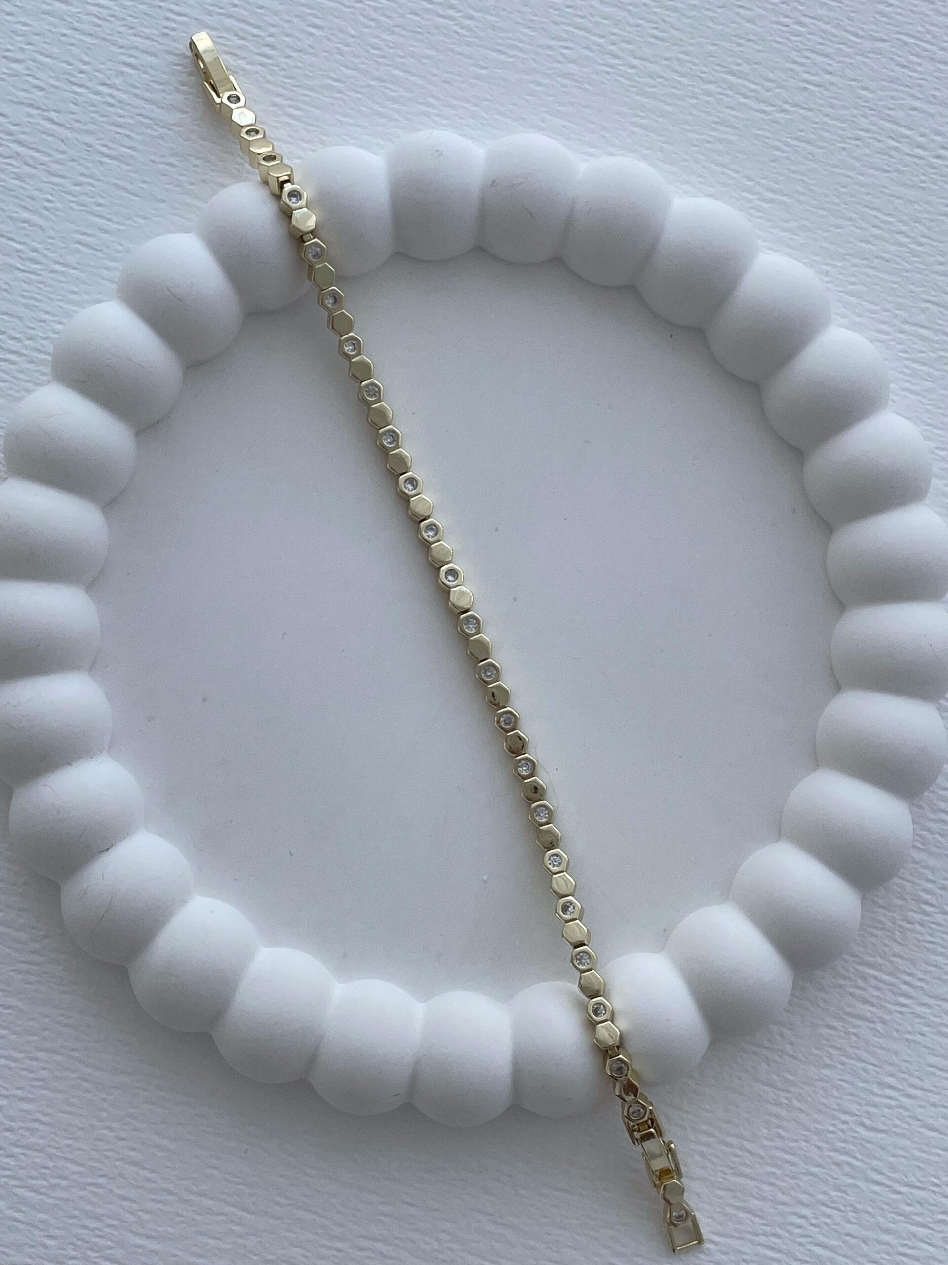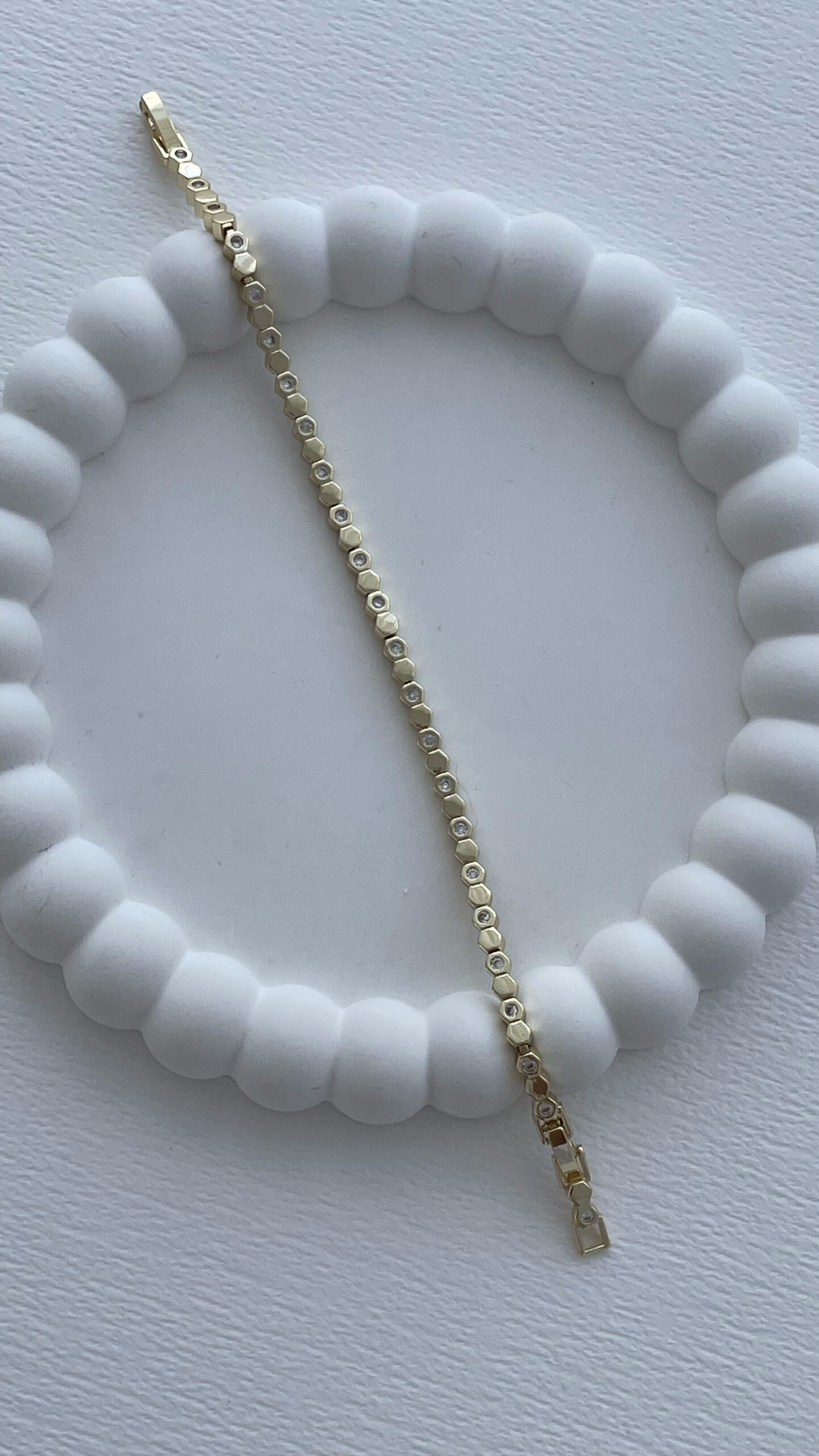 Özel Seri İnce Zirkon Taşlı Altıgen Tasarım Gold Bileklik