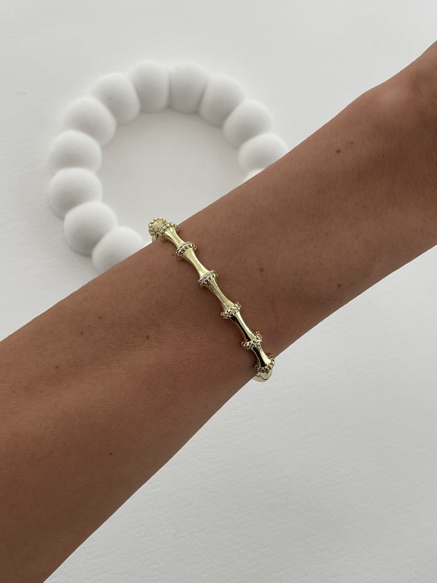 Özel Seri İnce Zirkon Taşlı Kemik Model Gold Kelepçe Bileklik