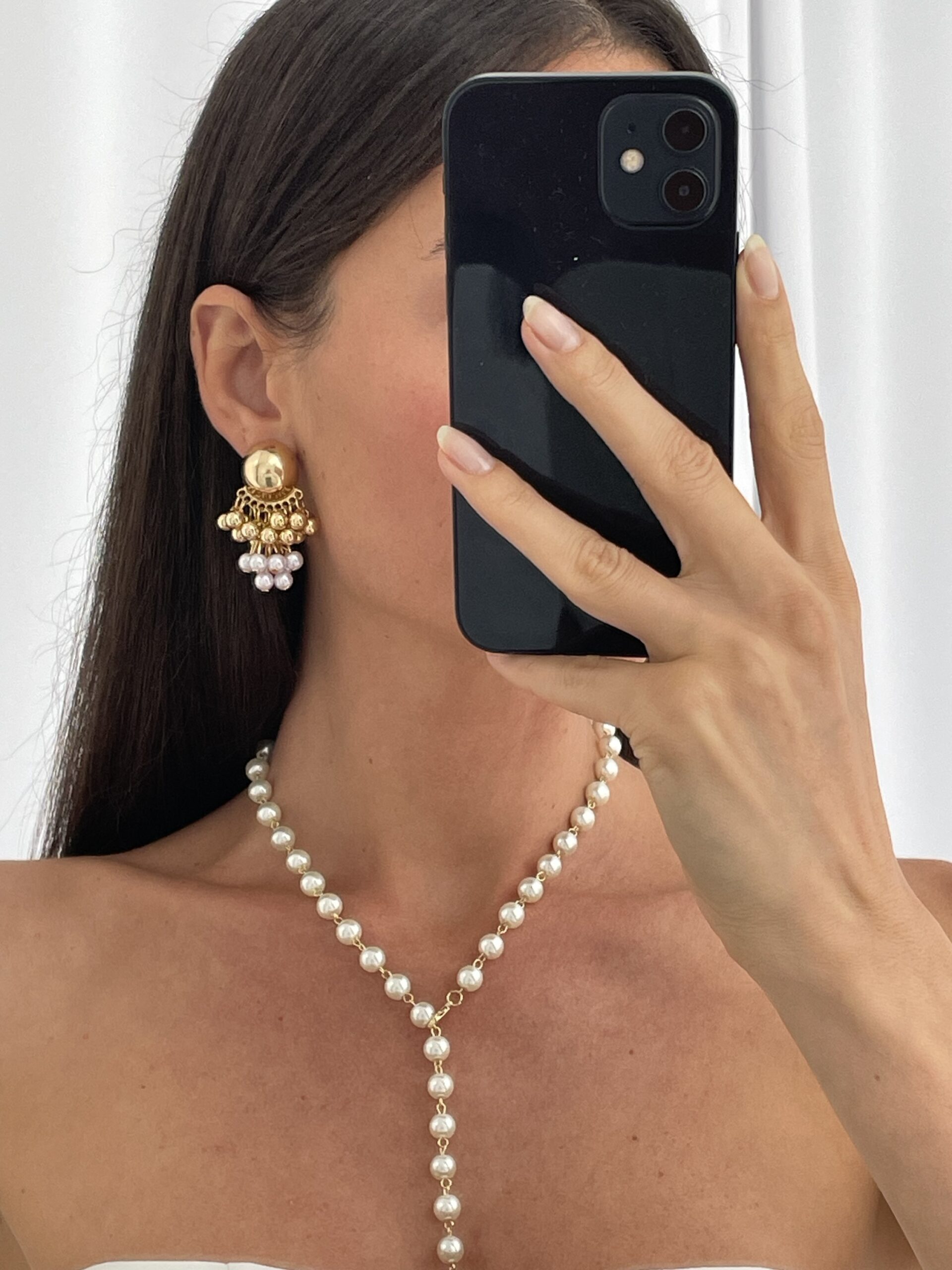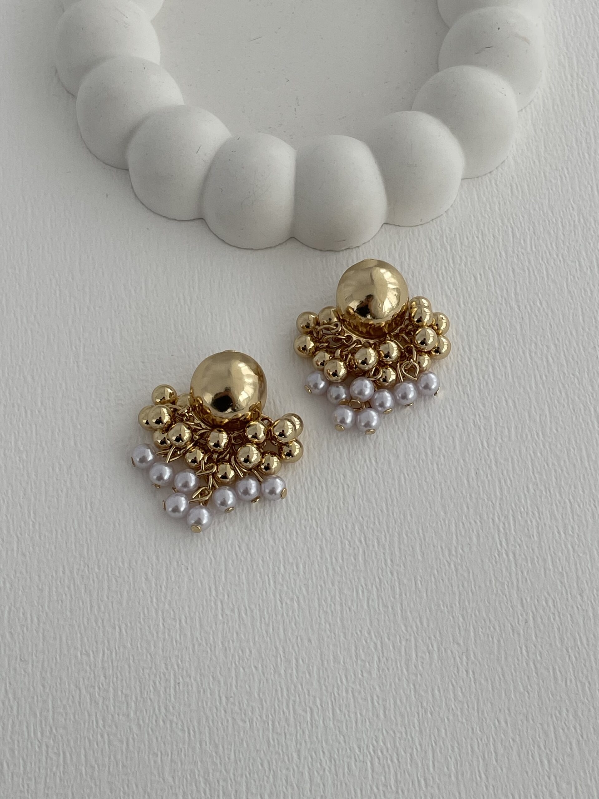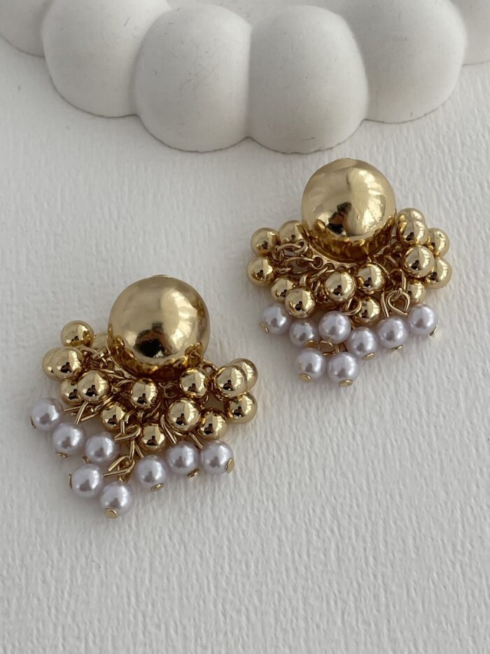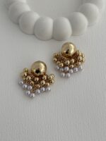 Özel Seri İnci Detay Böğürtlen Tasarım Gold Küpe