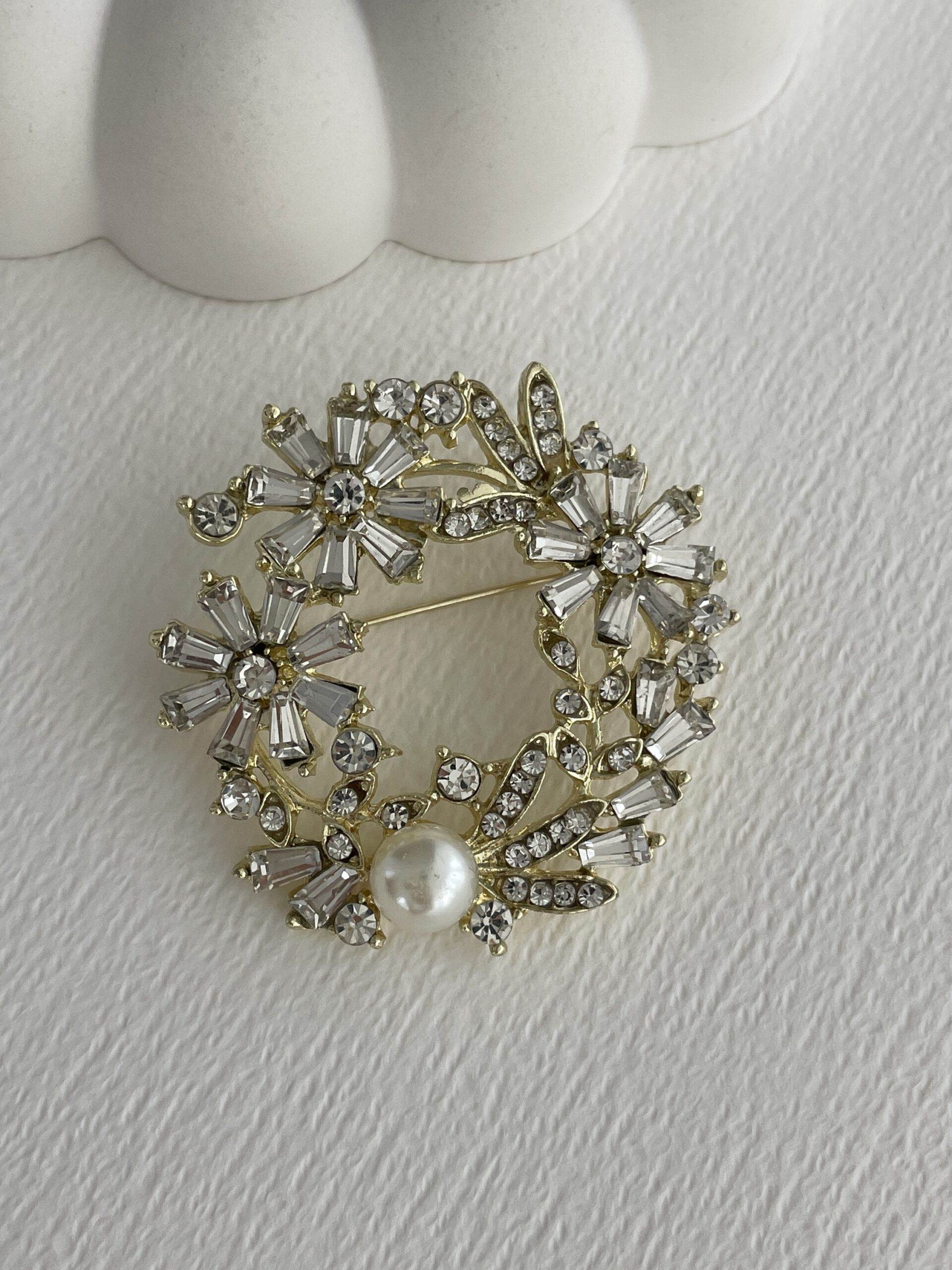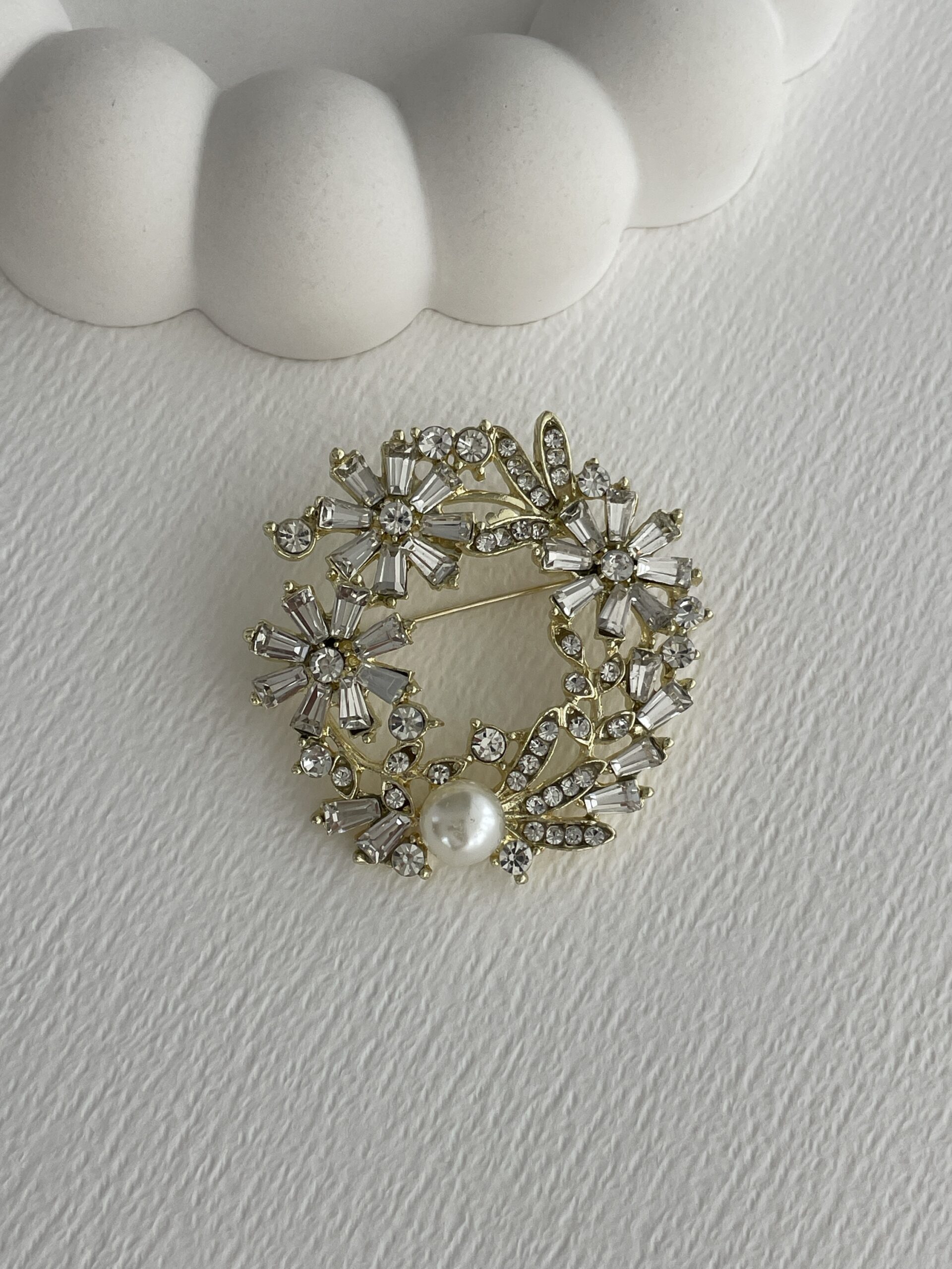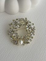 Özel Seri İnci Detay Çember Çiçek Tasarım Gold Broş