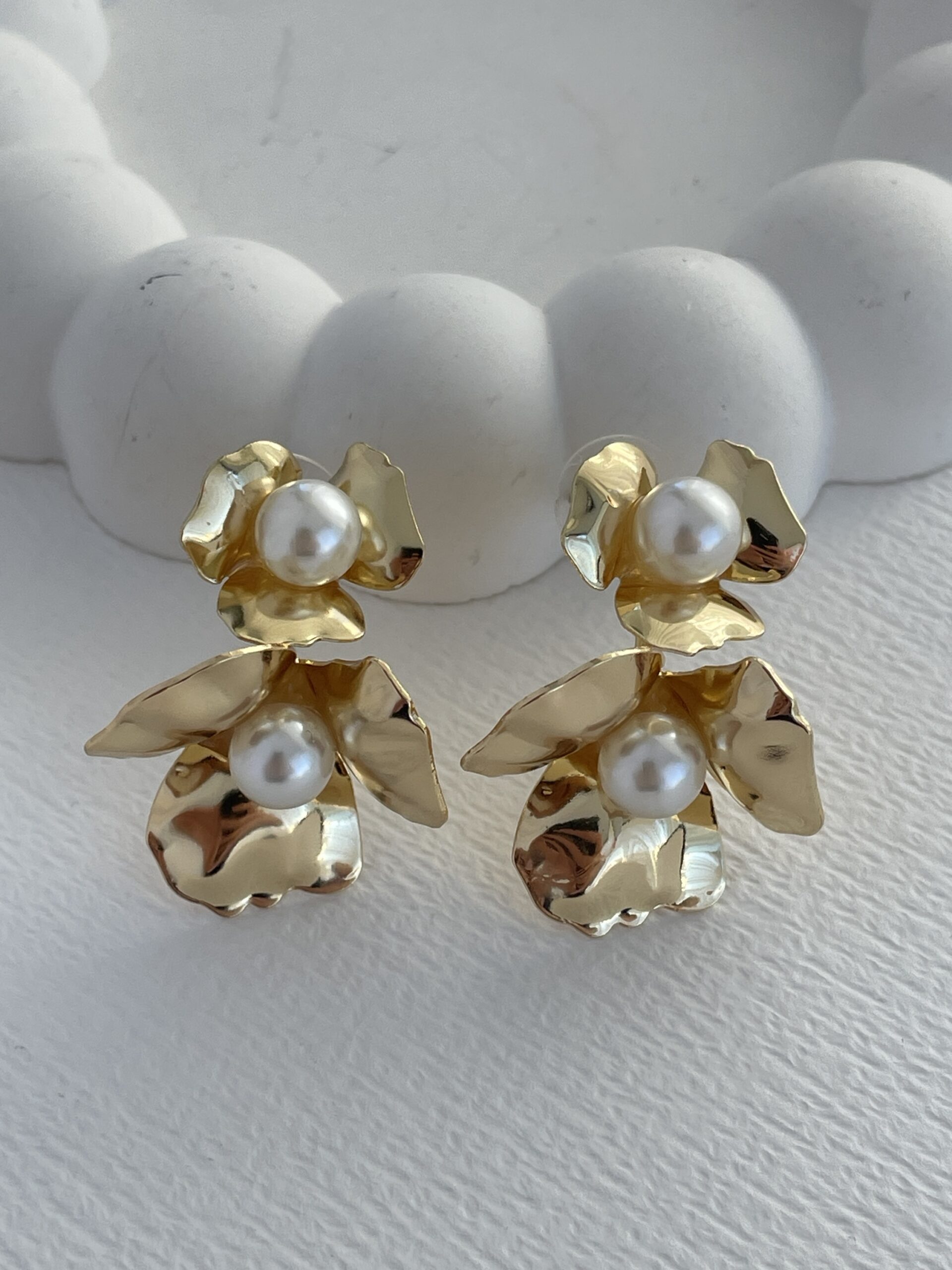 Özel Seri İnci Detay Çiçek Tasarım Gold Küpe