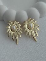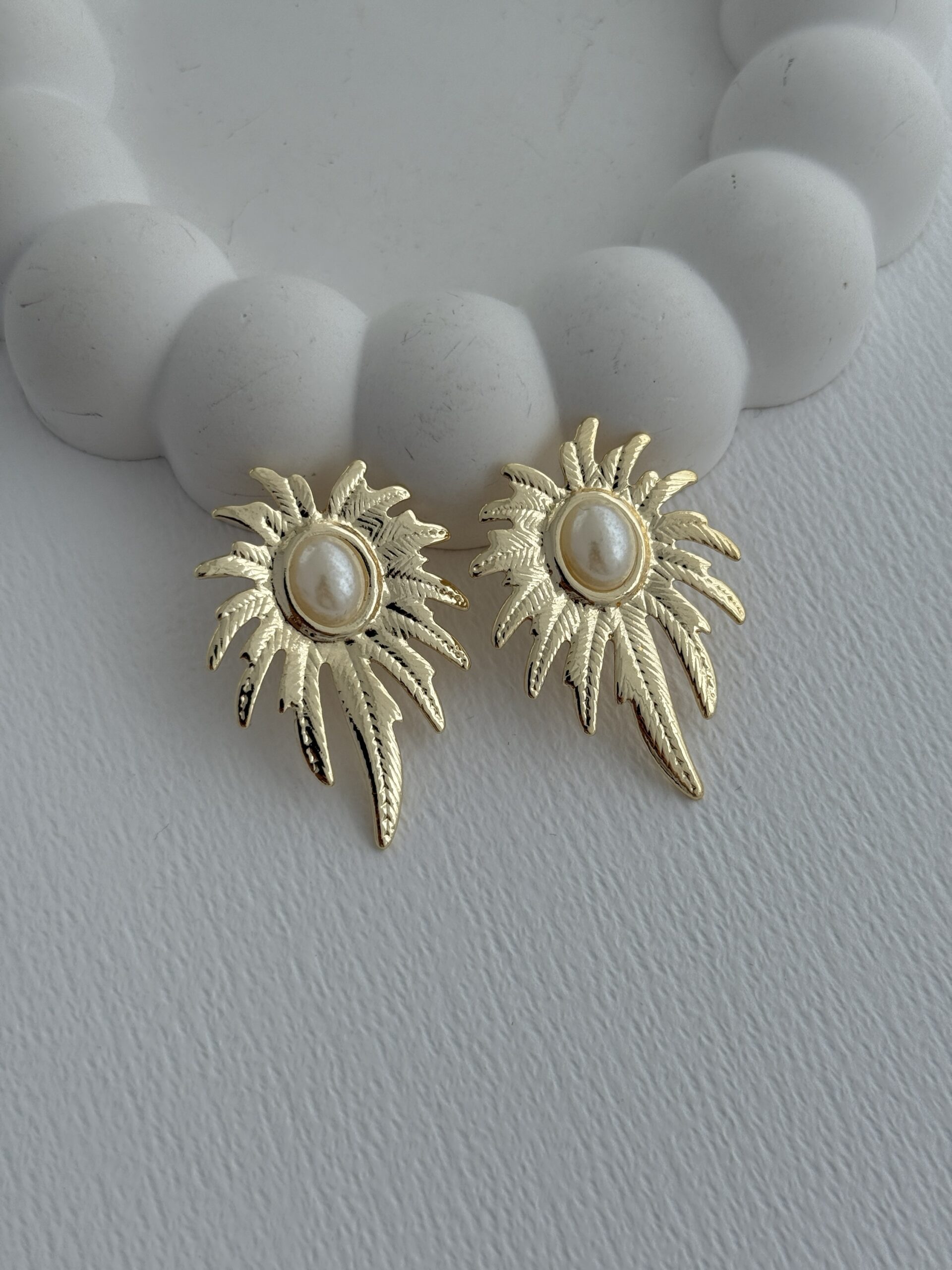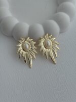 Özel Seri İnci Detay Çiçek Tasarım Gold Küpe