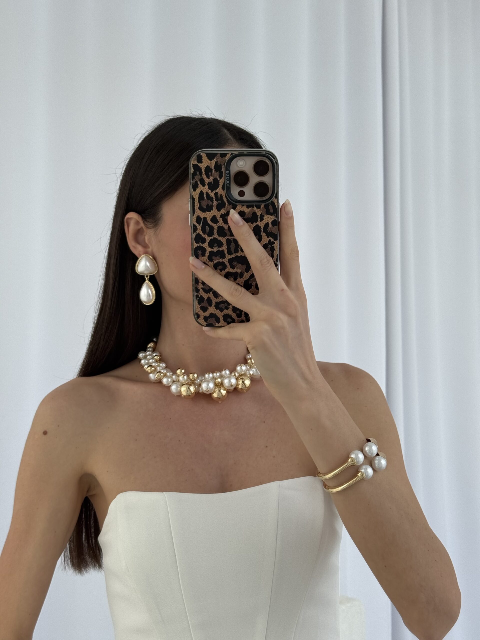 Özel Seri İnci Detay Damla Model Gold Küpe