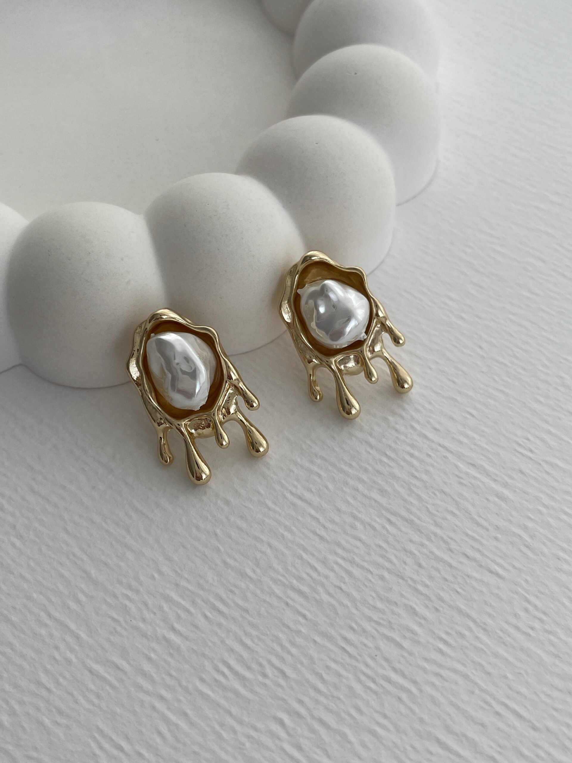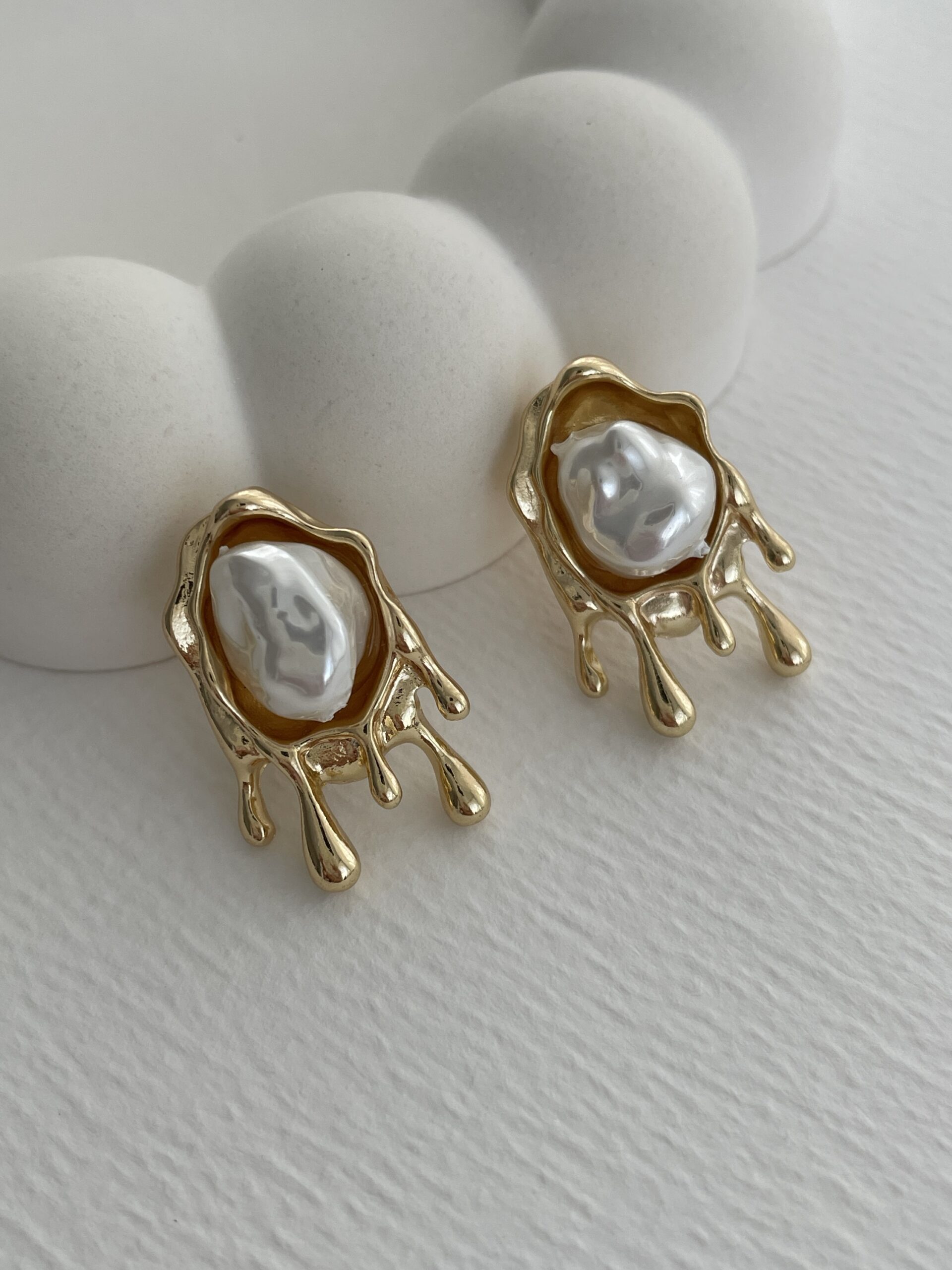 Özel Seri İnci Detay Damla Tasarım Gold Küpe