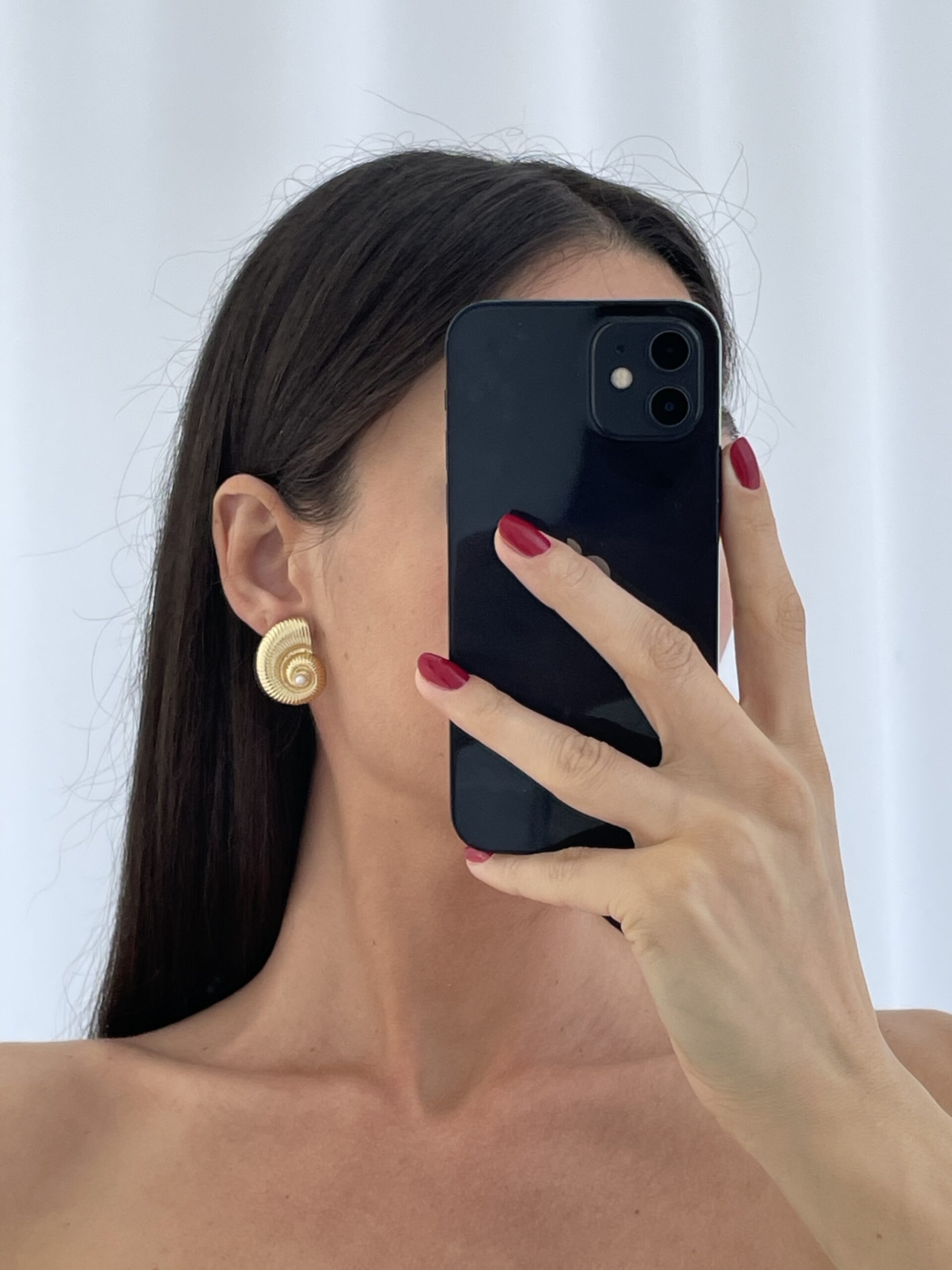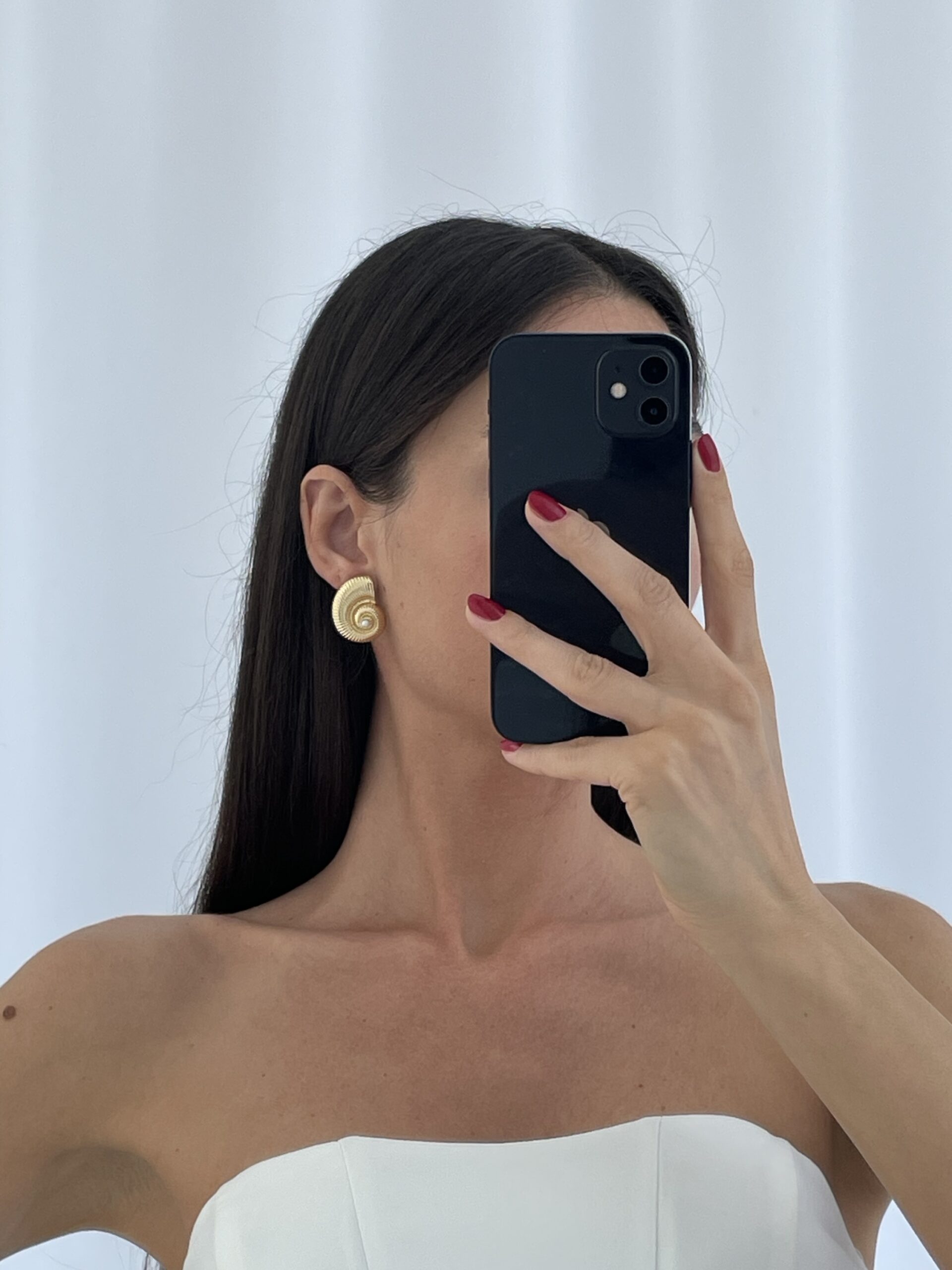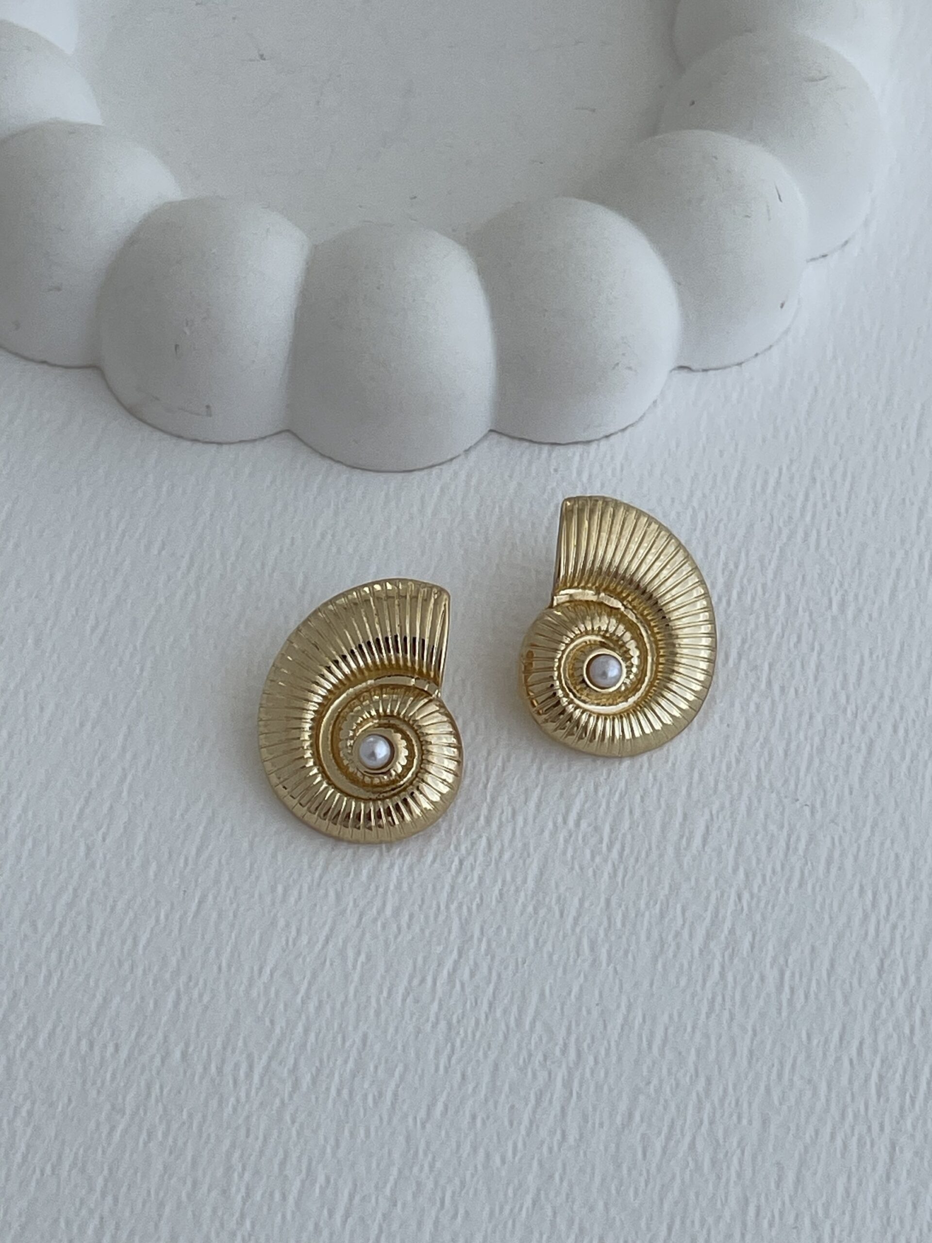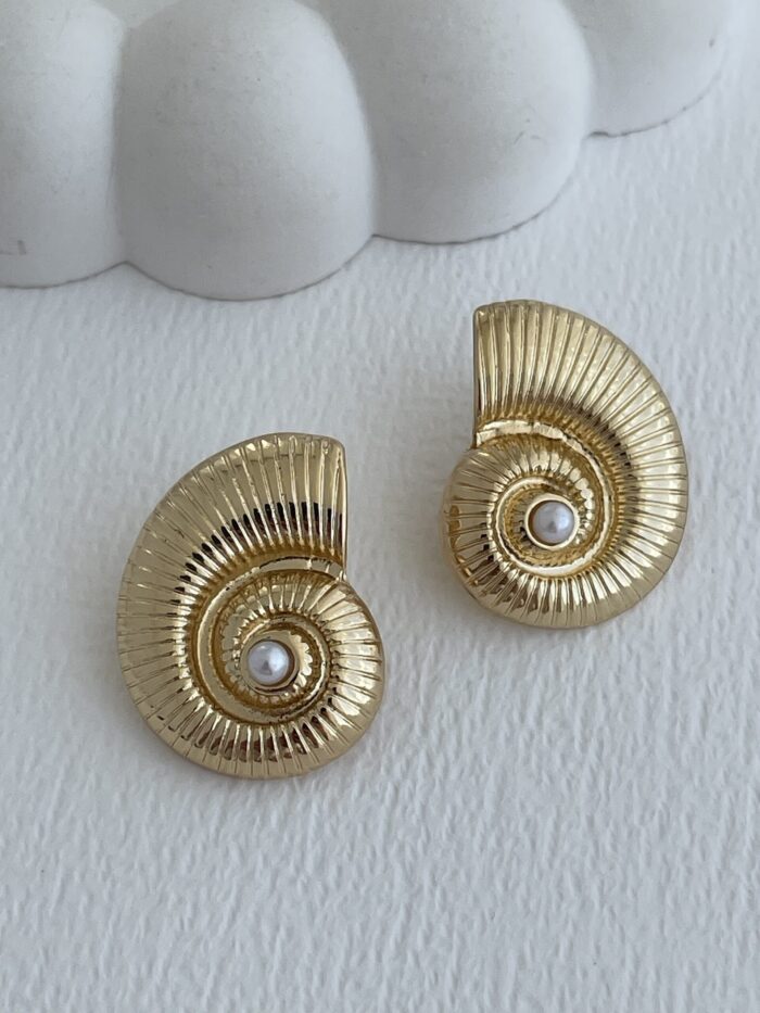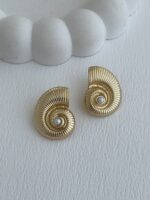 Özel Seri İnci Detay Deniz Kabuğu Gold Küpe