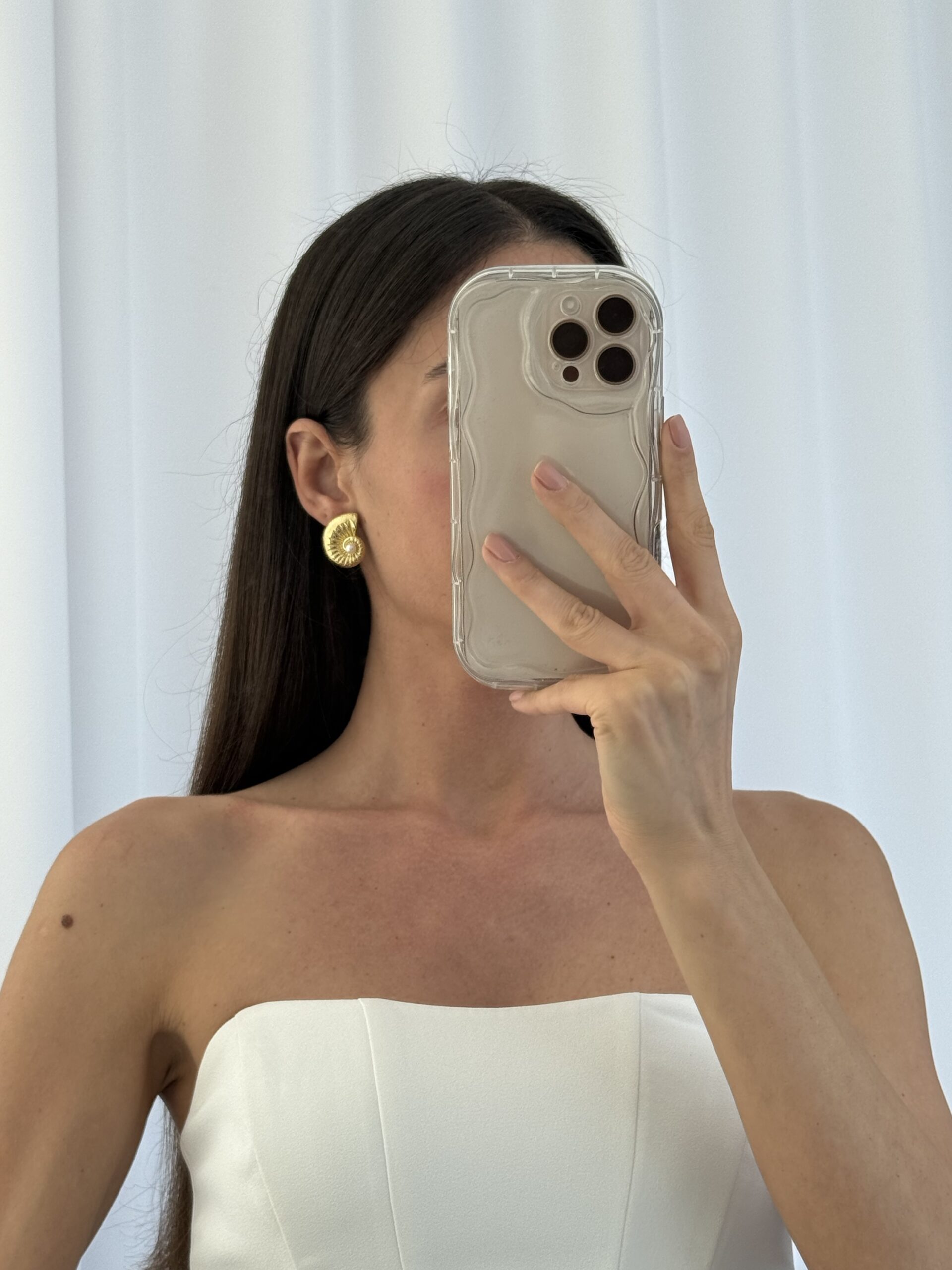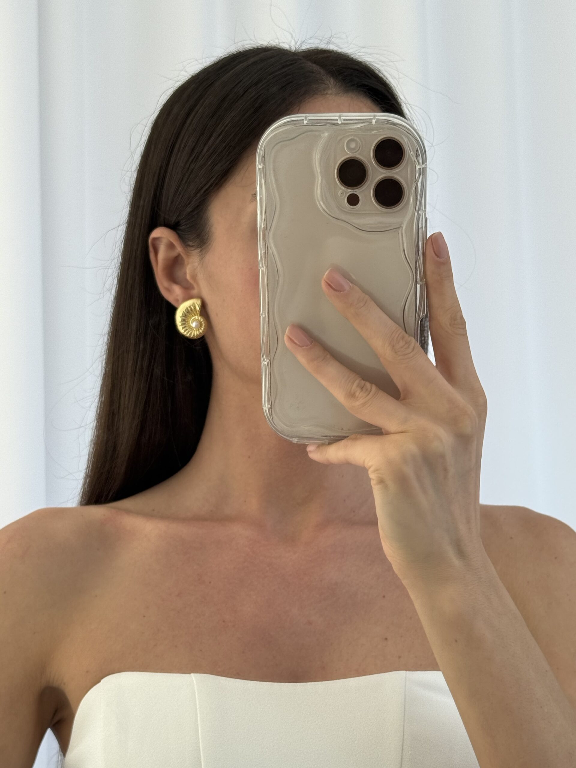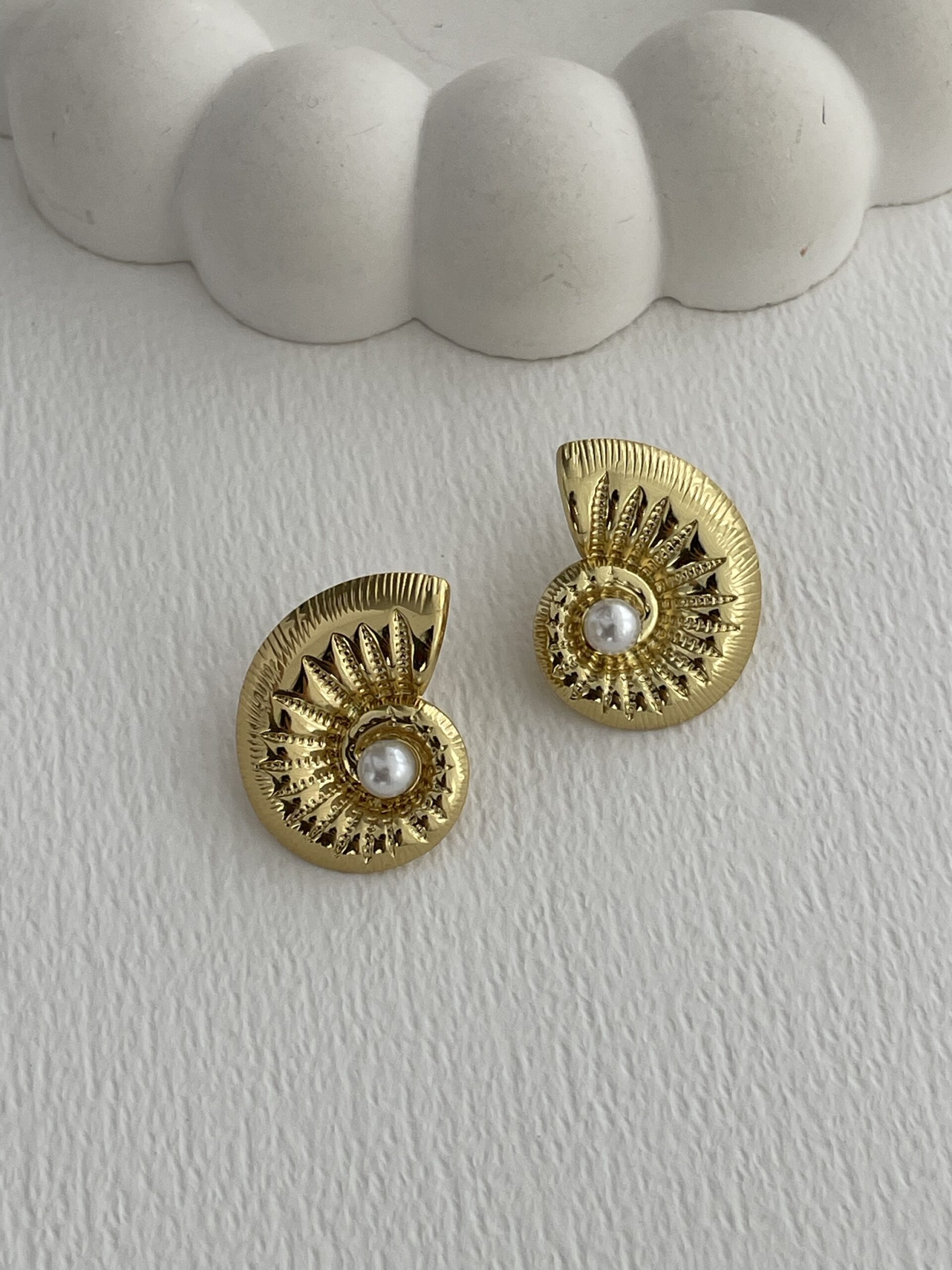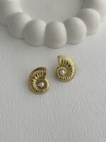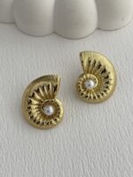 Özel Seri İnci Detay Deniz Kabuğu Gold Küpe