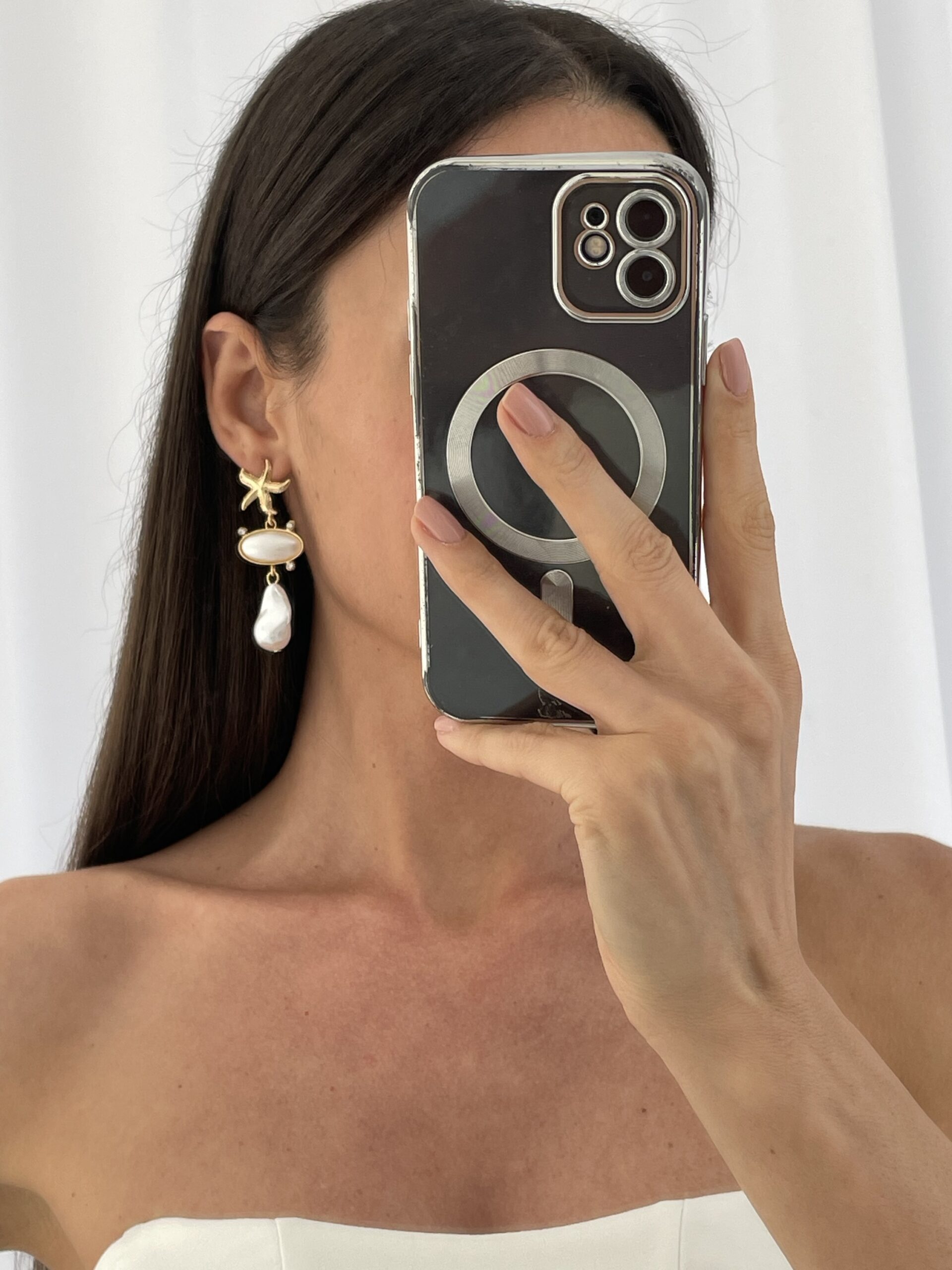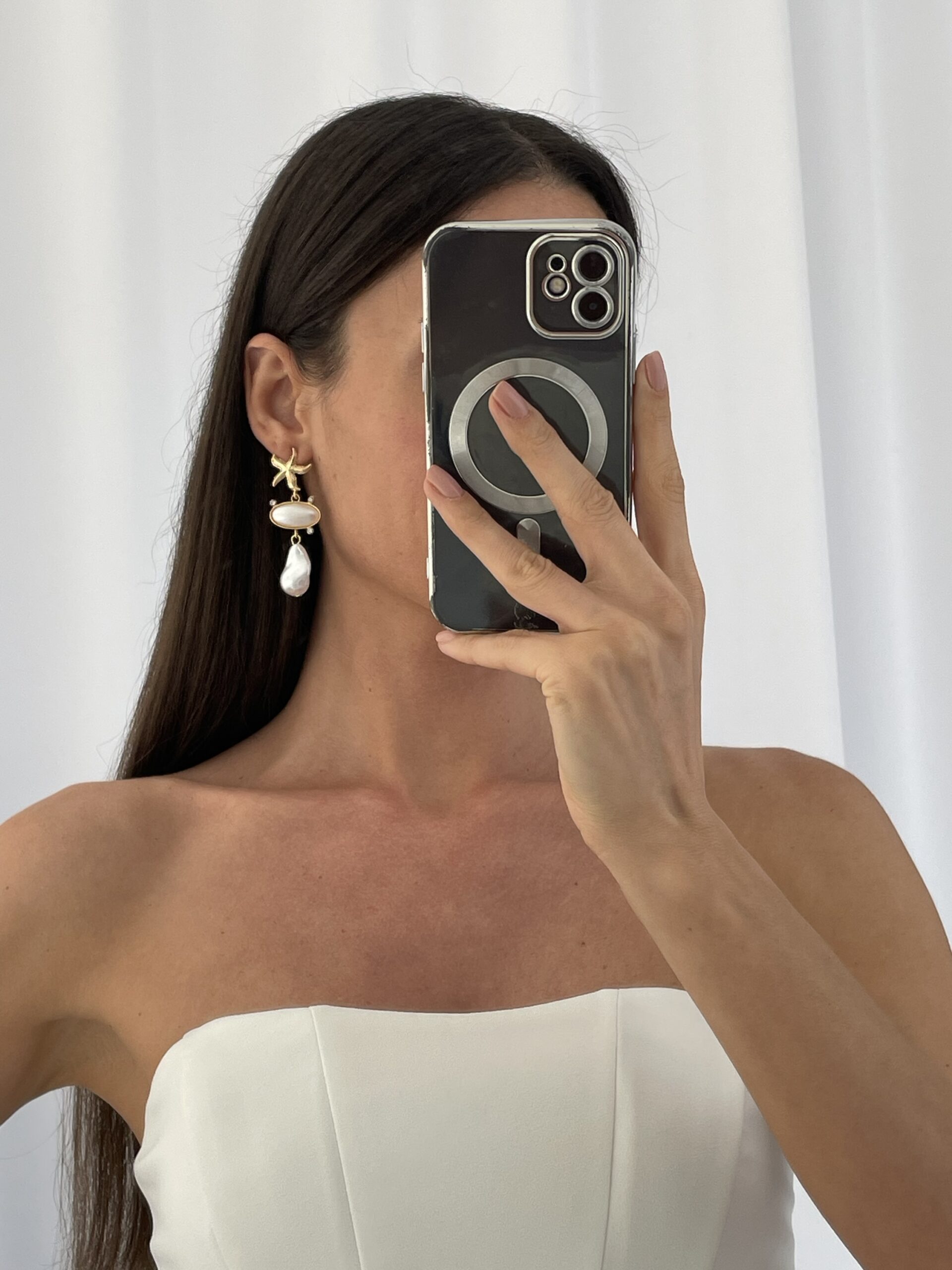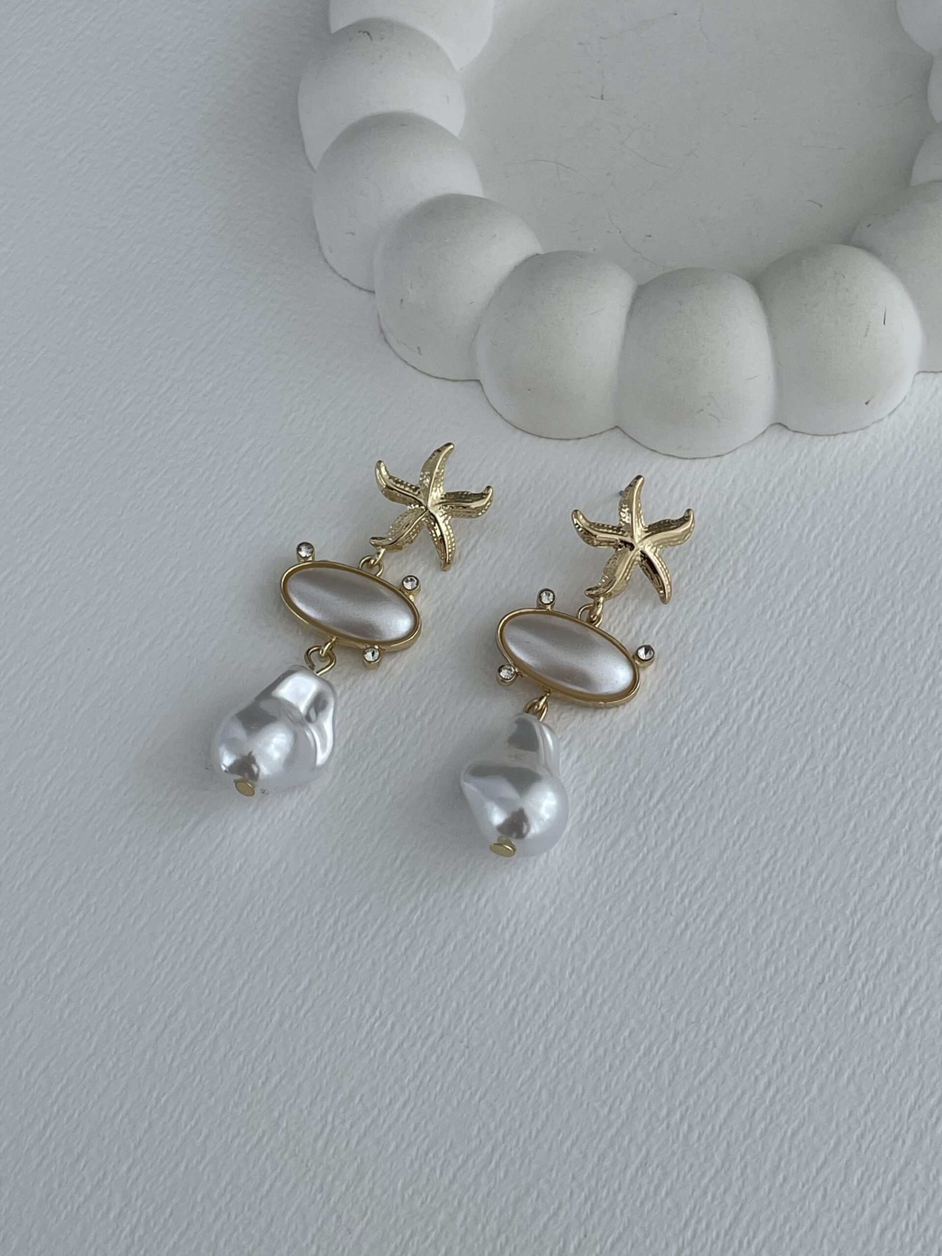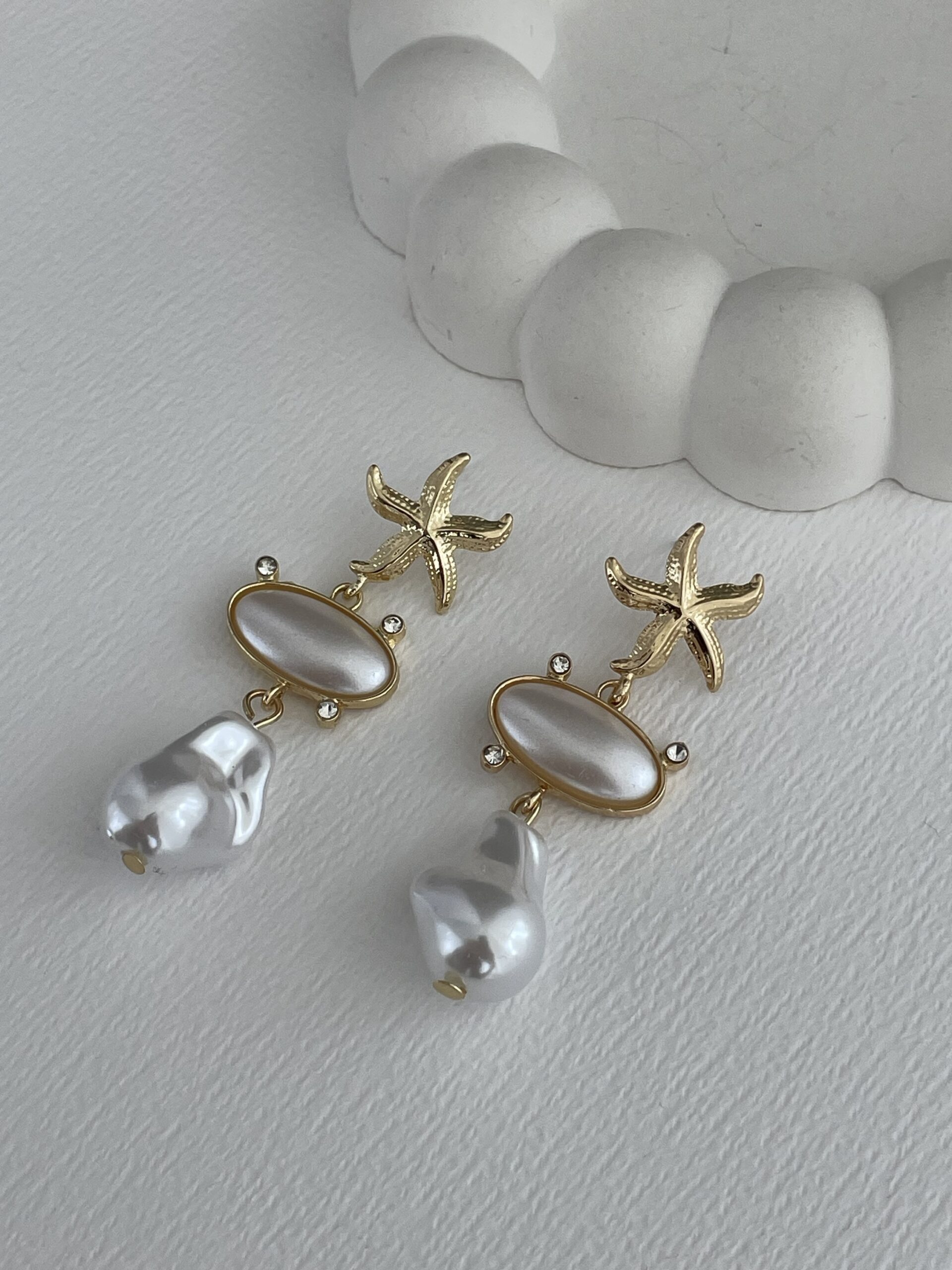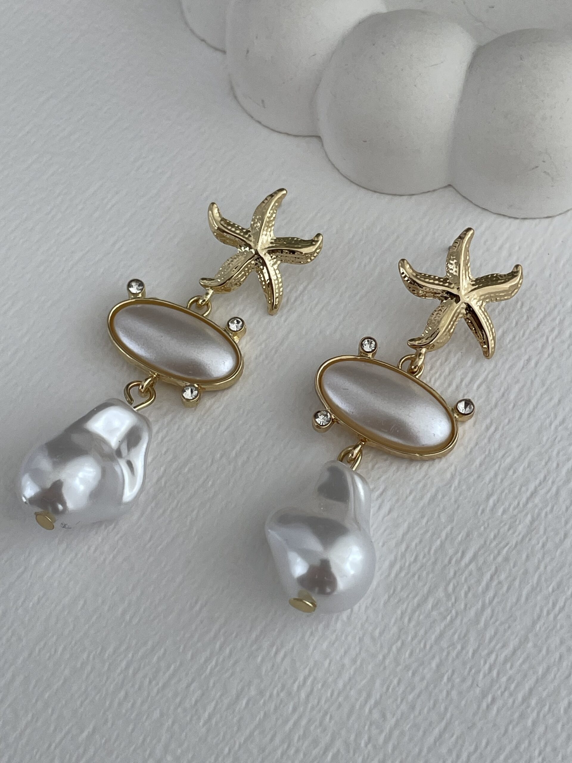 Özel Seri İnci Detay Deniz Yıldızı Gold Küpe