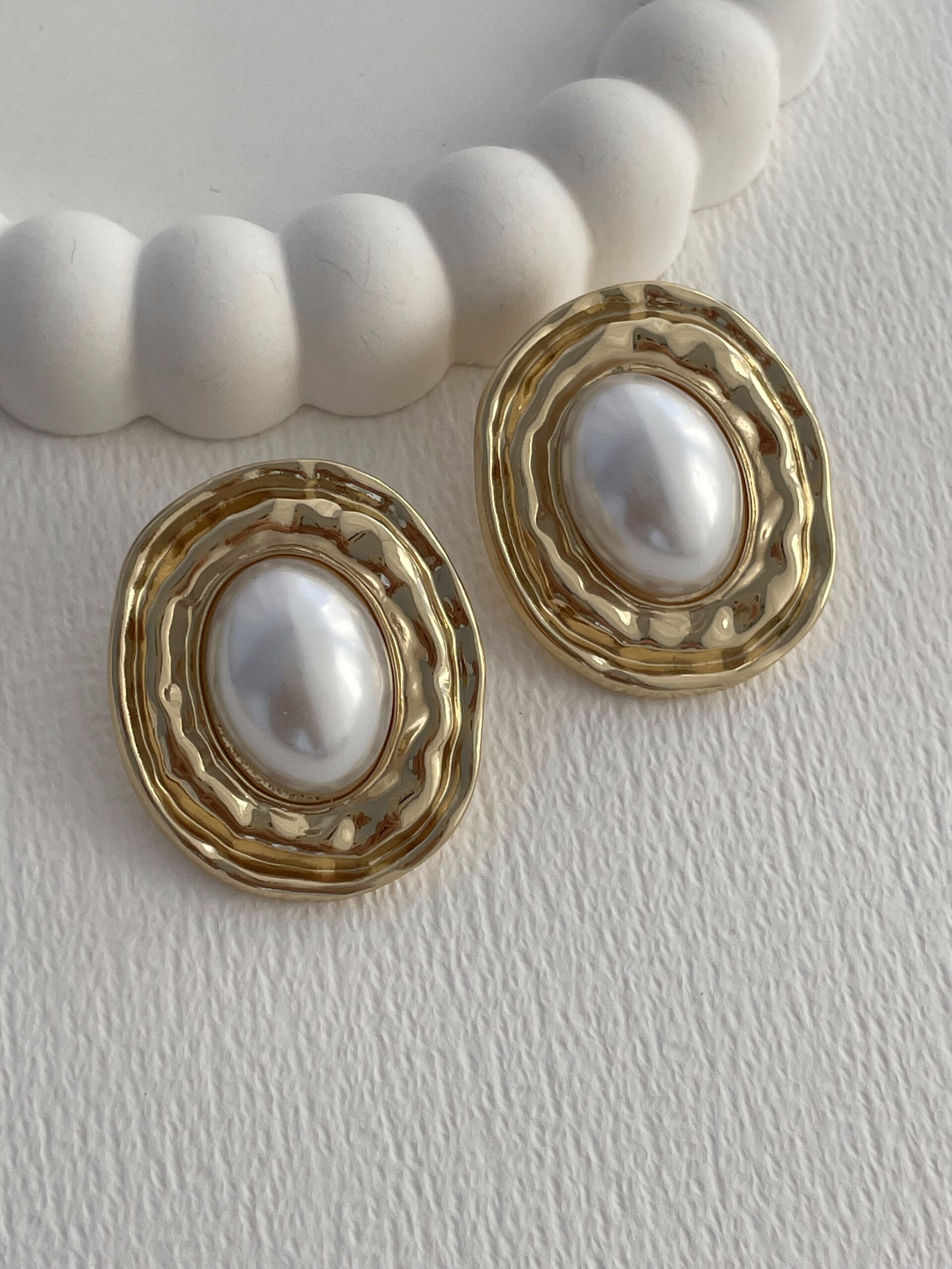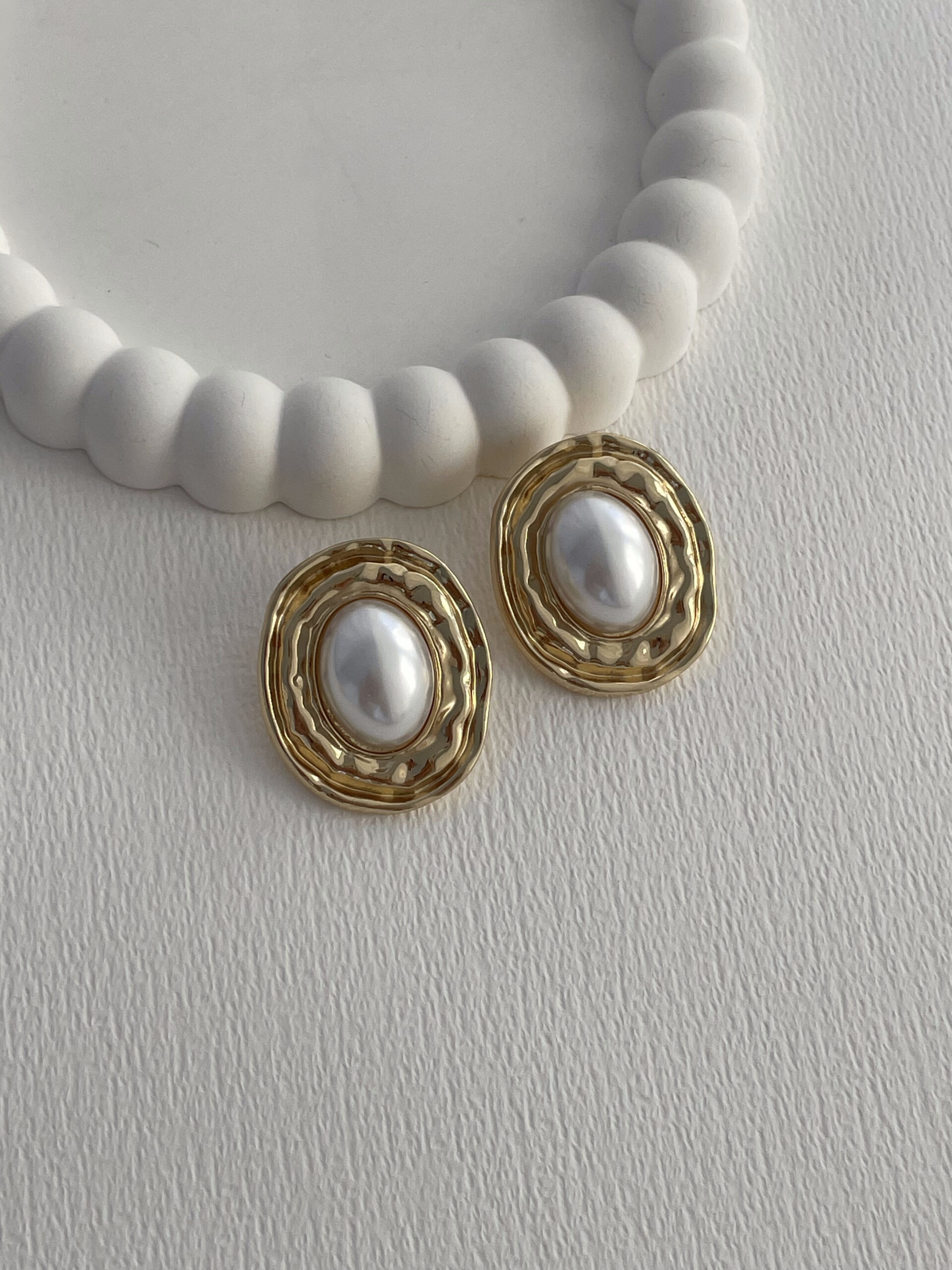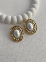 Özel Seri İnci Detay Desenli Oval Gold Küpe