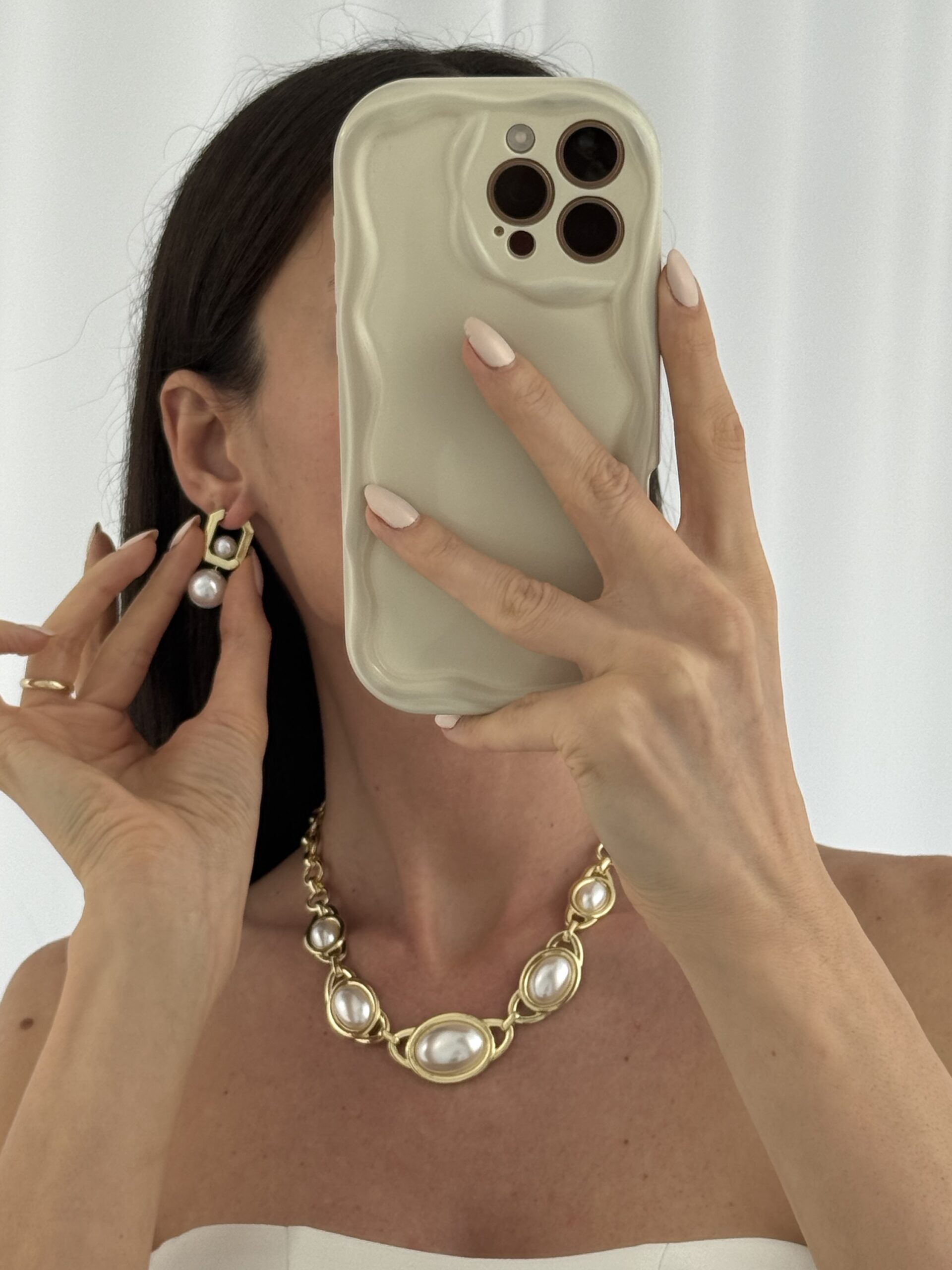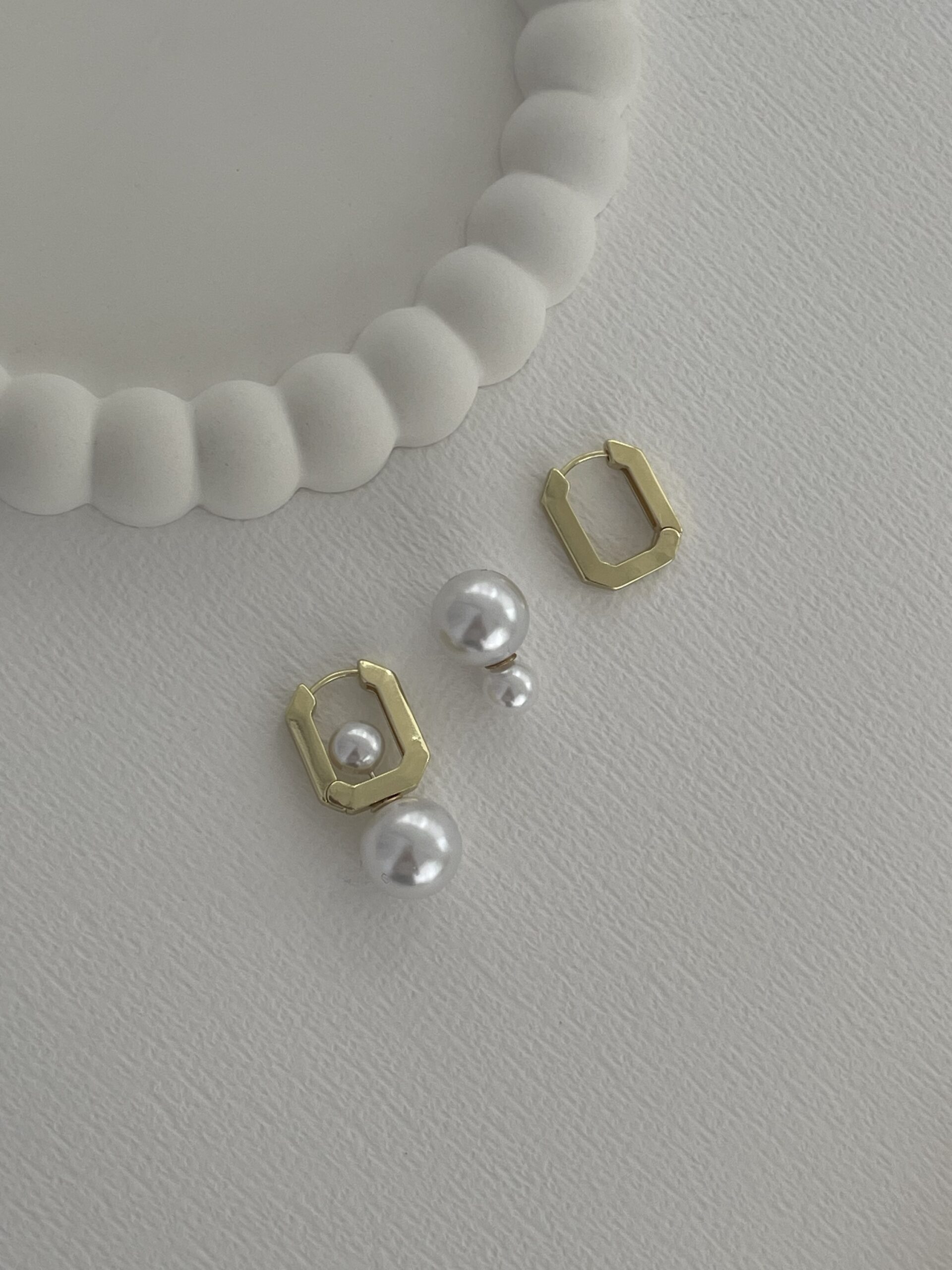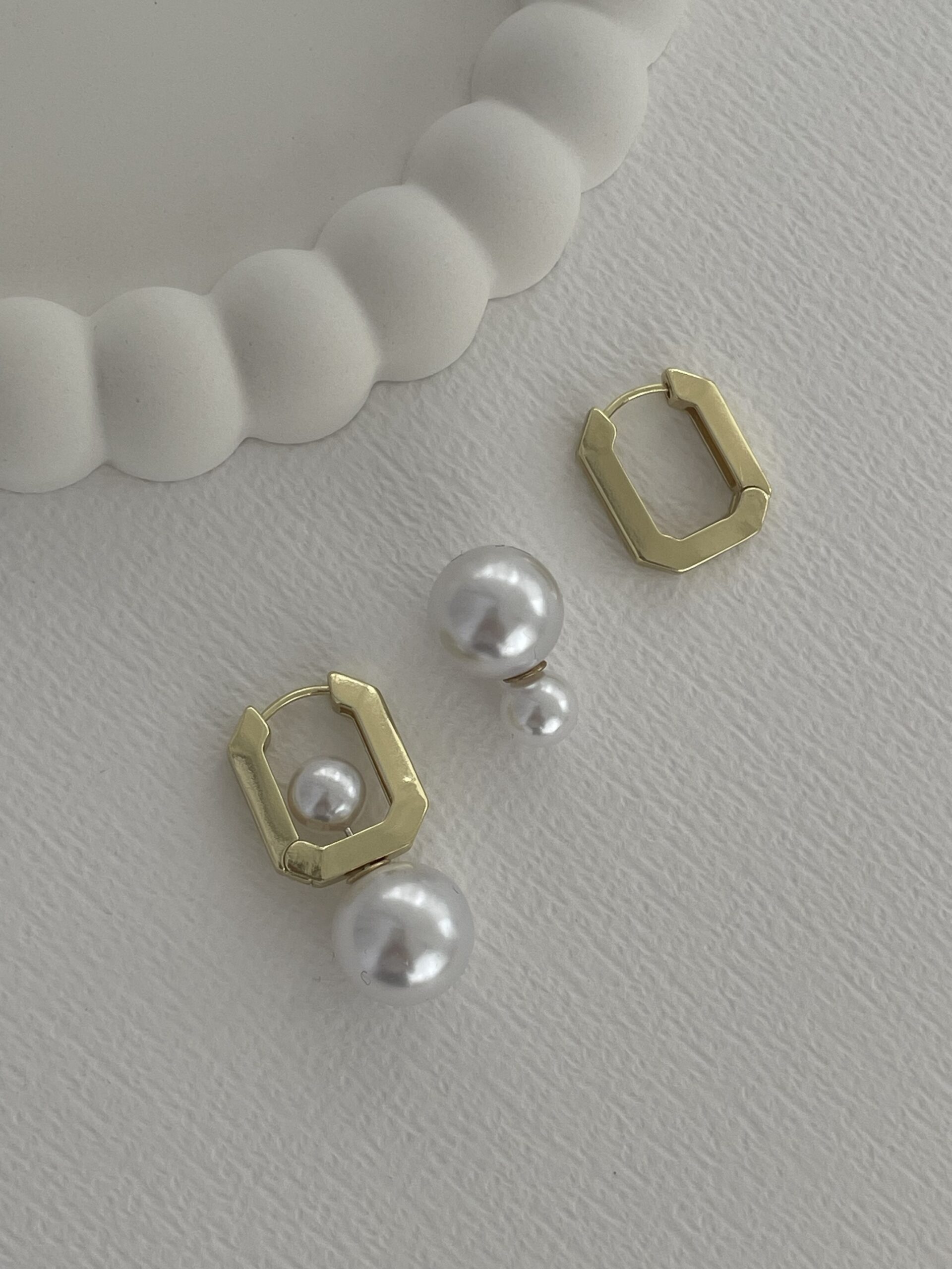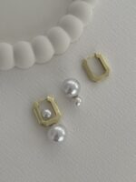 Özel Seri İnci Detay İkili Görünüm Geometrik Tasarım Gold Küpe