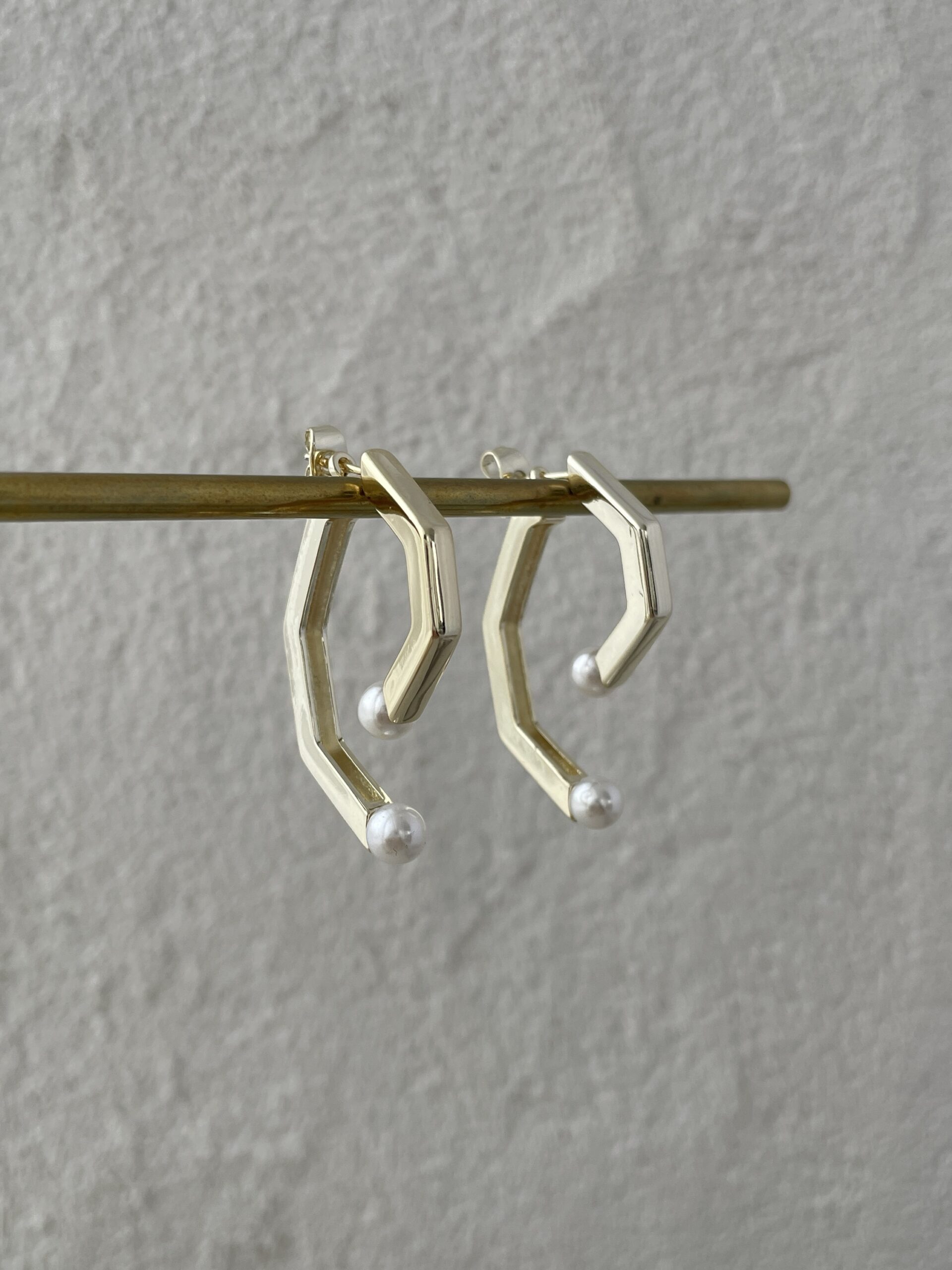 Özel Seri İnci Detay Geometrik Tasarım Gold Küpe