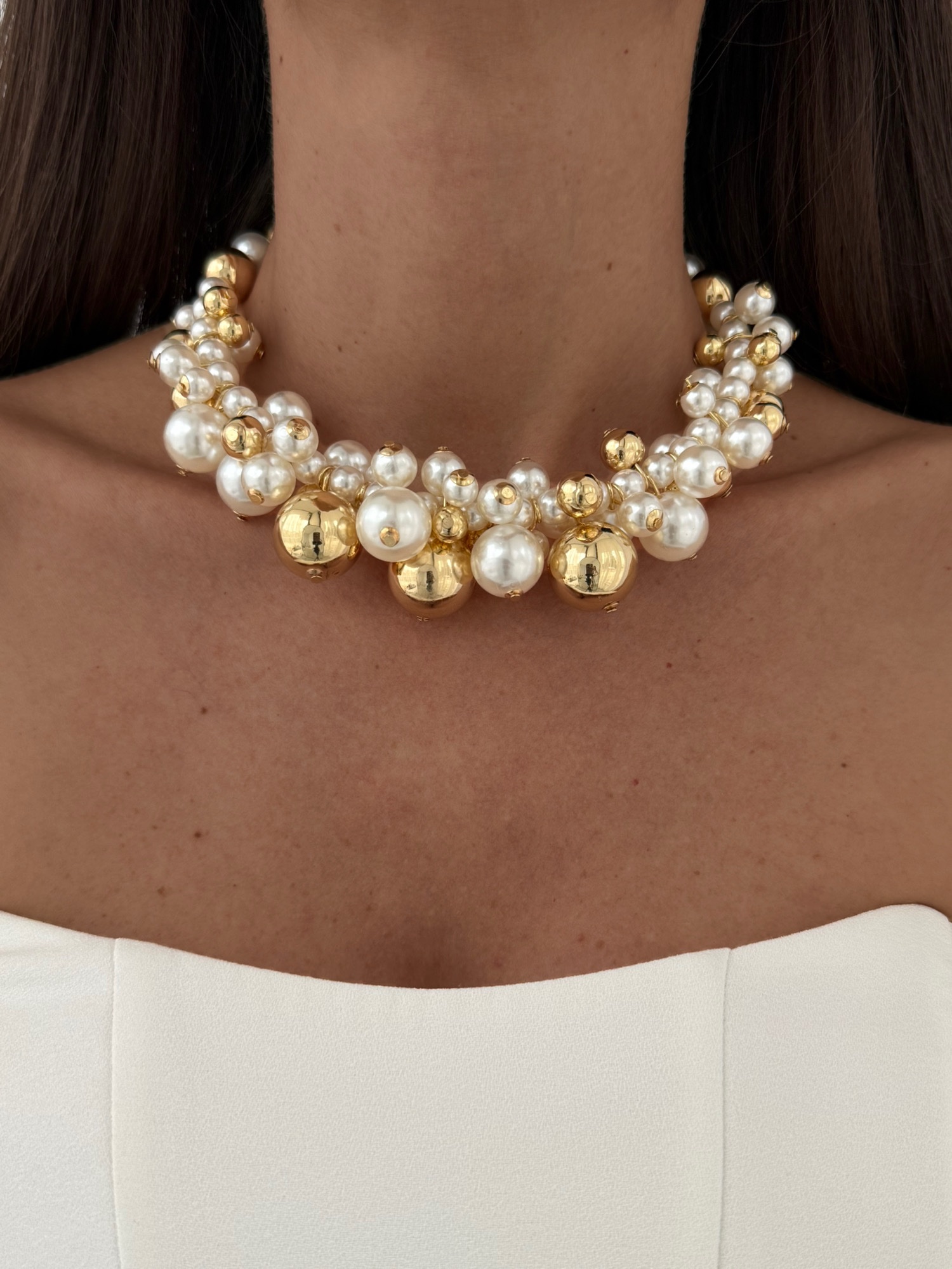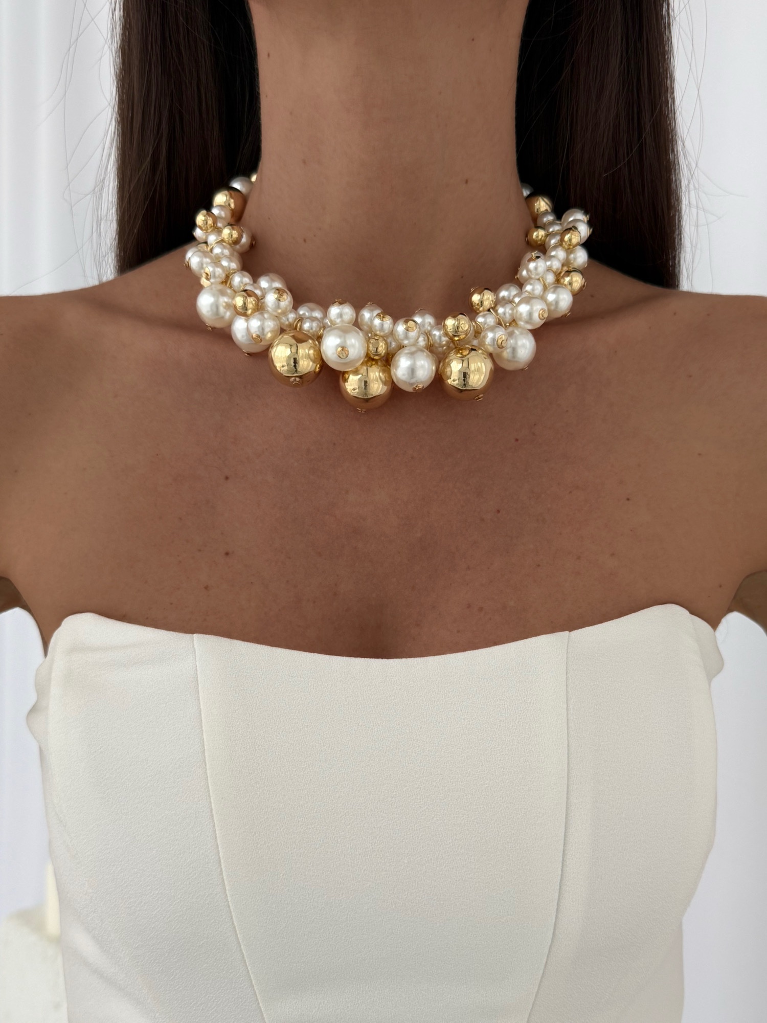 Özel Seri İnci Detay Gold Choker Kolye