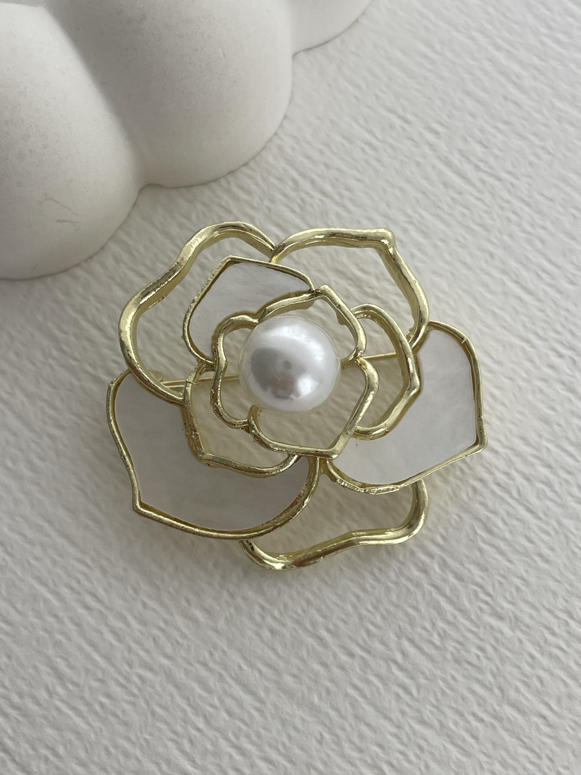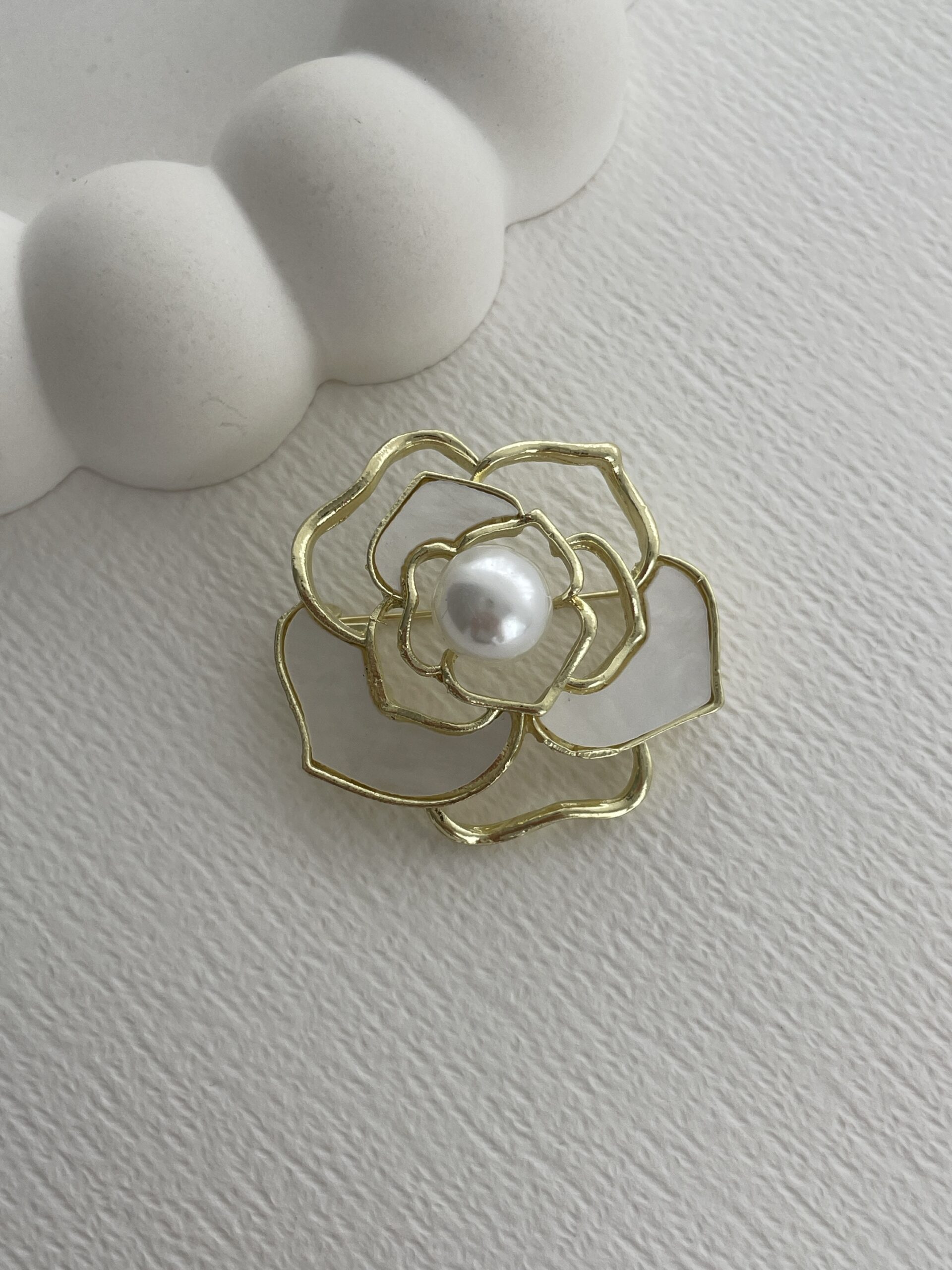 Özel Seri İnci Detay Gül Tasarım Gold Broş
