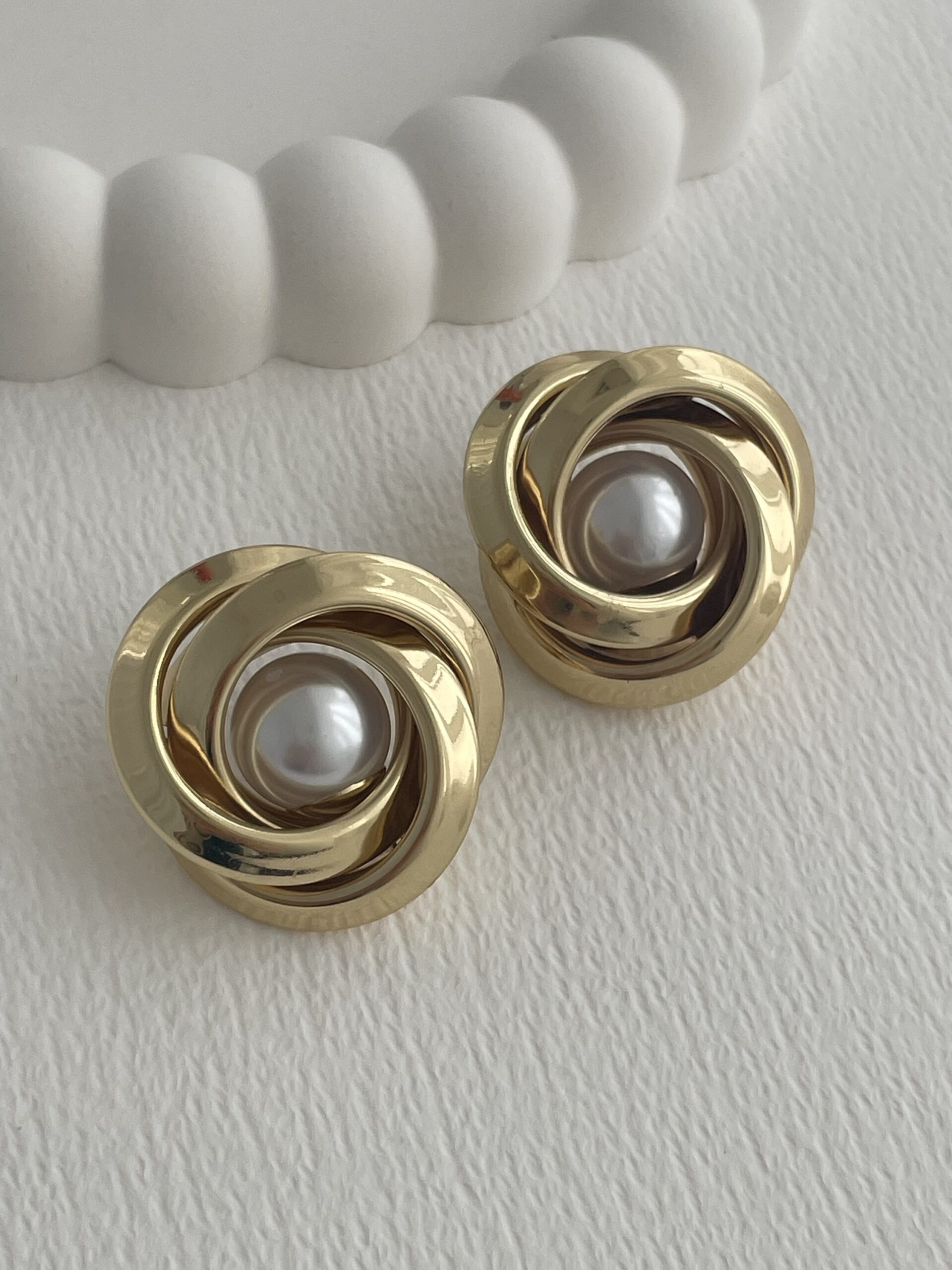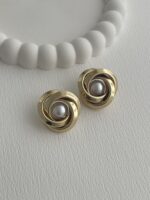 Özel Seri İnci Detay Gül Tasarım Gold Küpe