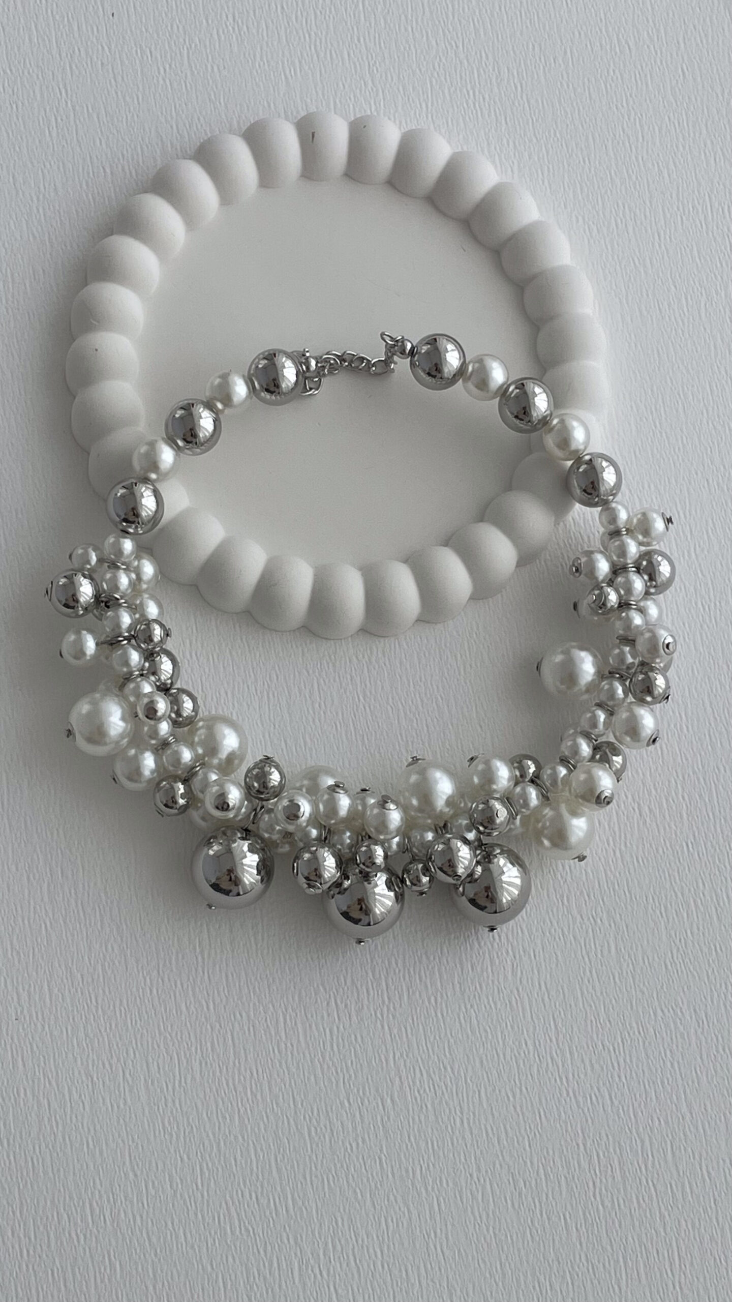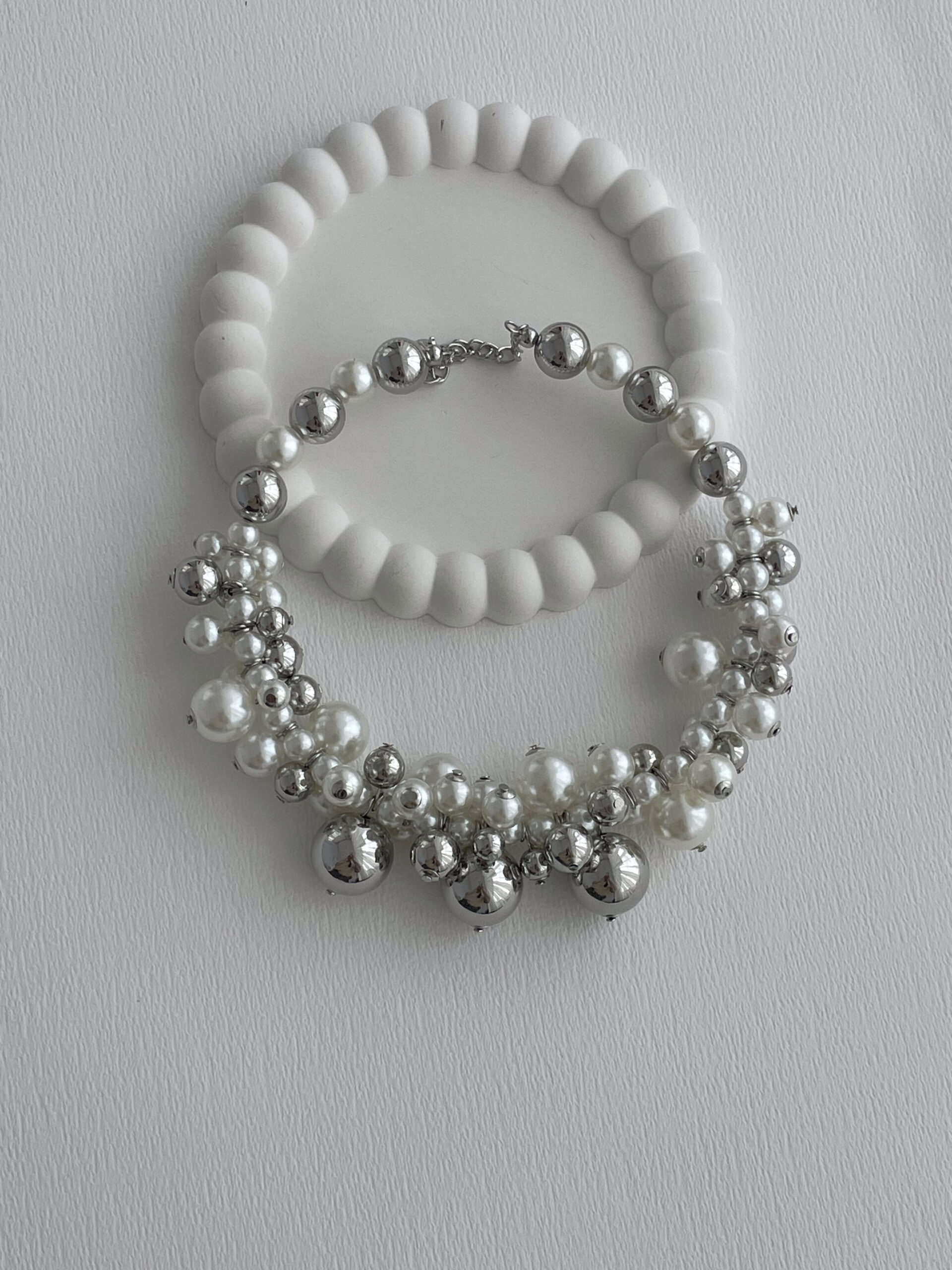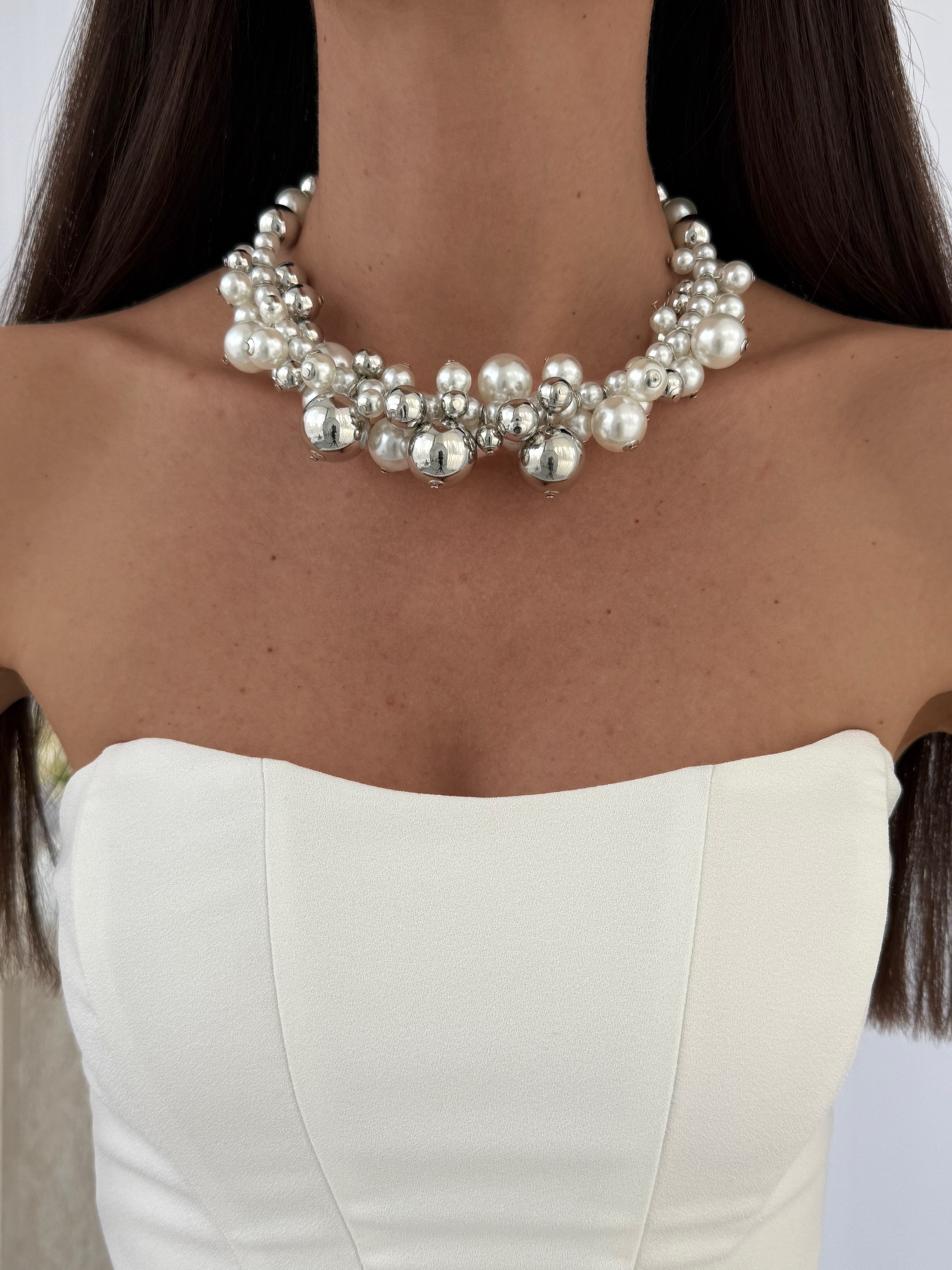 Özel Seri İnci Detay Gümüş Choker Kolye
