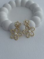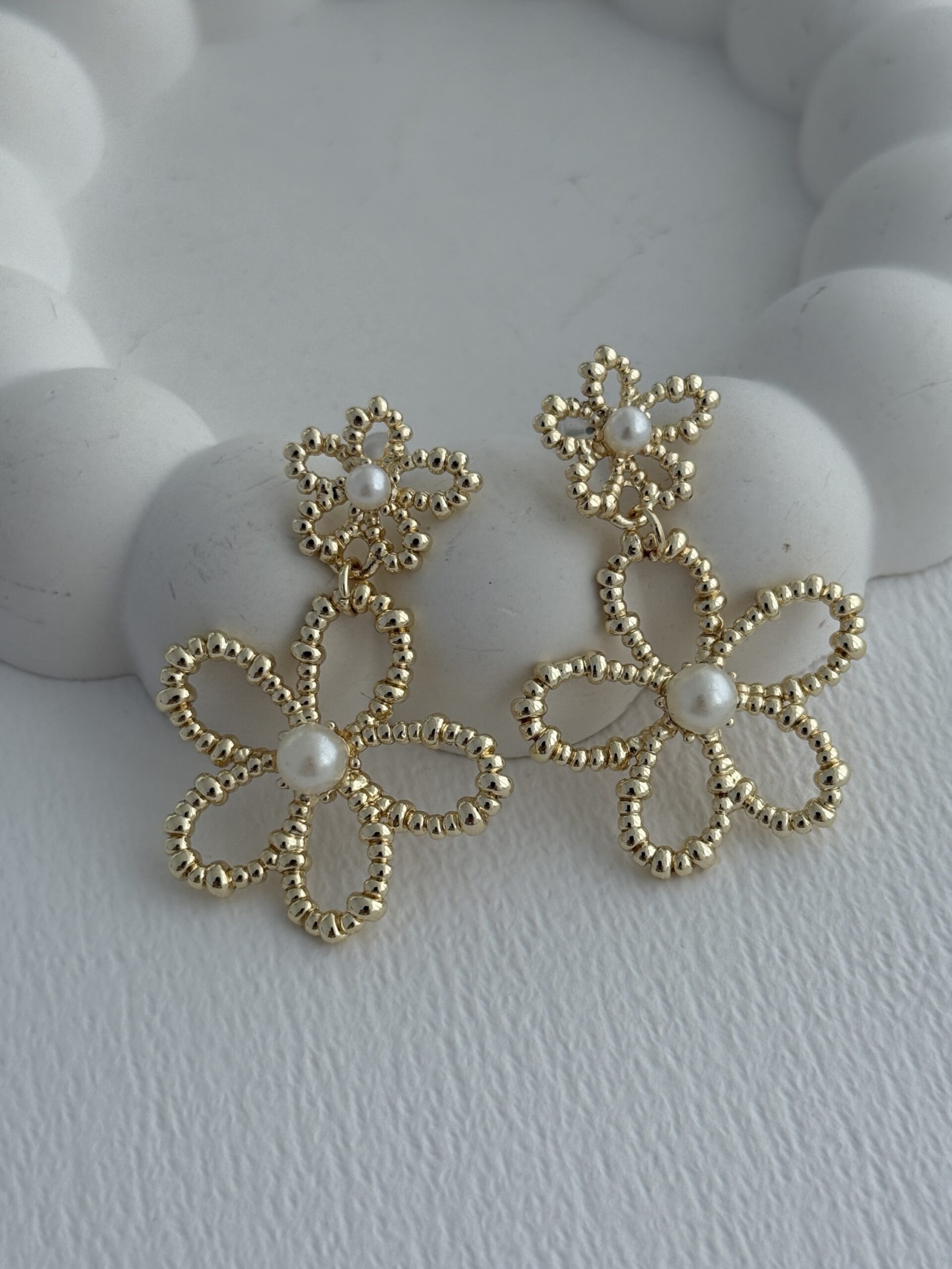 Özel Seri İnci Detay İkili Çiçek Tasarım Gold Küpe