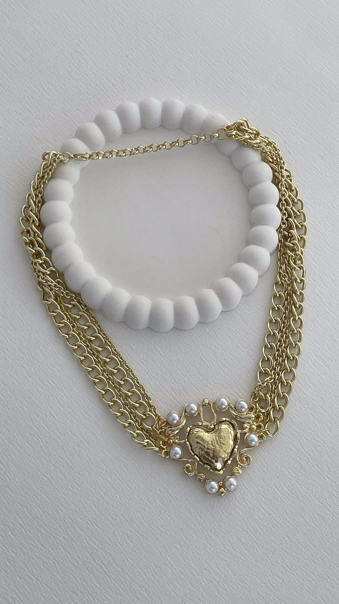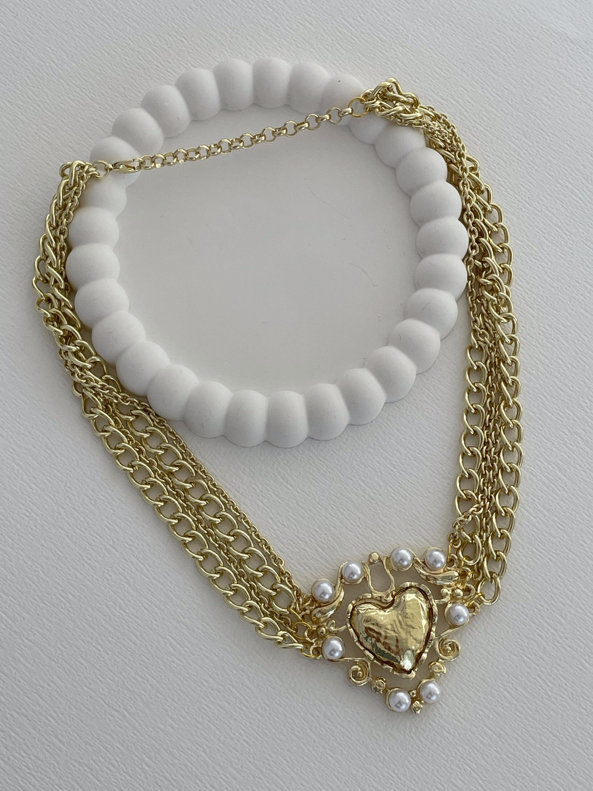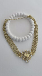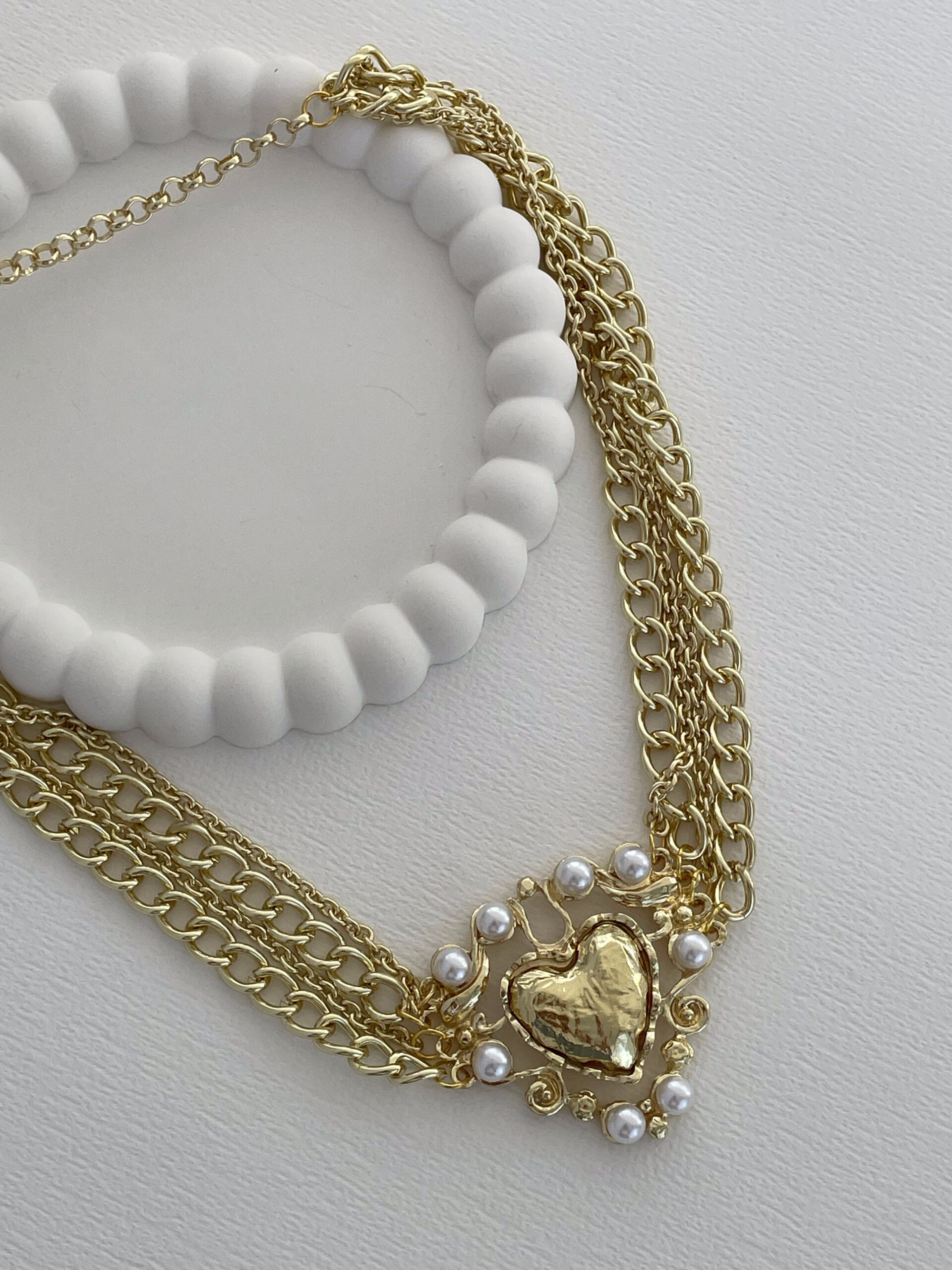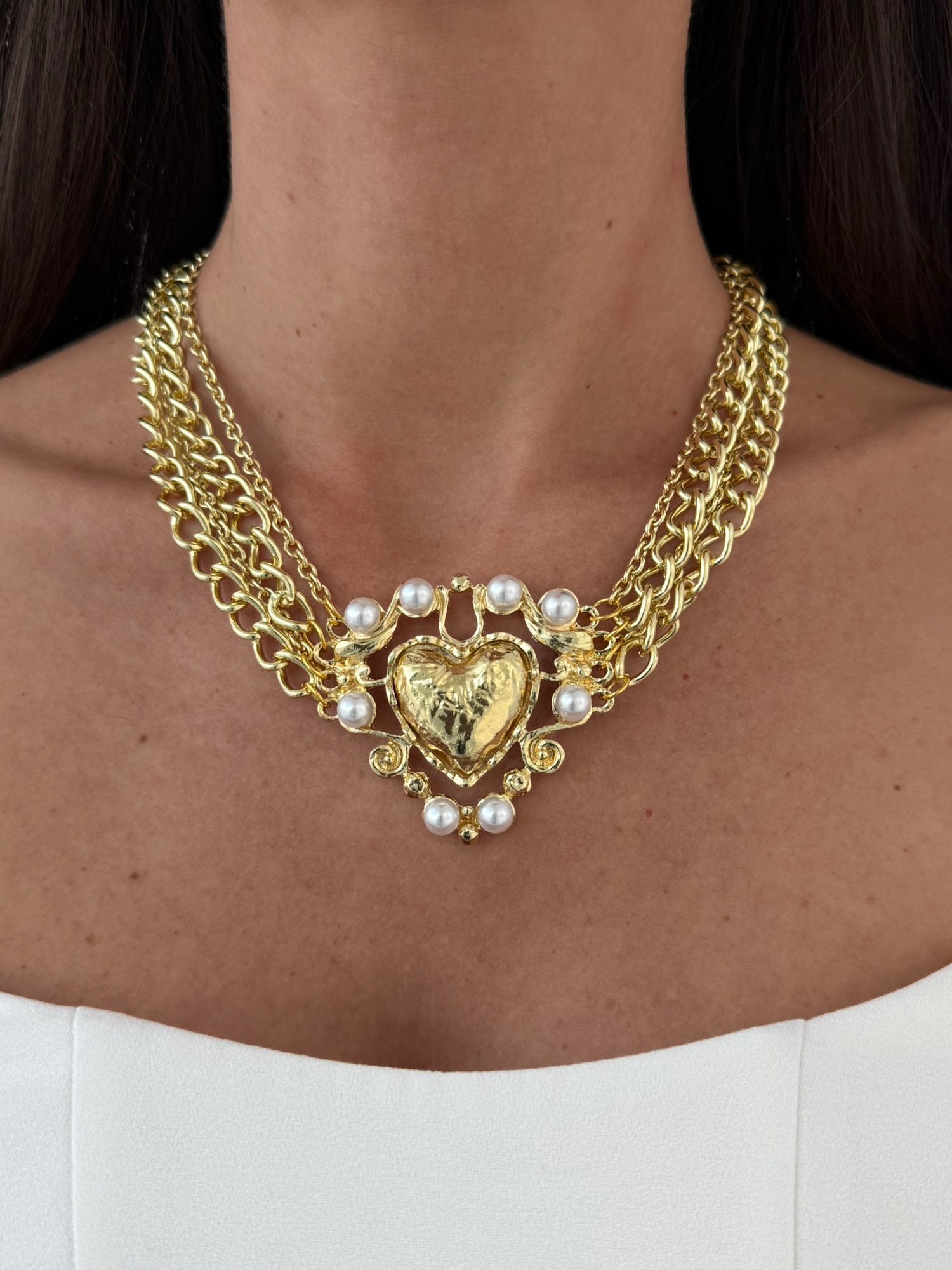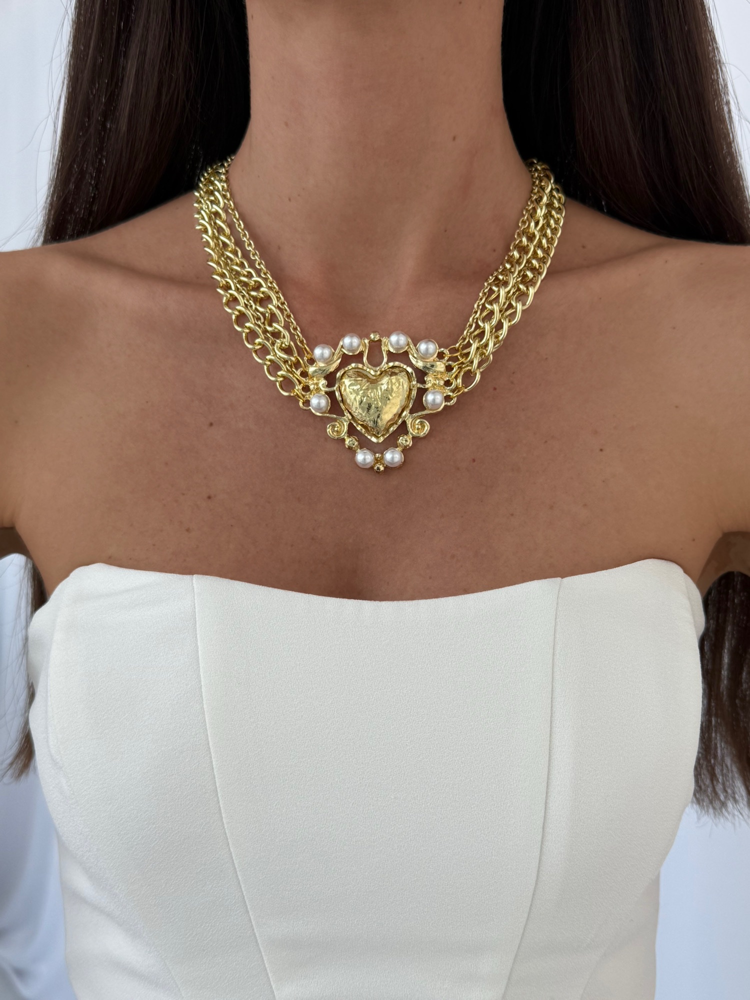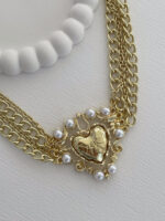 Özel Seri İnci Detay Kalp Tasarım Çoklu Zincir Gold Kolye