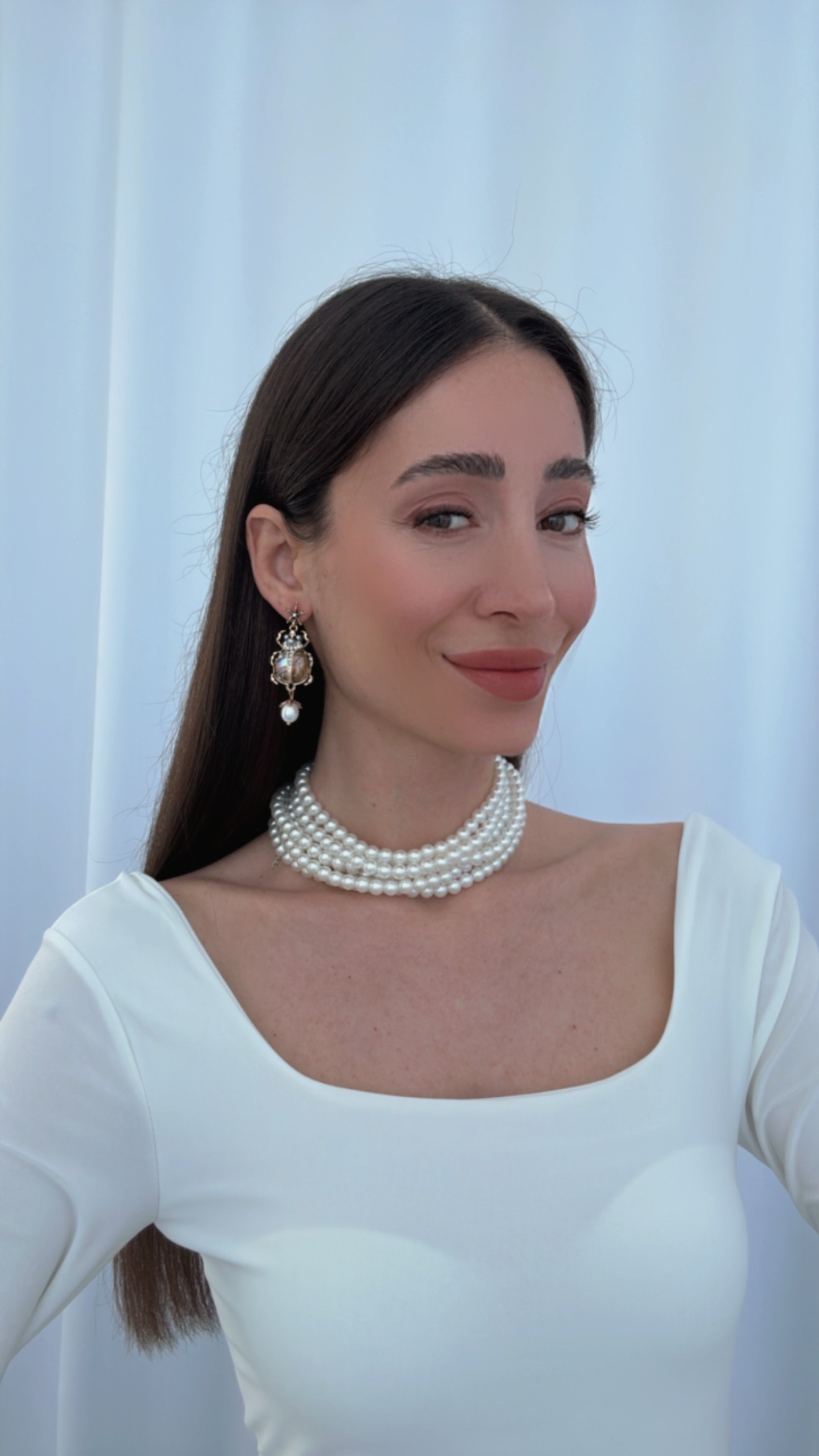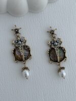 Özel Seri İnci Detay Örümcek Tasarım Gold Küpe