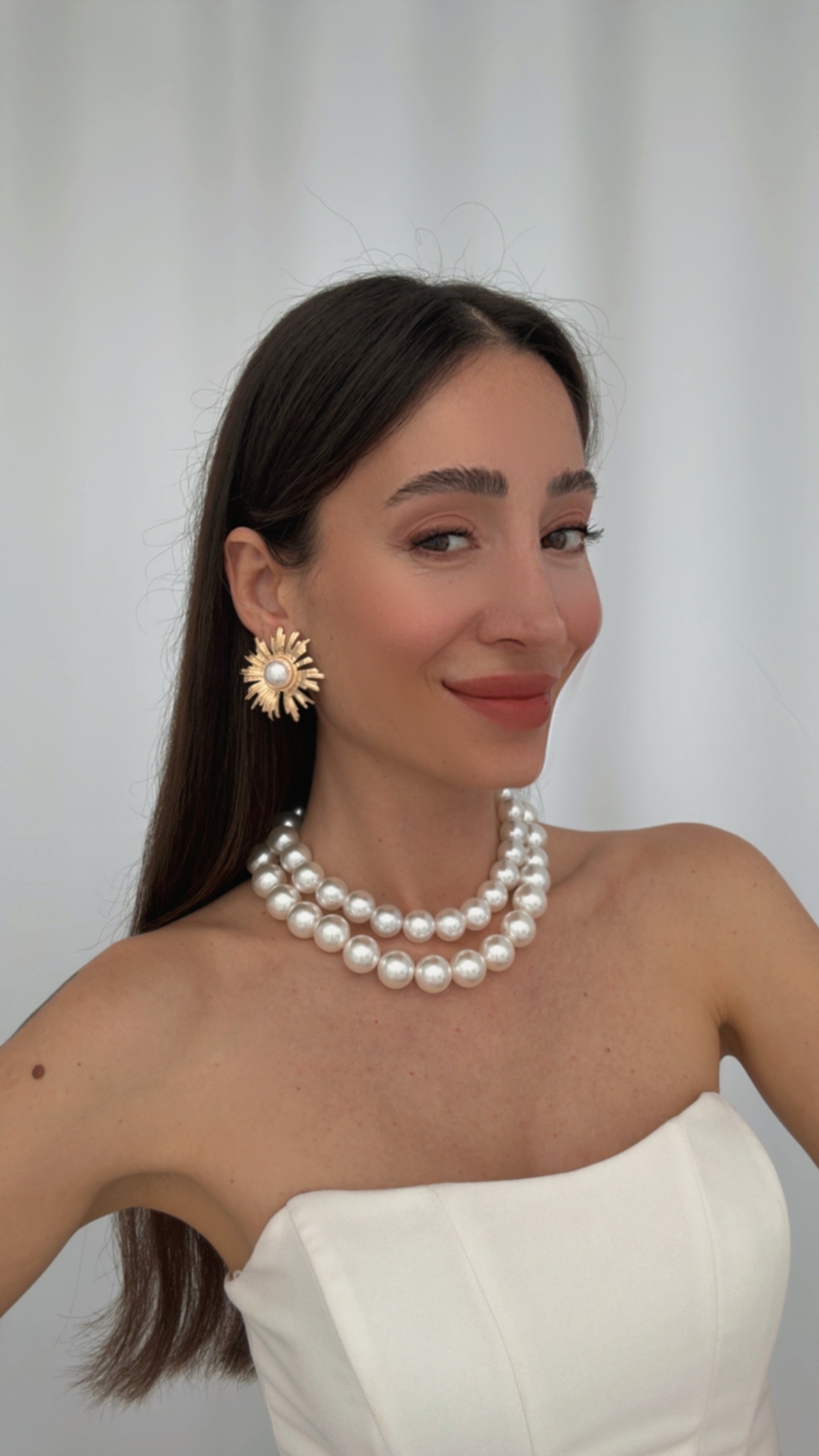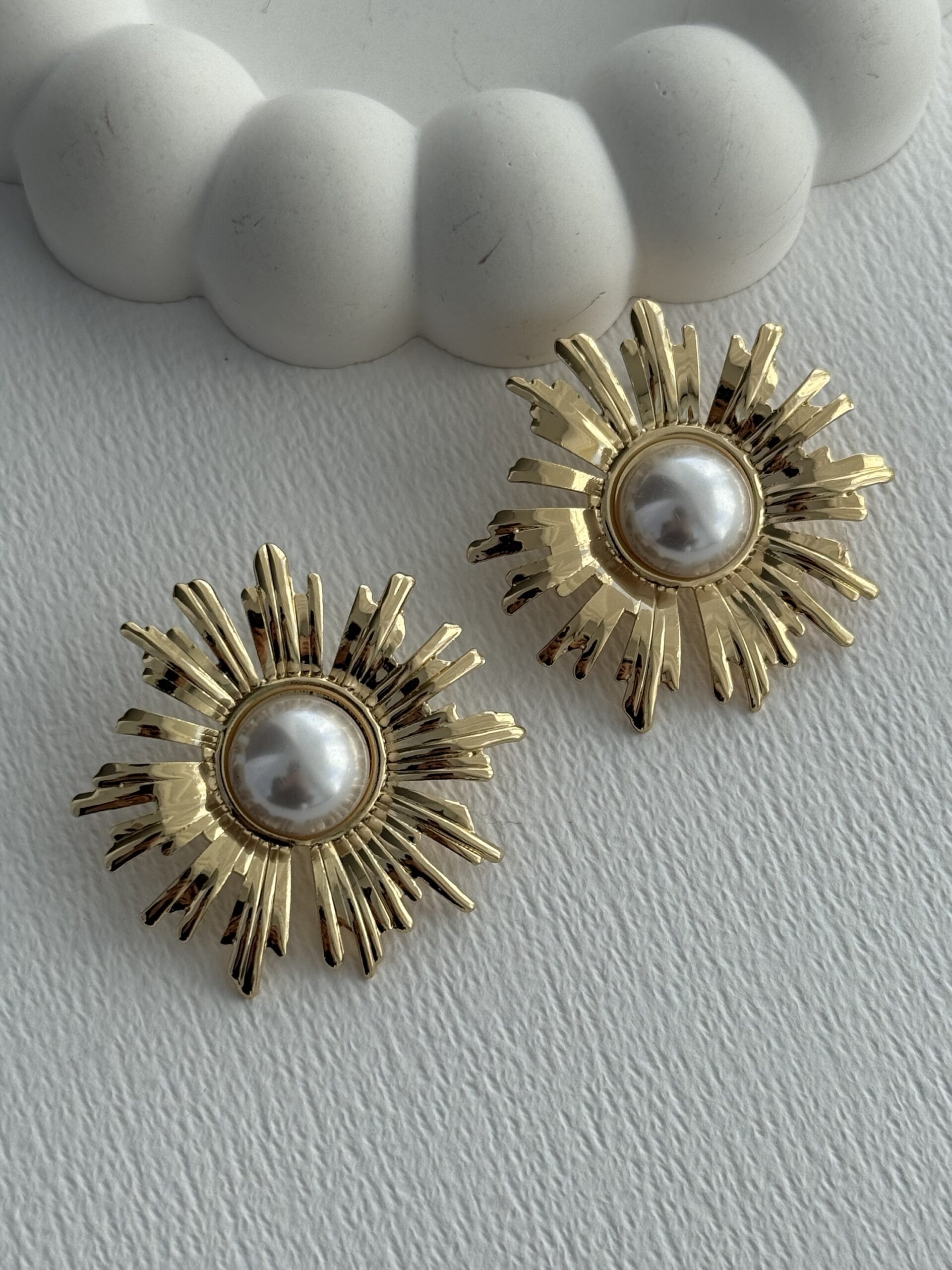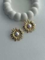Özel Seri İnci Detay Papatya Tasarım Gold Küpe