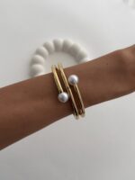 Özel Seri İnci Detay Sarmal Gold Kelepçe Bileklik