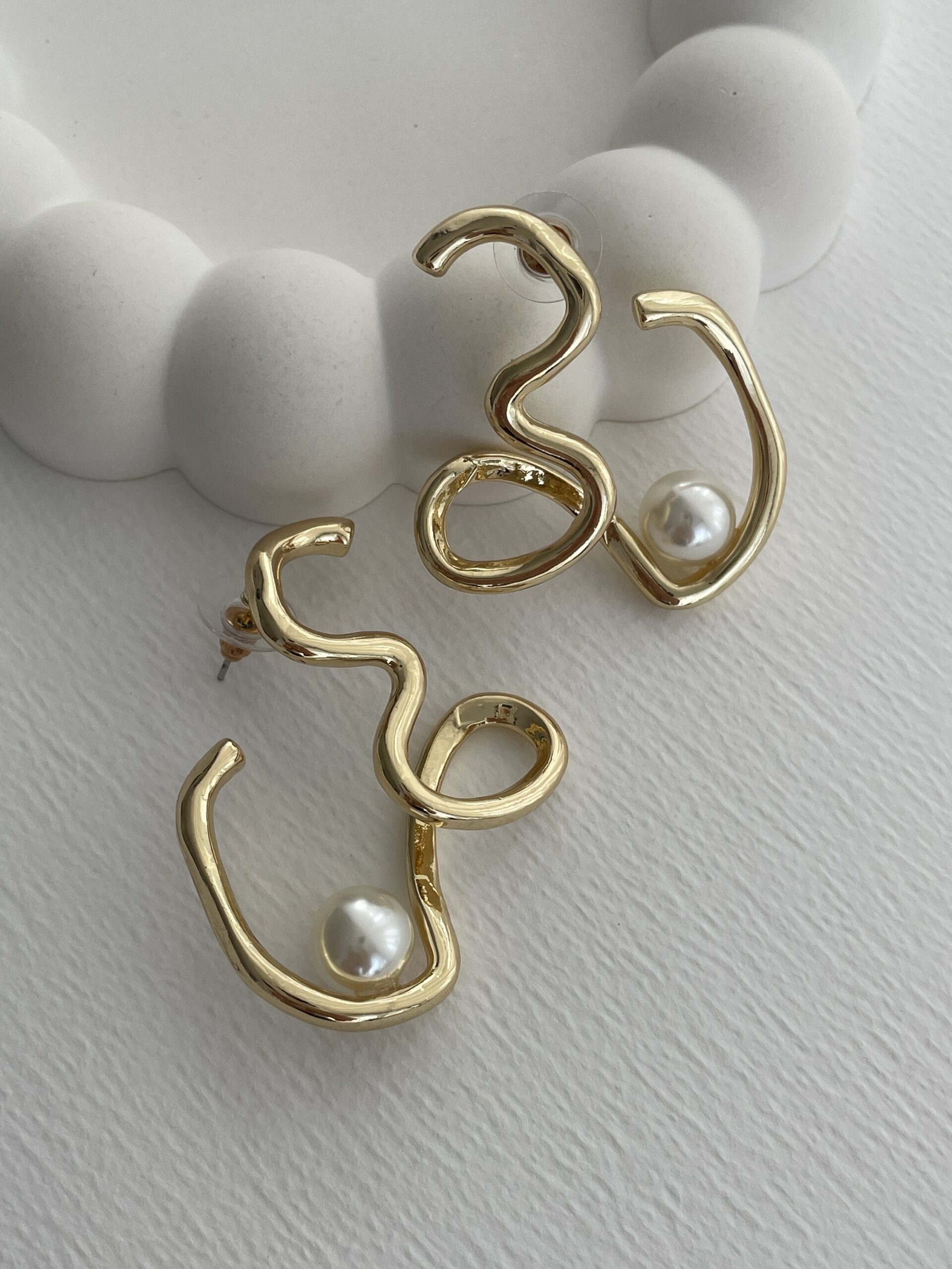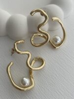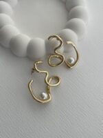 Özel Seri İnci Detay Soyut Tasarım Gold Küpe