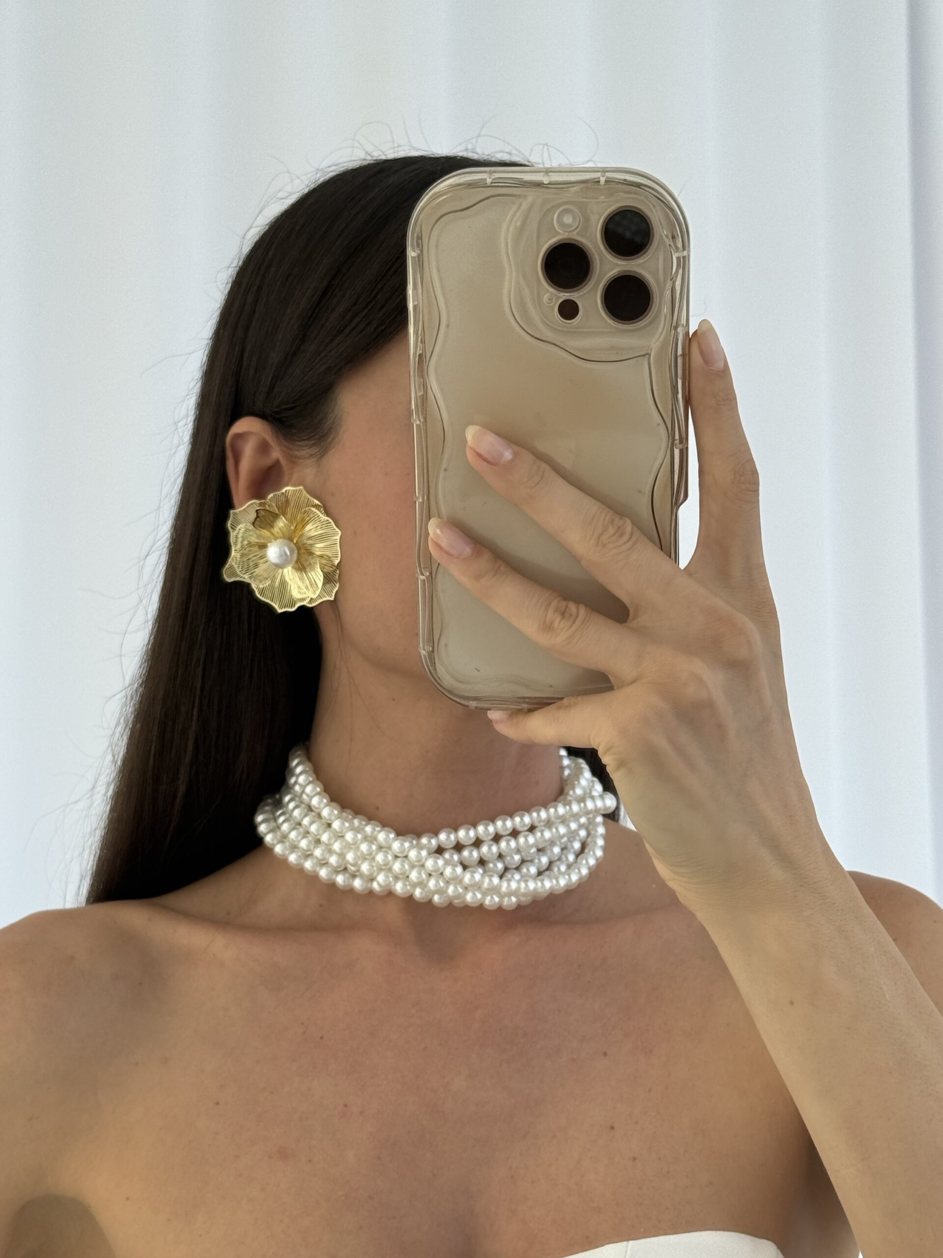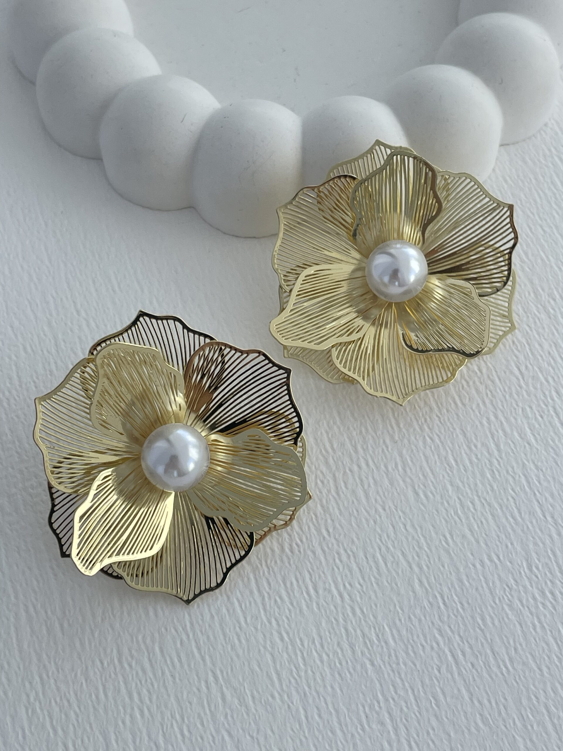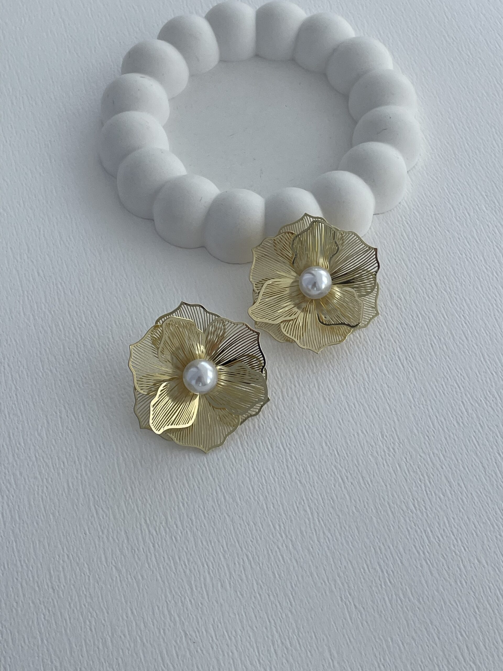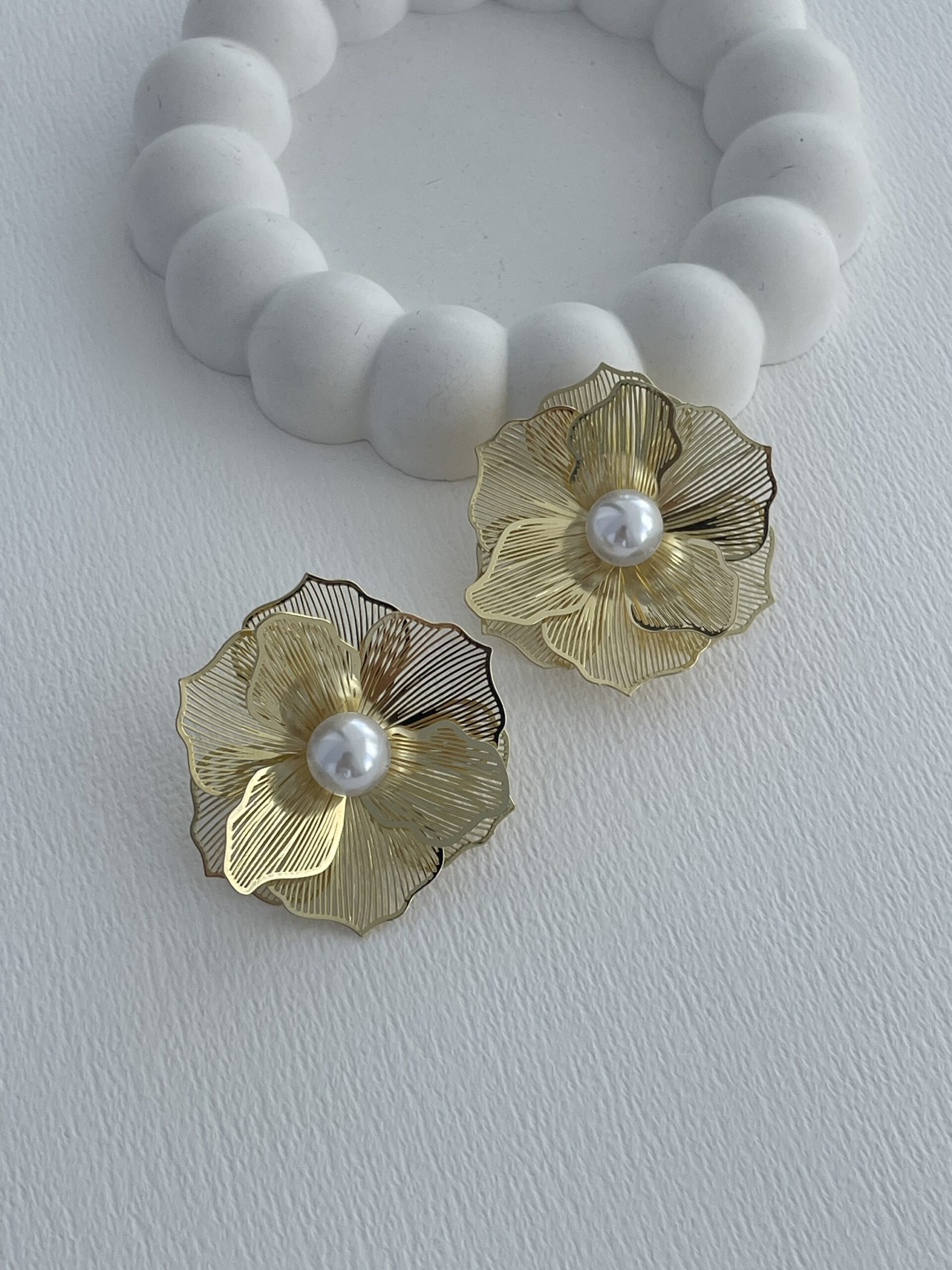Özel Seri İnci Detay Tel Çiçek Tasarım Gold Küpe