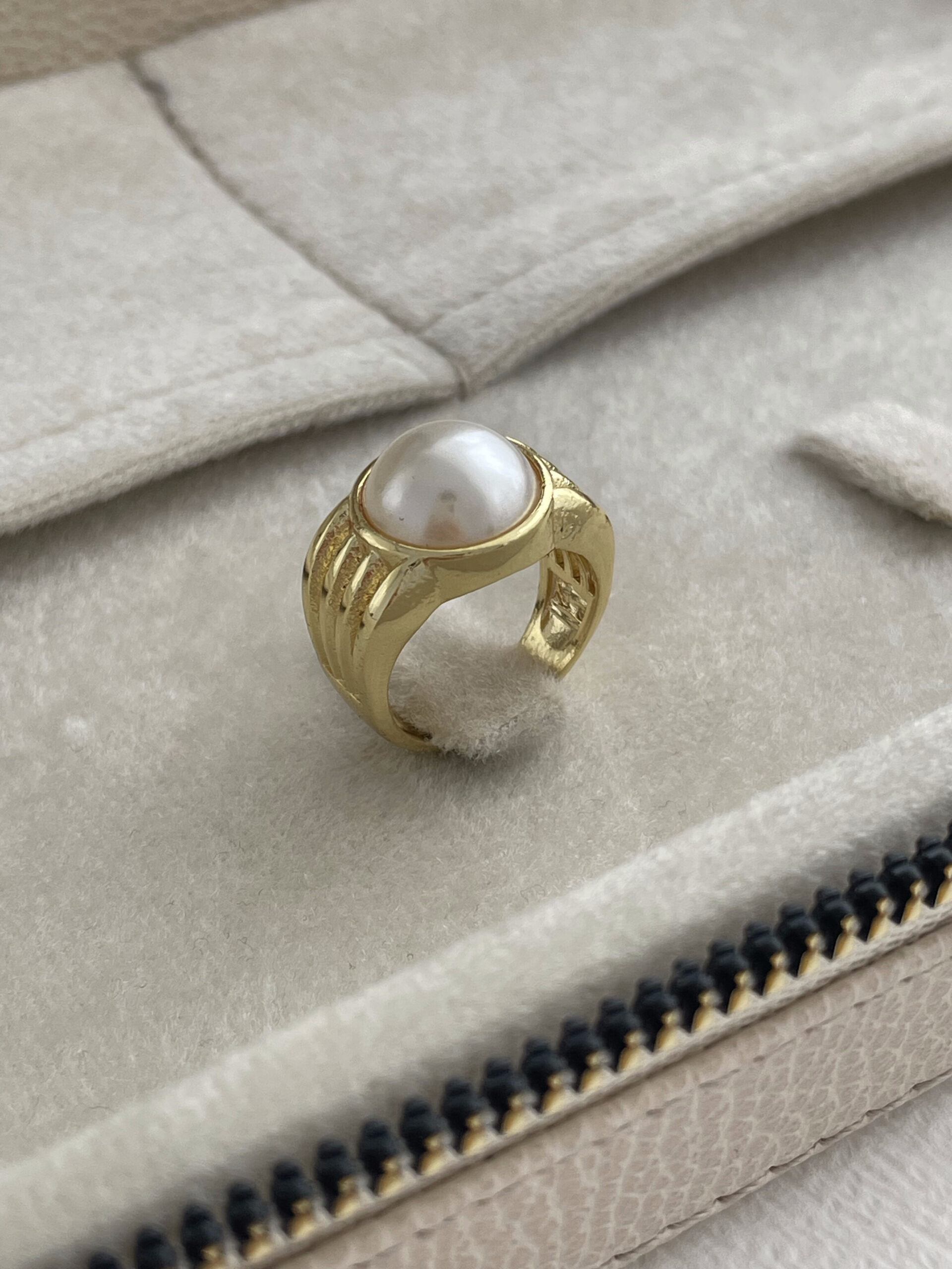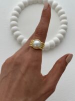 Özel Seri İnci Detay Tırtık Tasarım Ayarlanabilir Gold Yüzük
