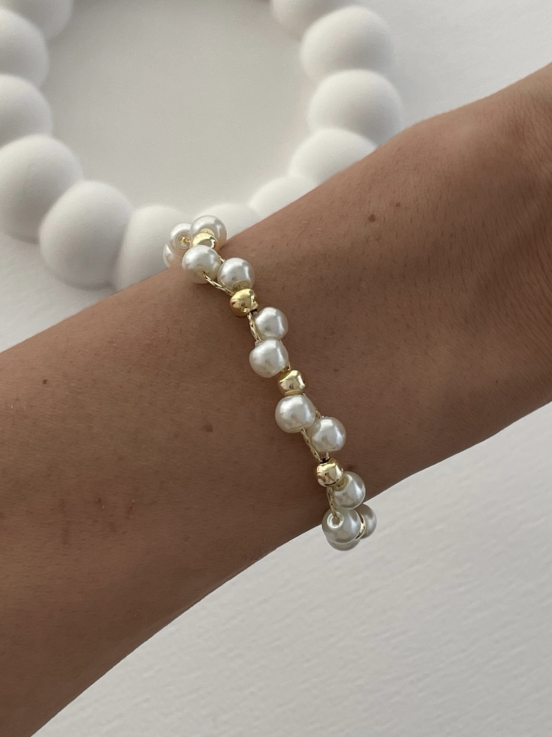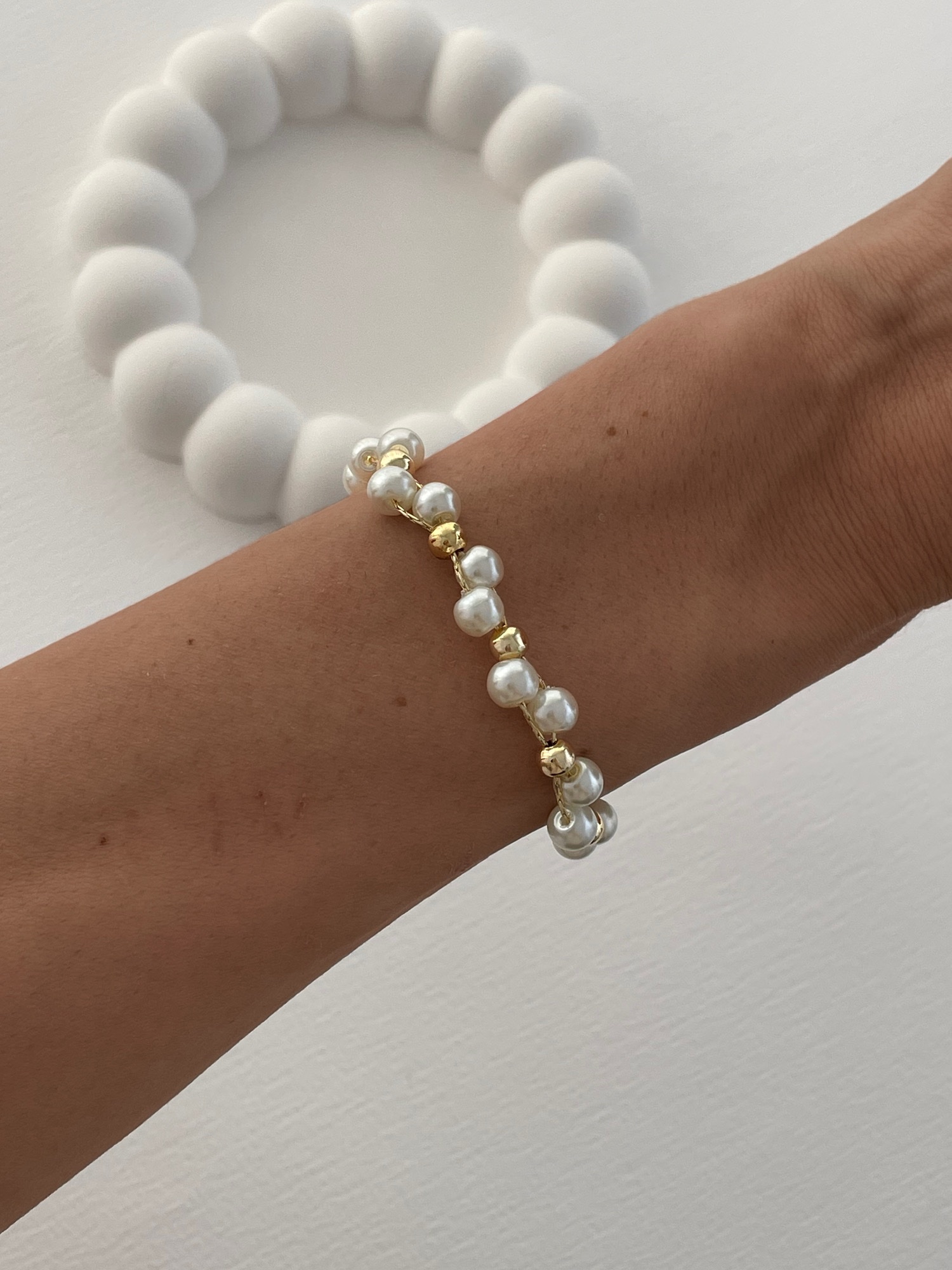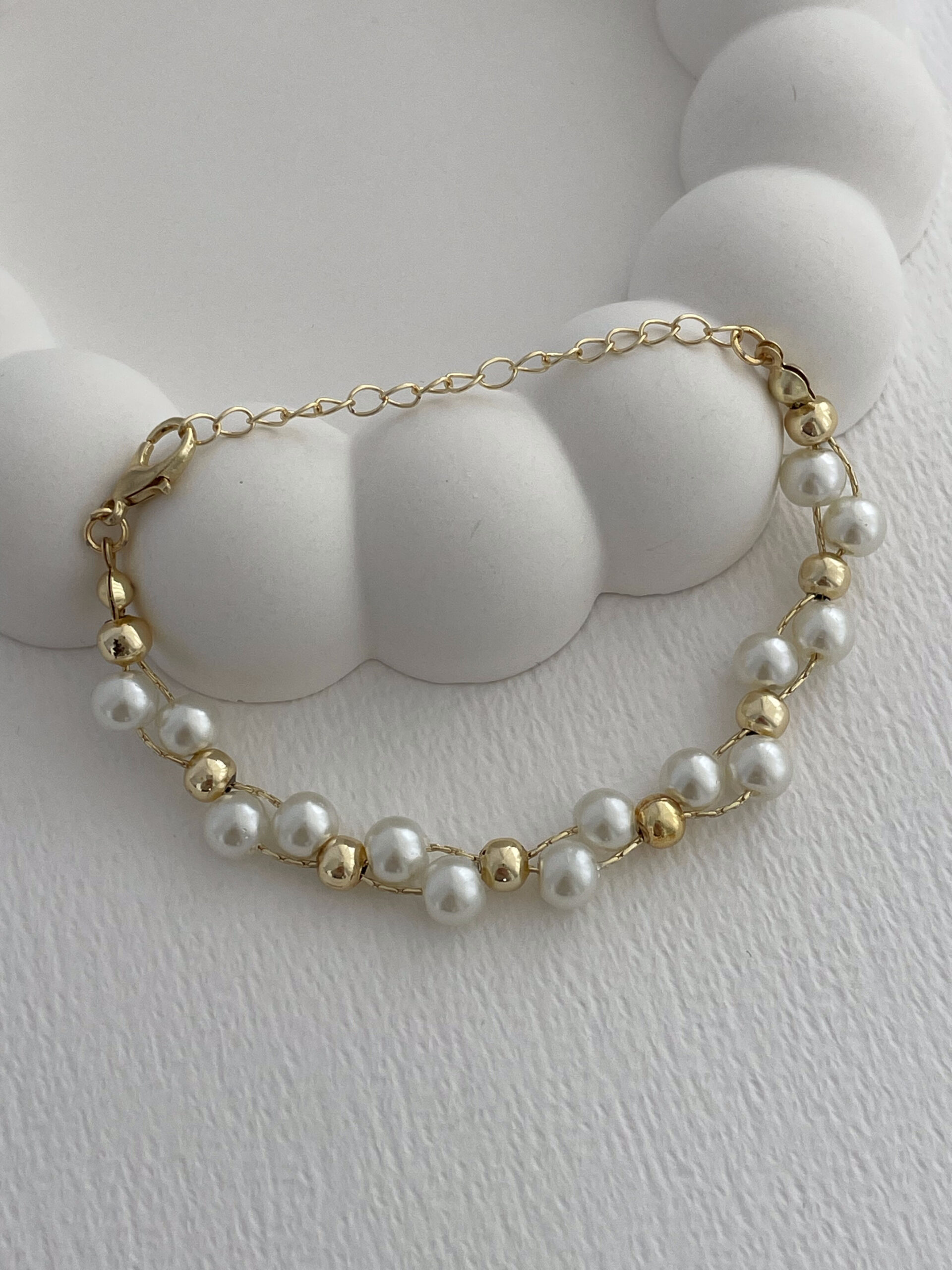 Özel Seri İnci Detay Top Tasarım Gold Bileklik