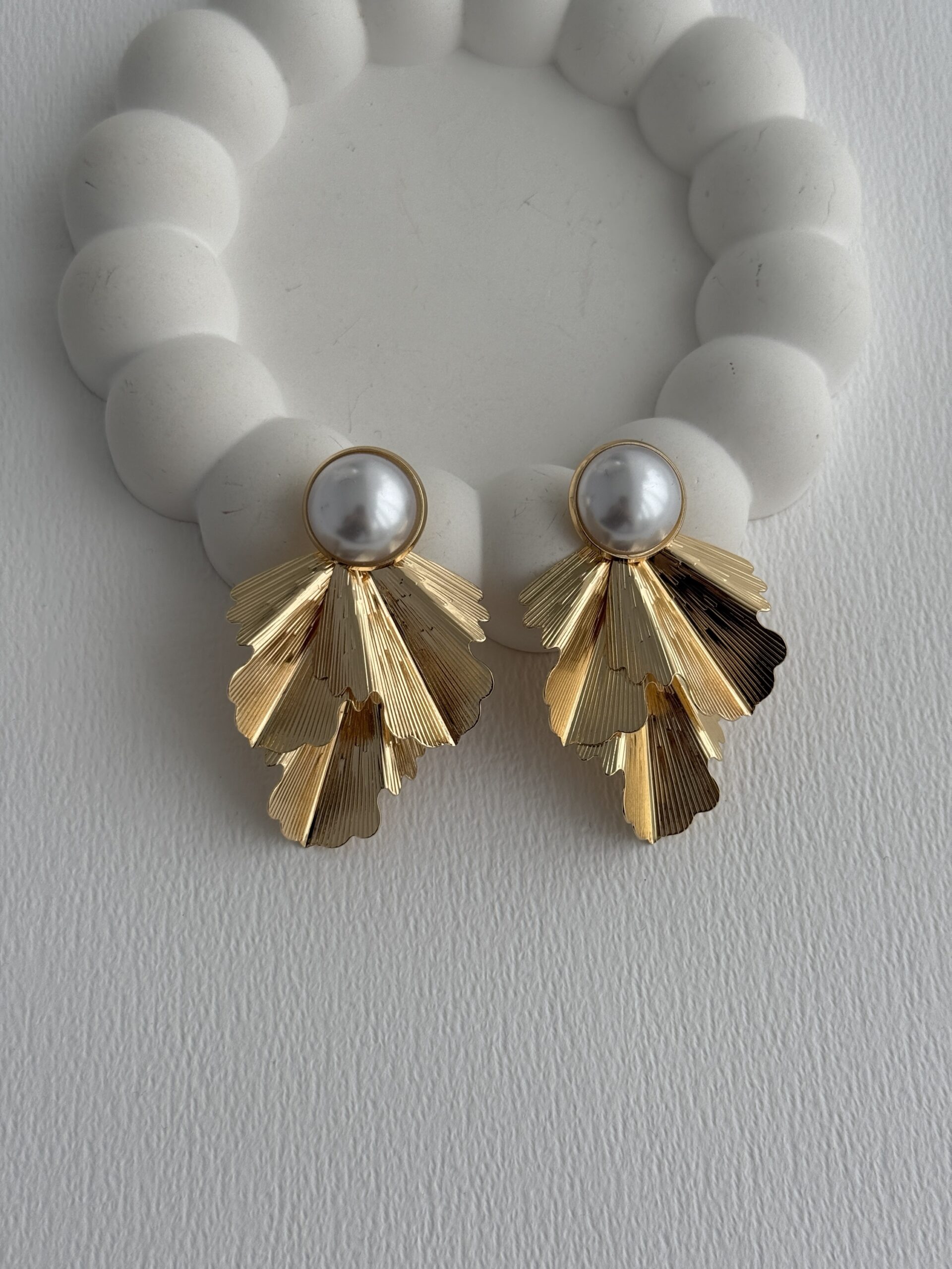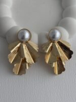 Özel Seri İnci Detay Üçlü Yaprak Tasarım Gold Küpe