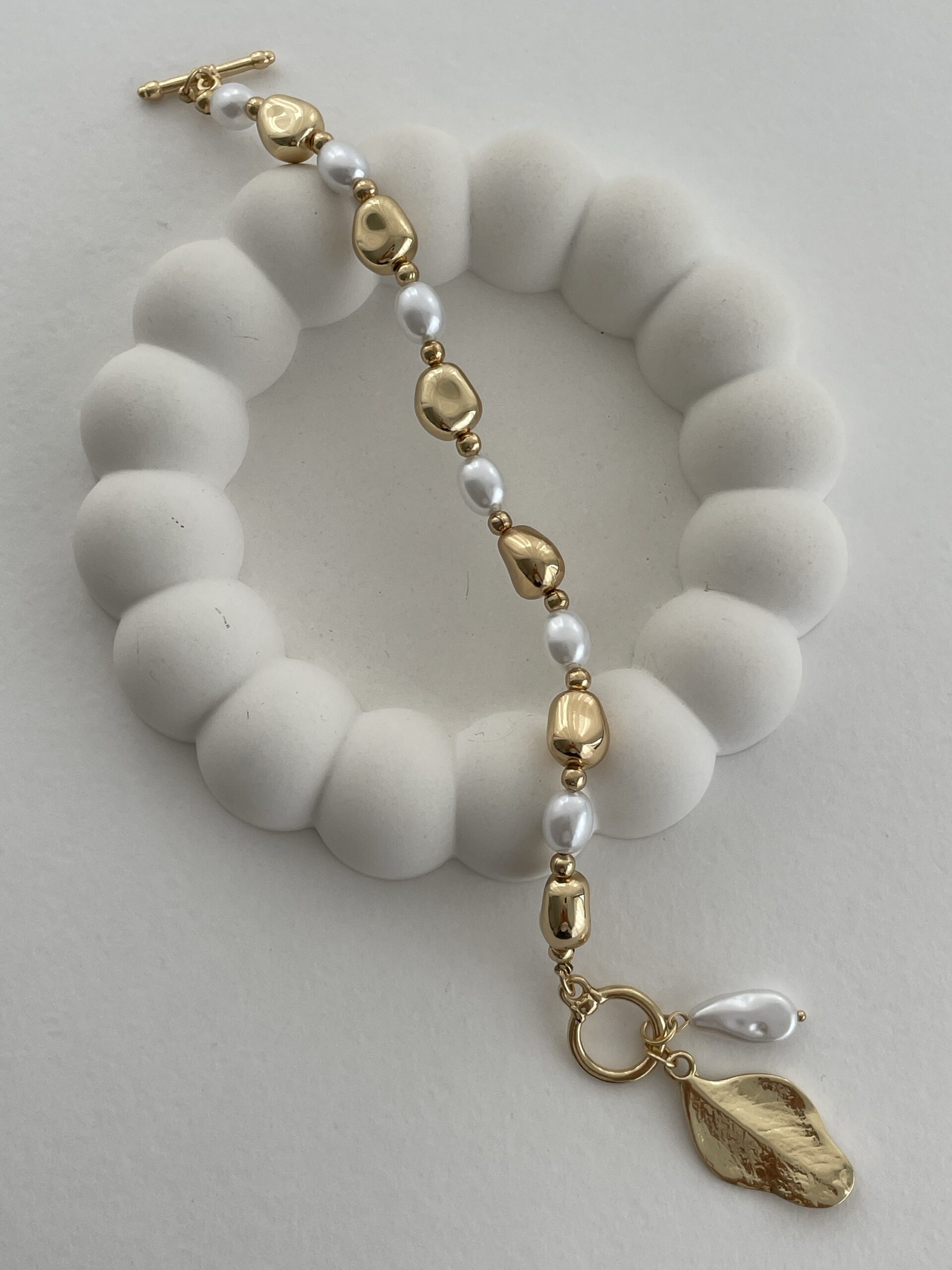 Özel Seri İnci Detay Yaprak Tasarım Bileklik