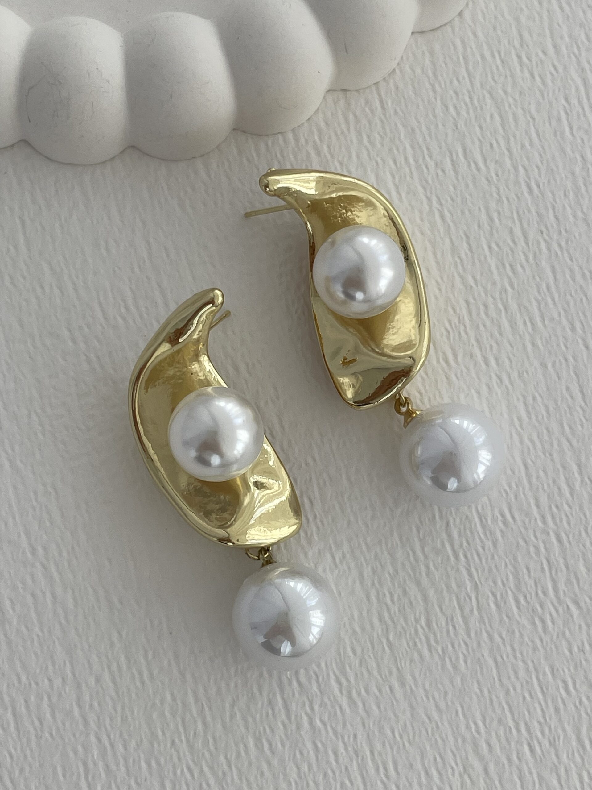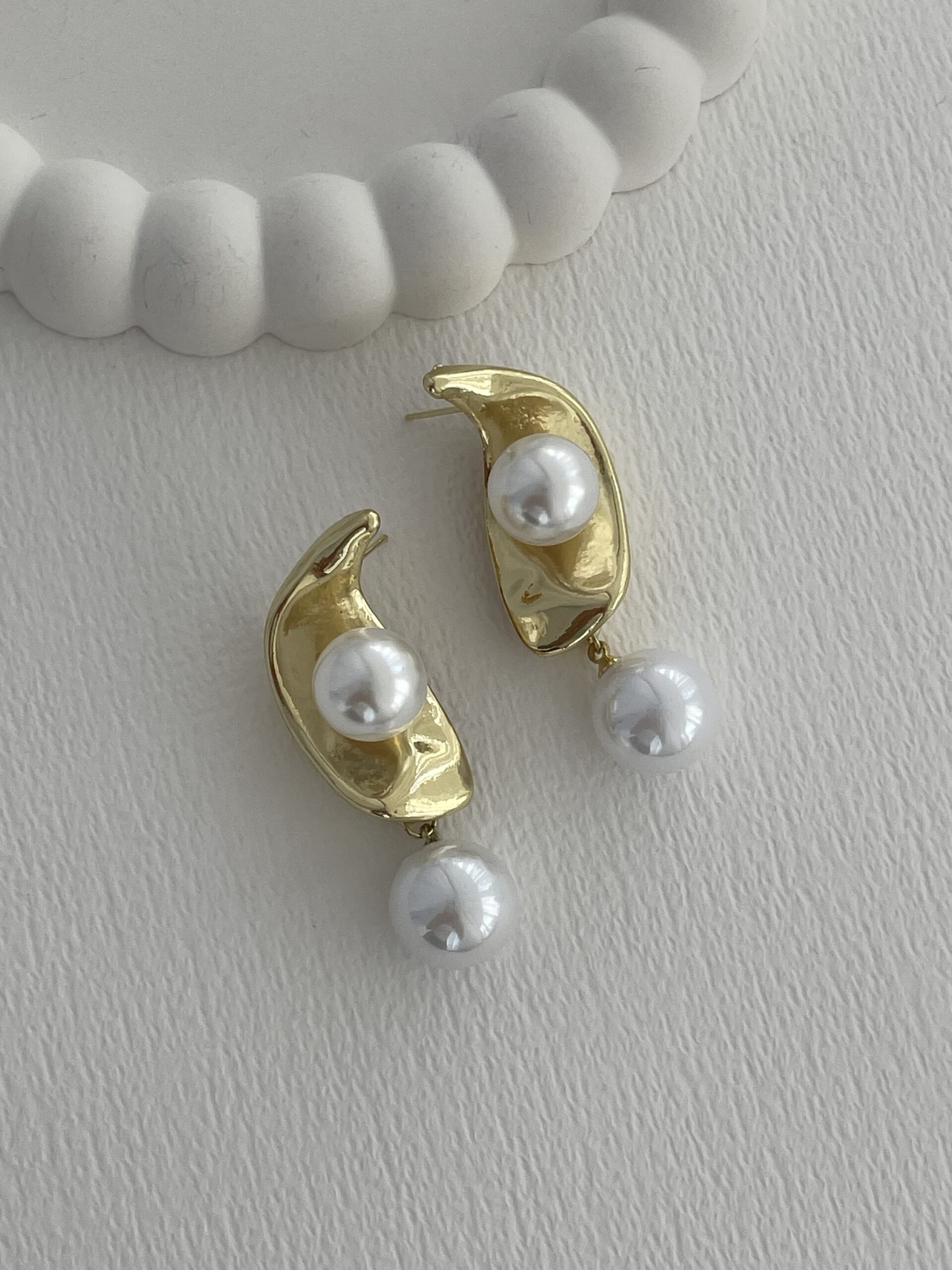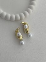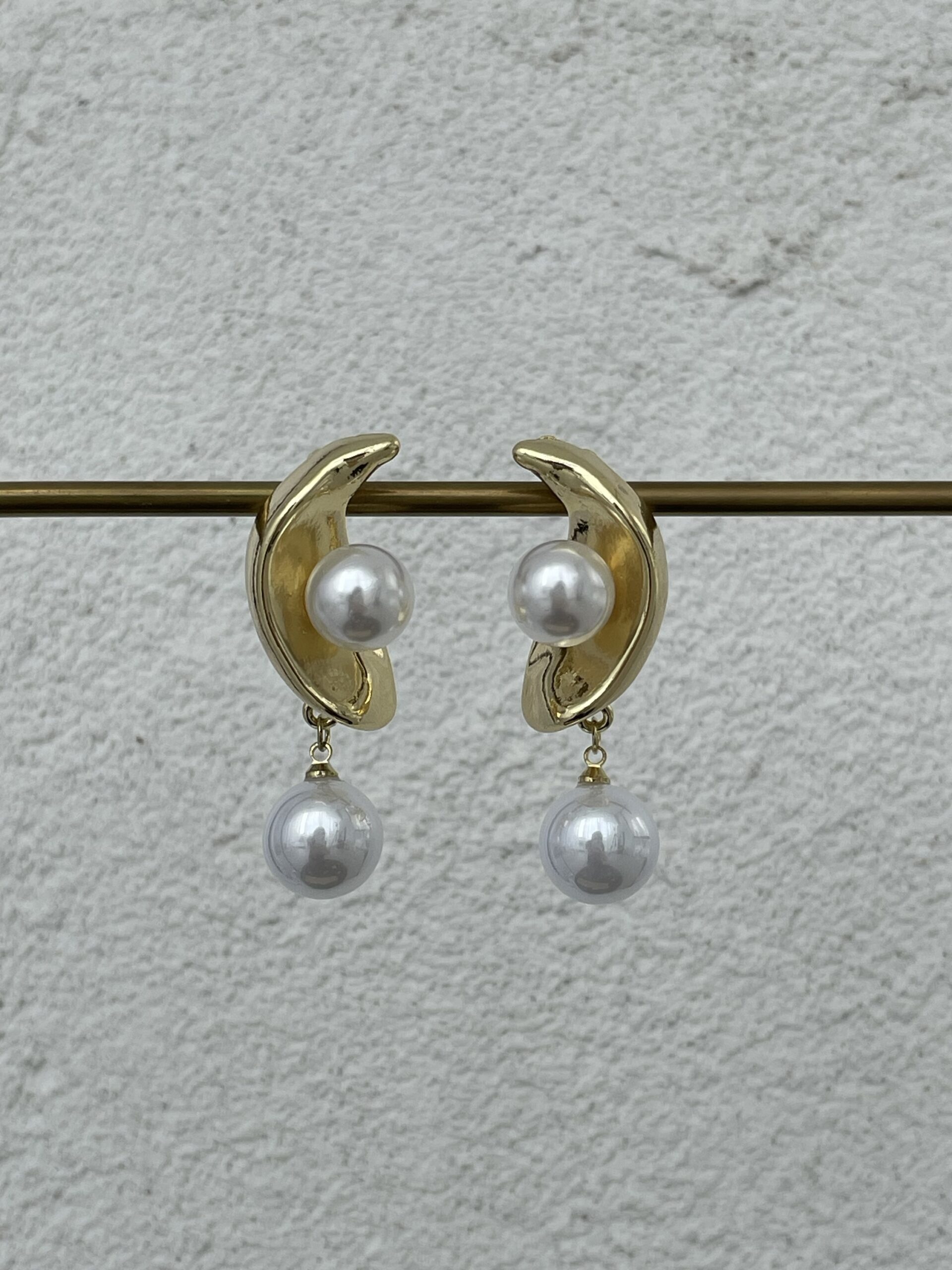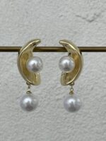 Özel Seri İnci Detay Yarım Ay Tasarım Gold Küpe