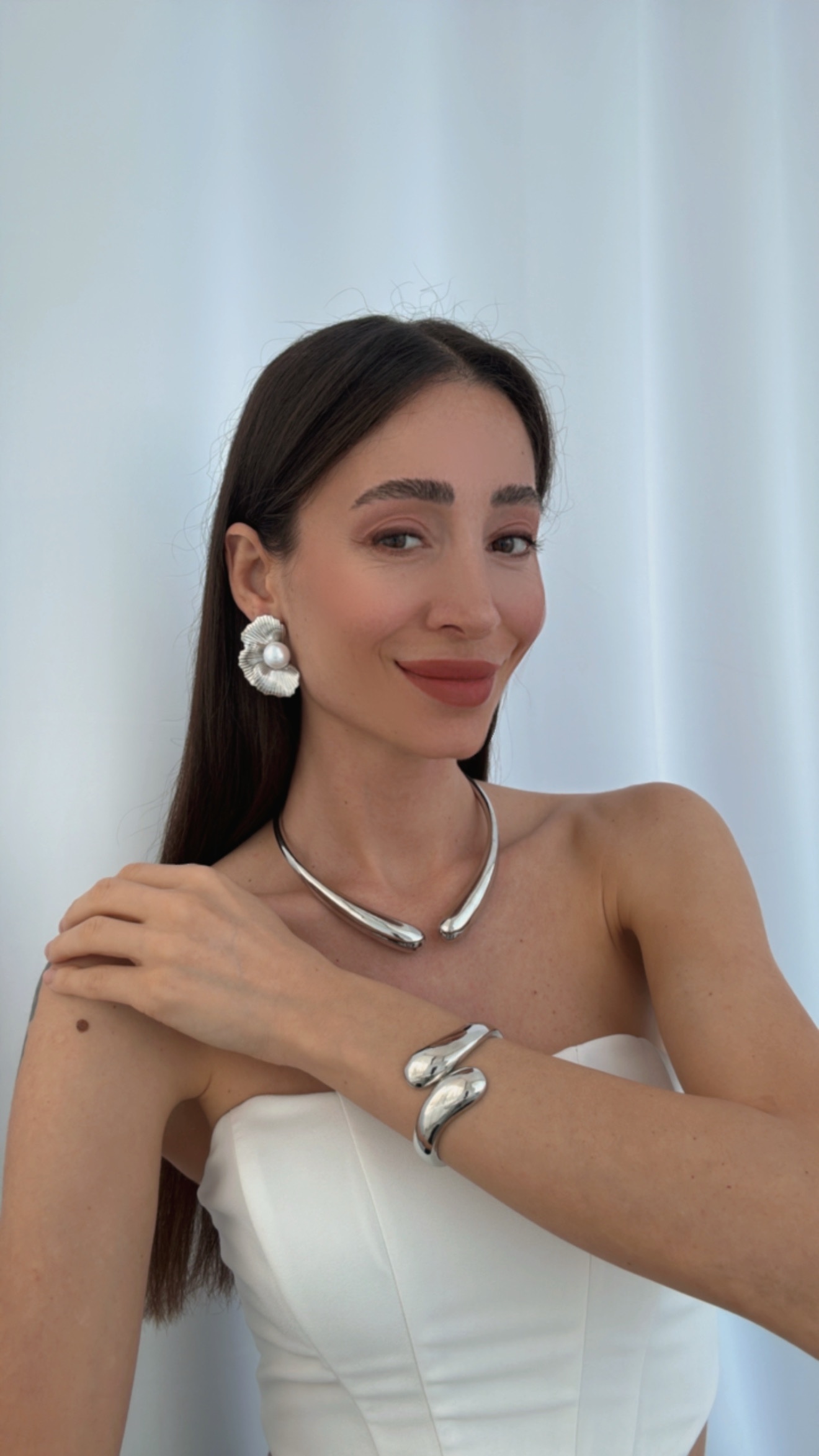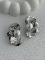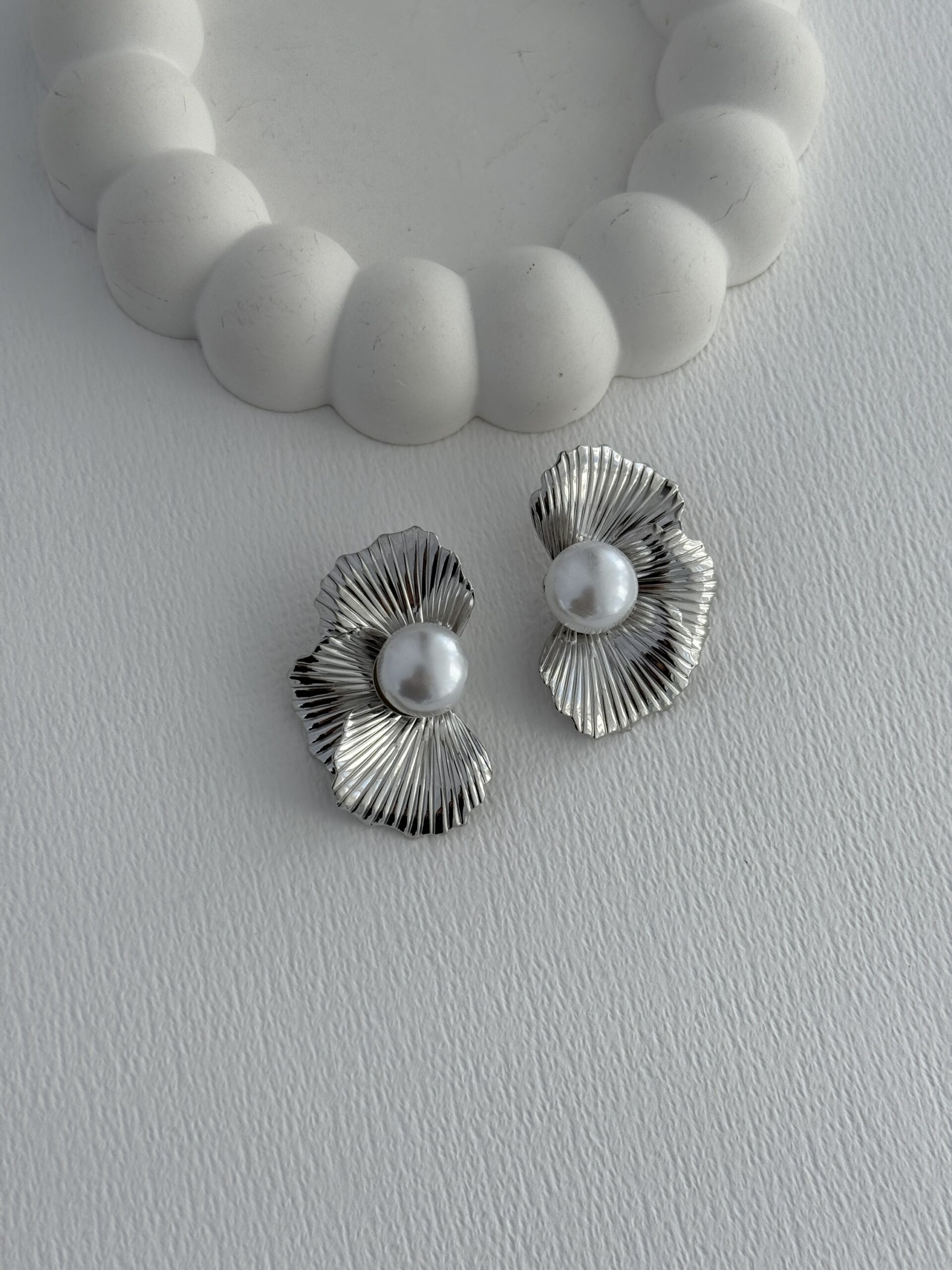 Özel Seri İnci Detay Yarım Çiçek Tasarım Gümüş Küpe