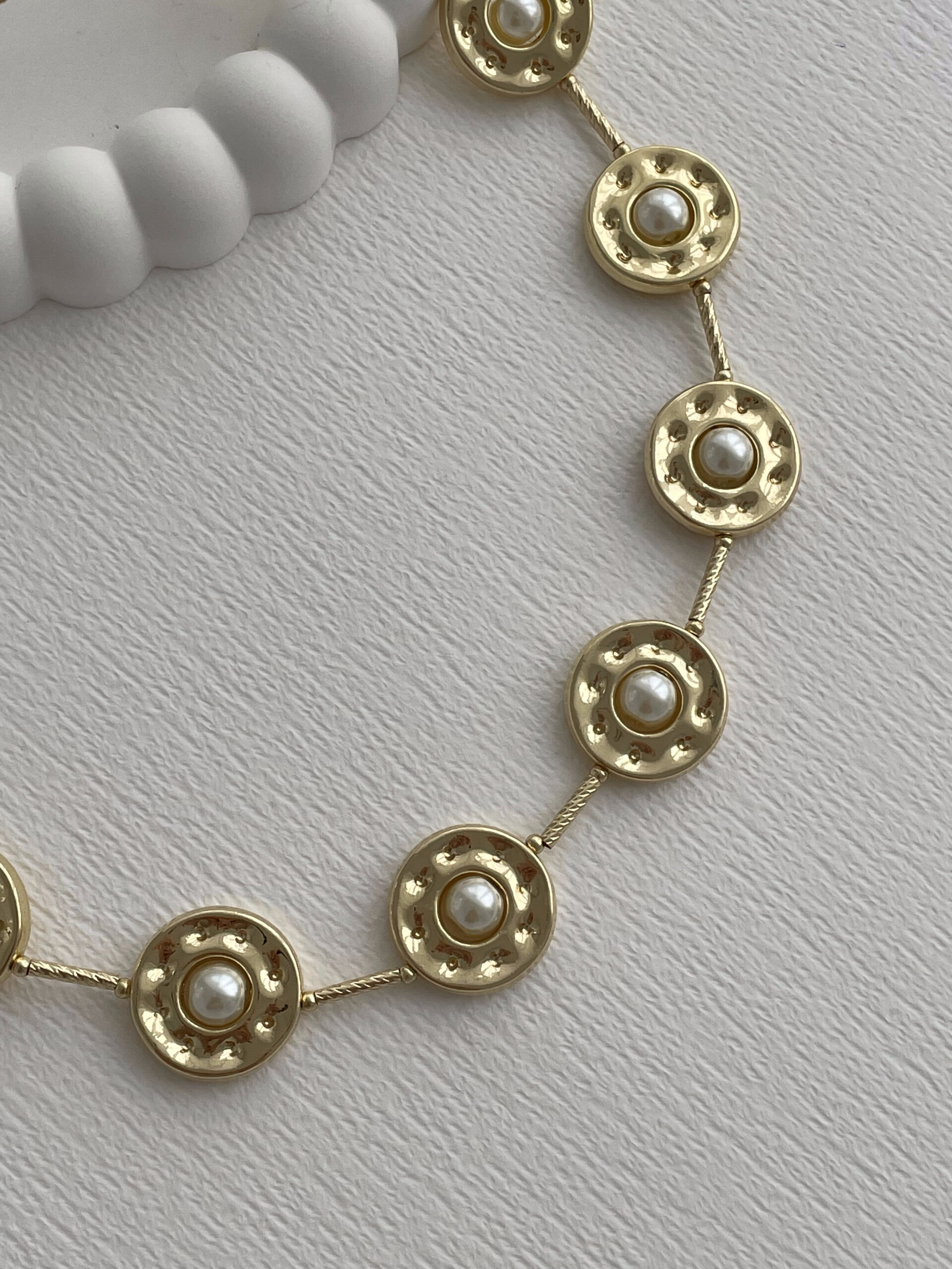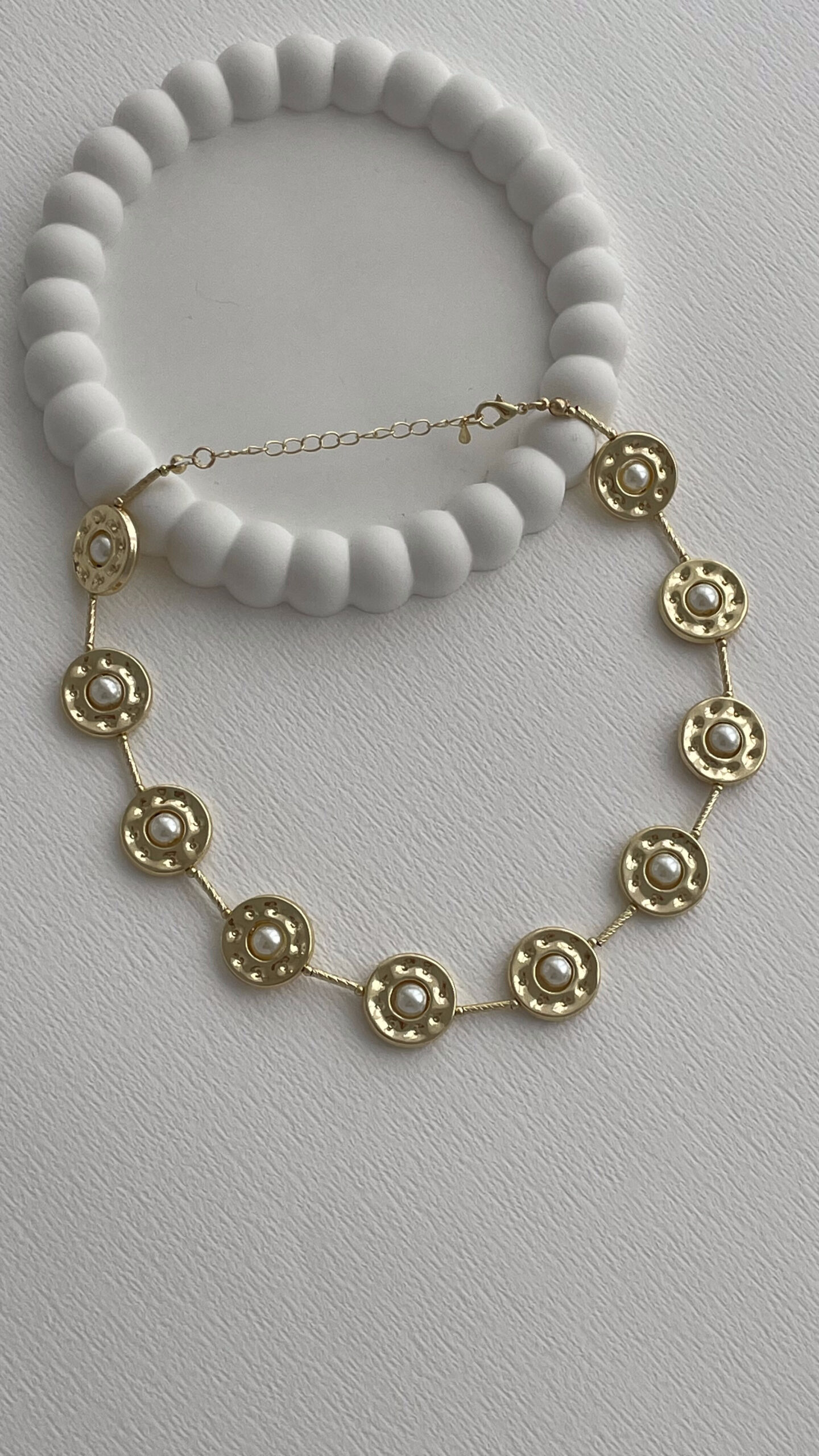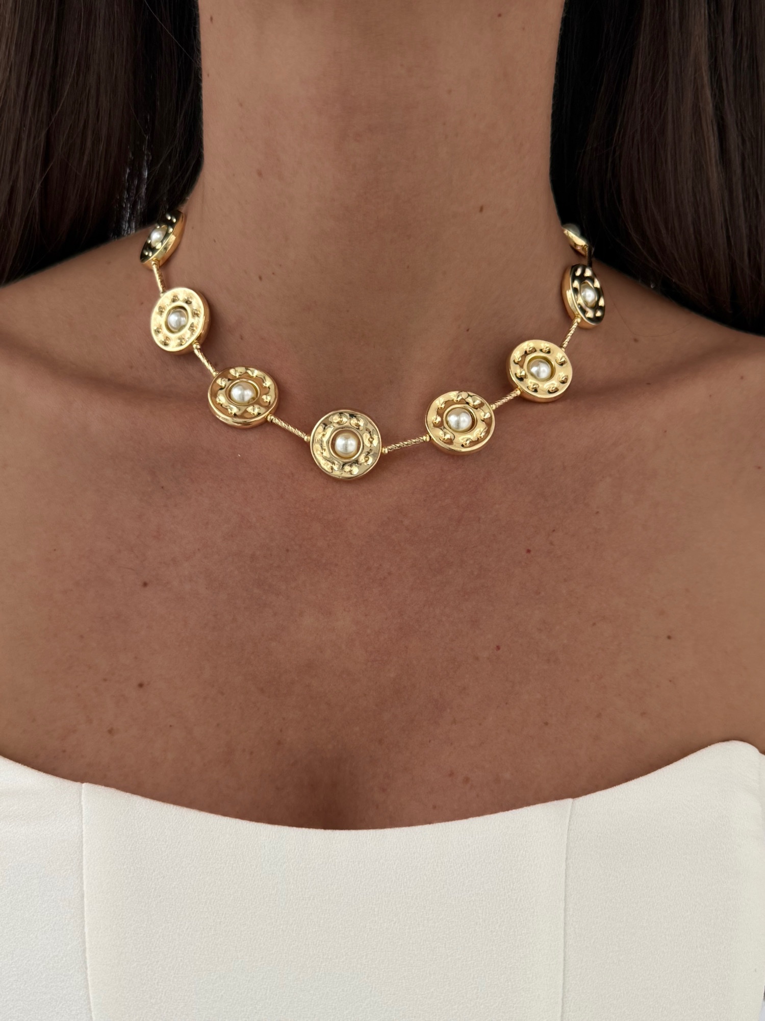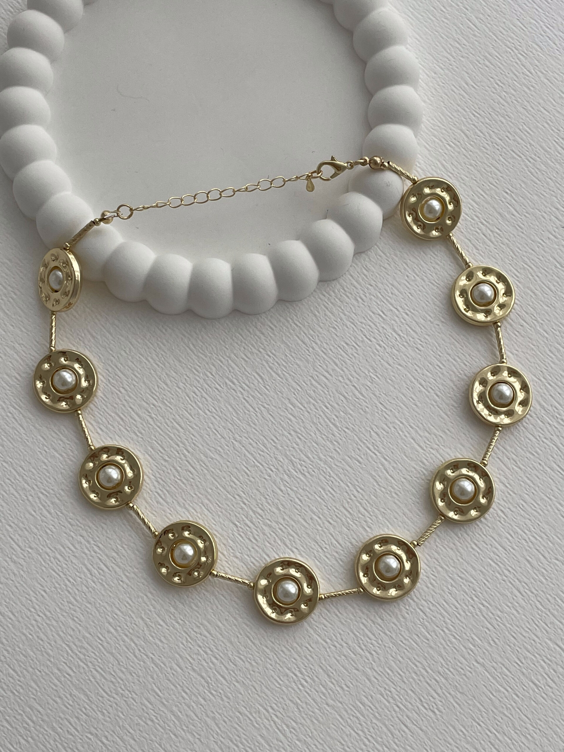 Özel Seri İnci Detay Yuvarlak Gold Kolye